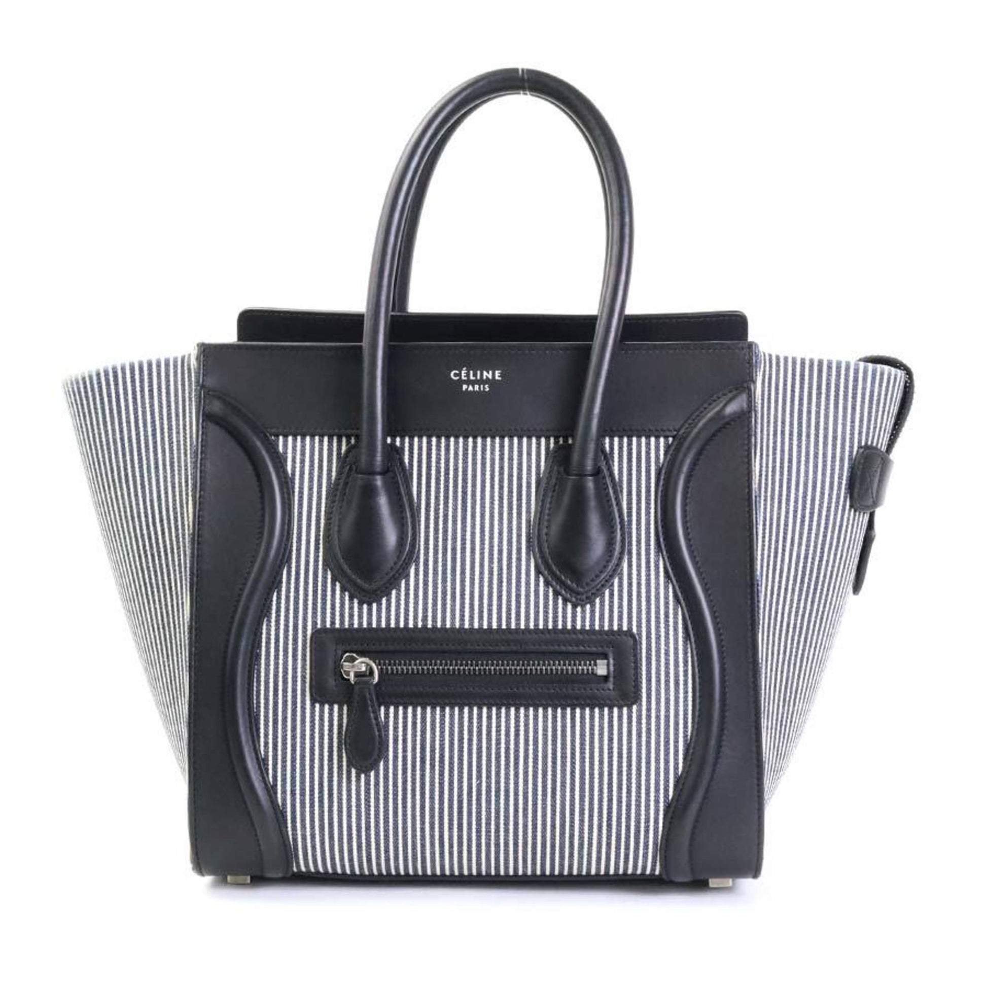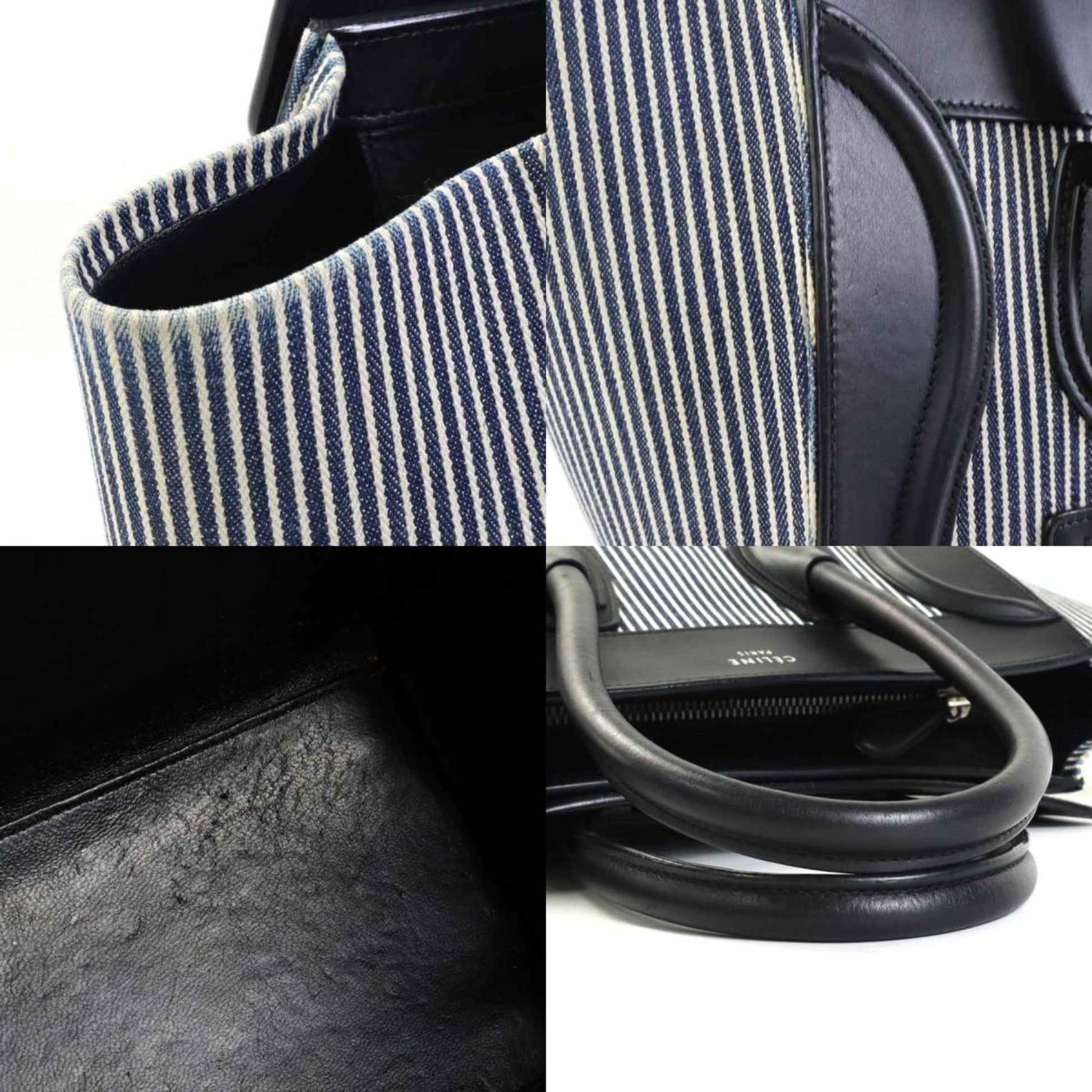 Celine Handbag Luggage Micro Shopper Canvas/Leather Black x Navy White Ladies