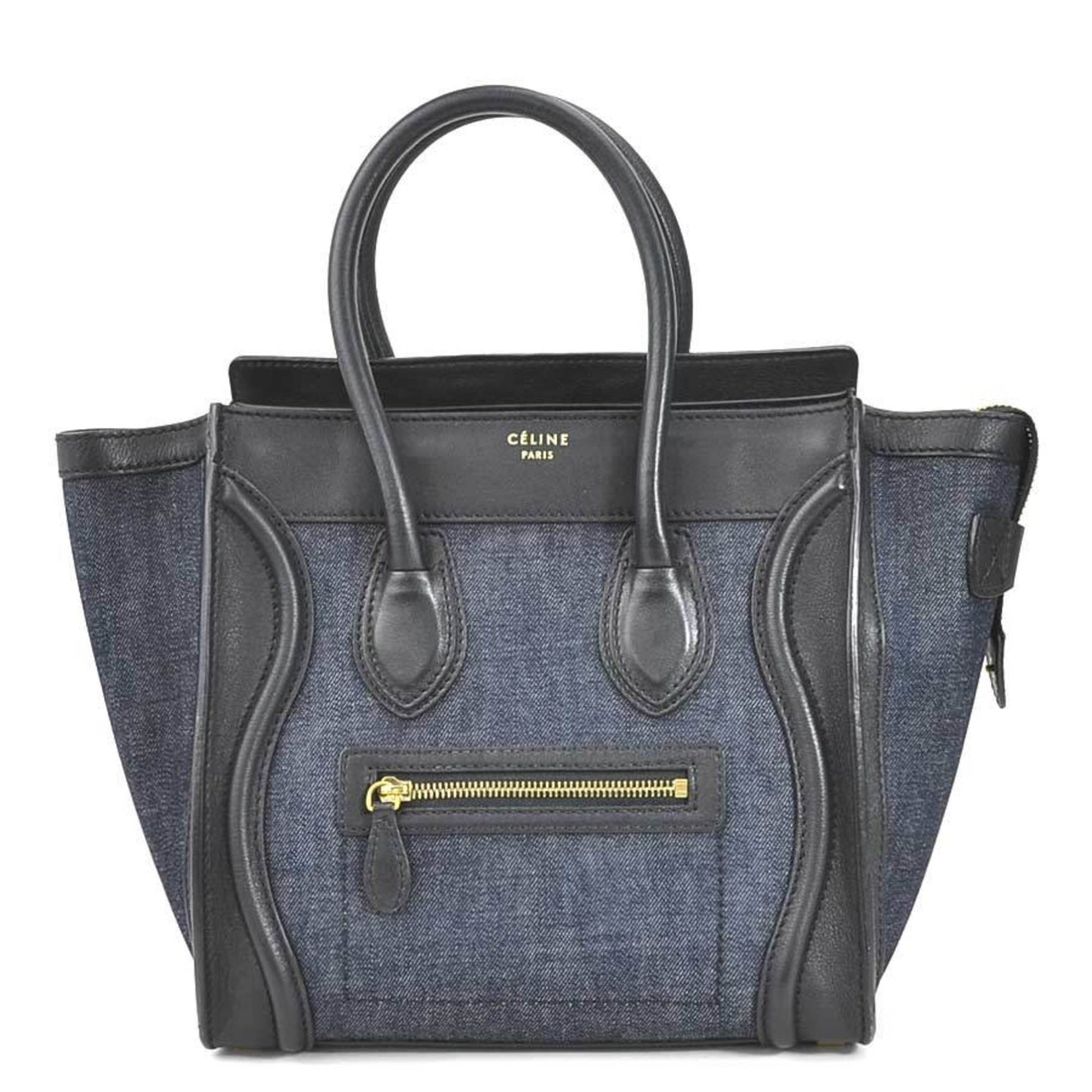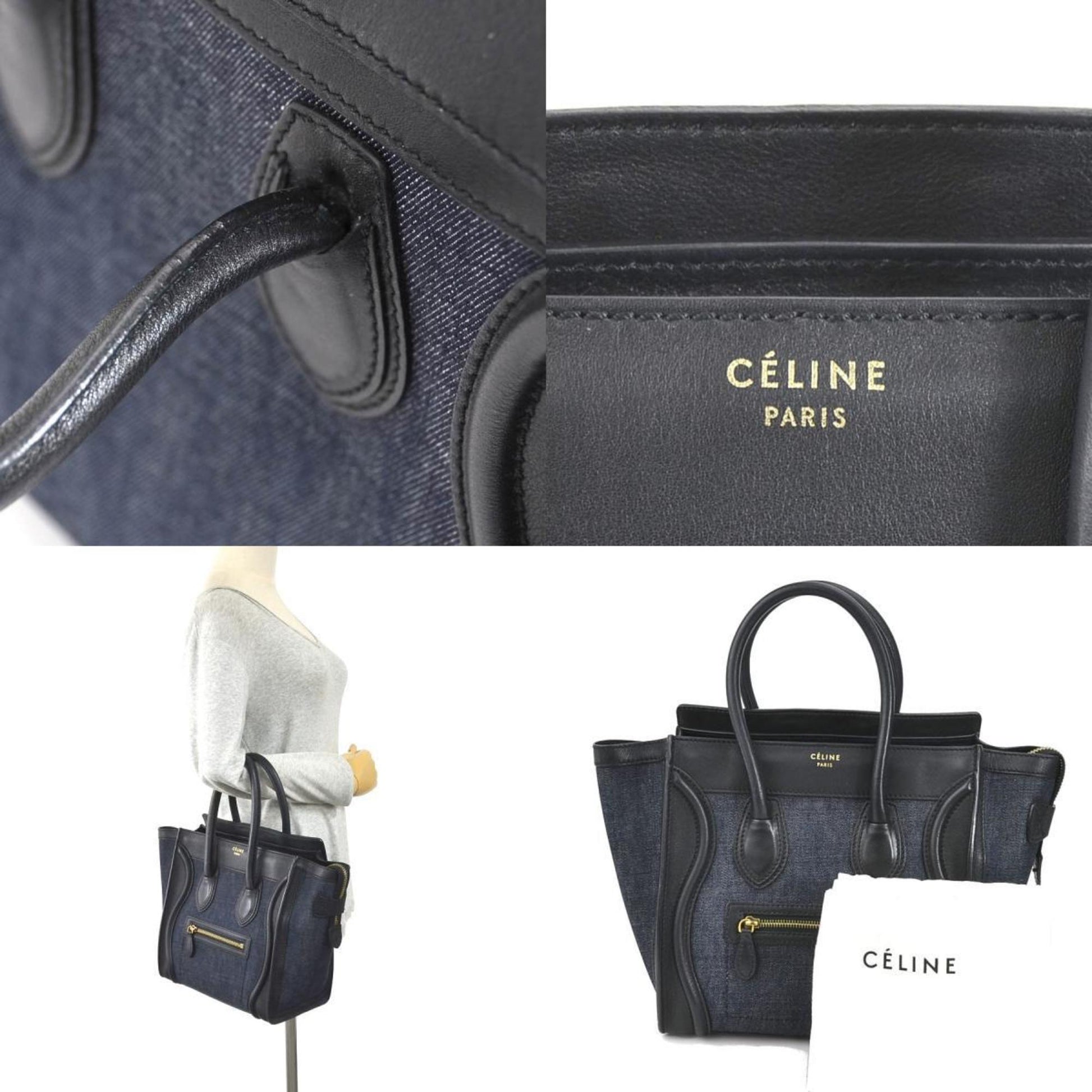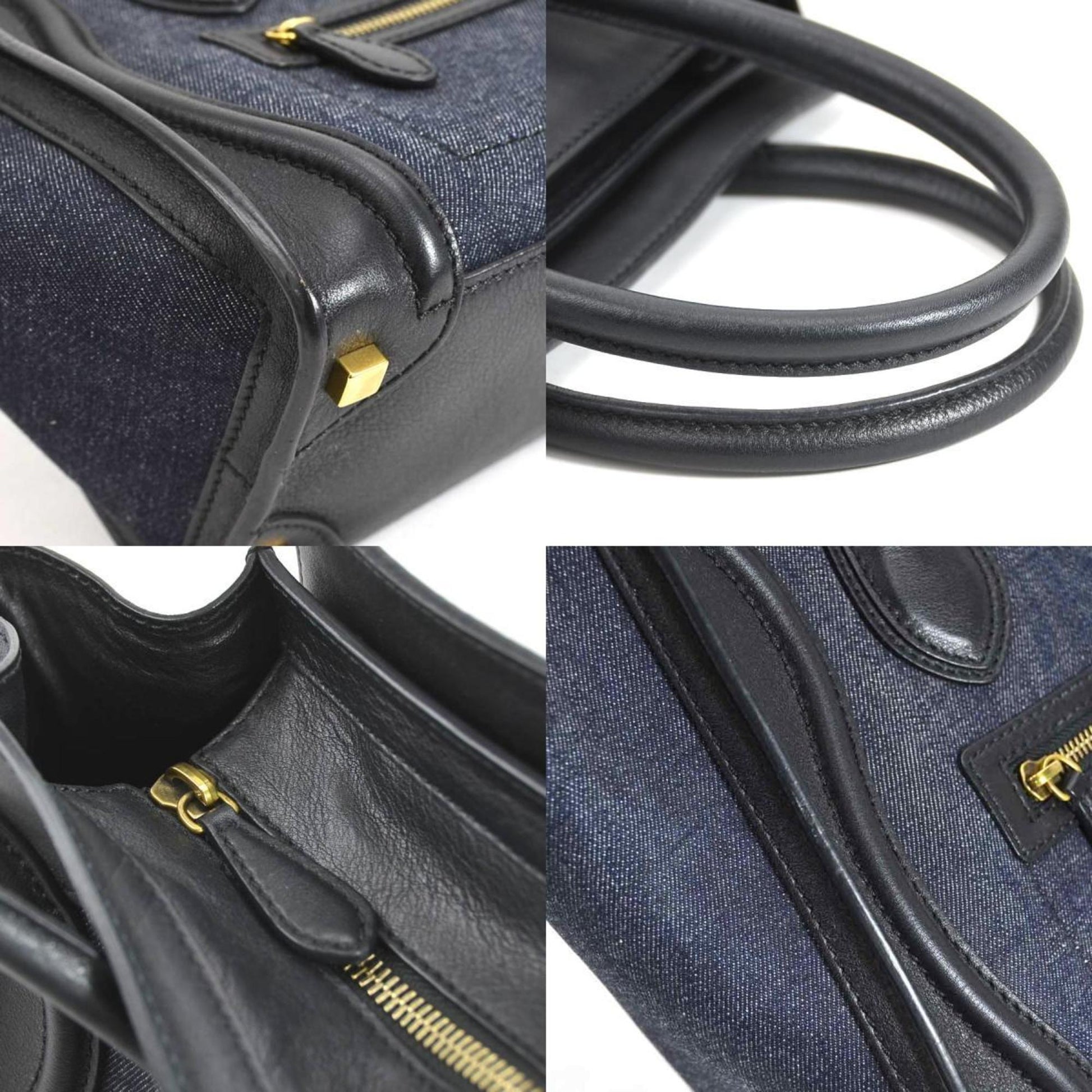 Celine Handbag Luggage Micro Shopper Leather/Denim Black x Indigo Ladies
