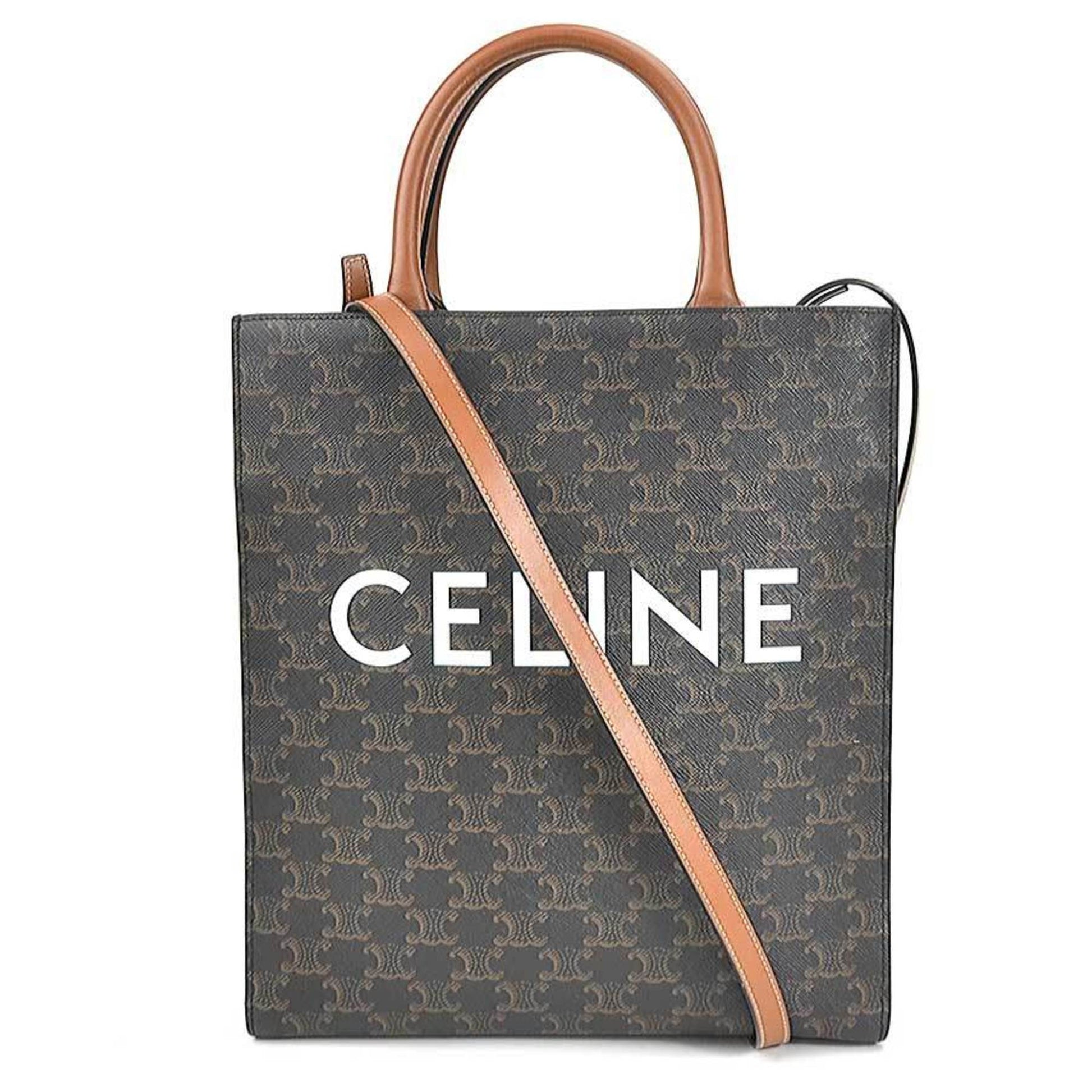 Celine Handbag Shoulder Bag Triomphe Small Vertical Hippo PVC Coated Canvas Brown Unisex 191542