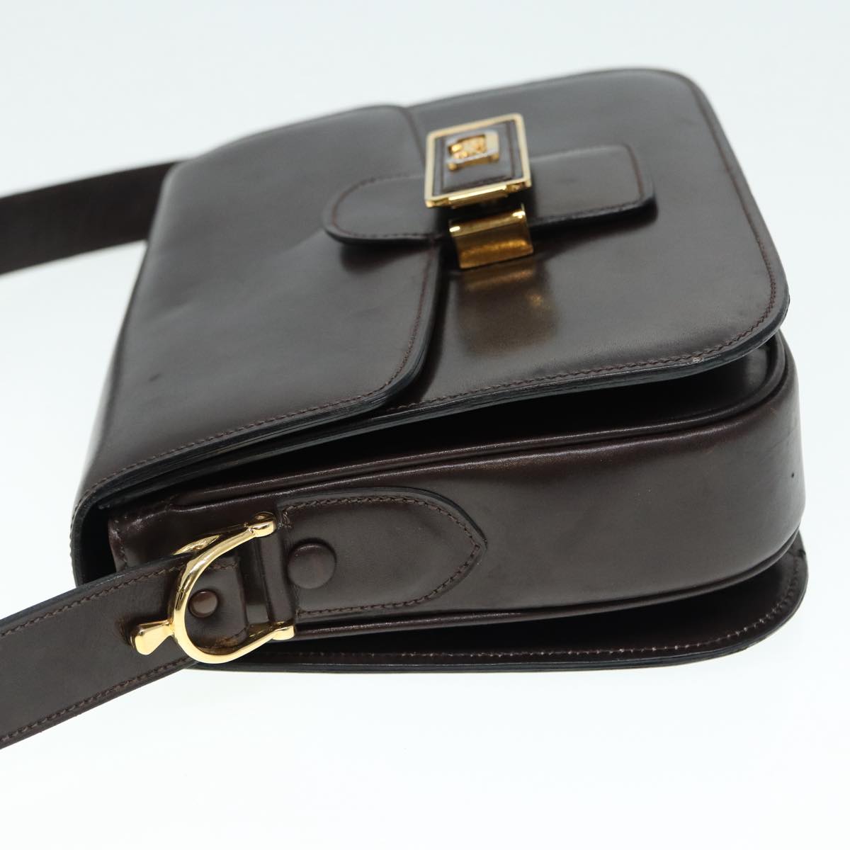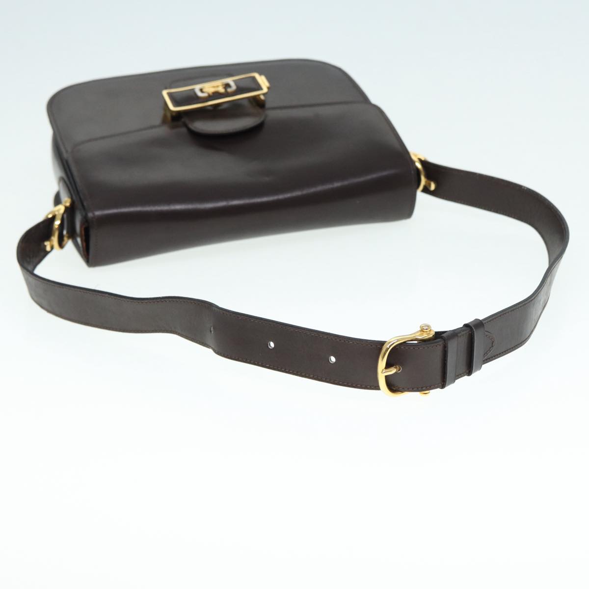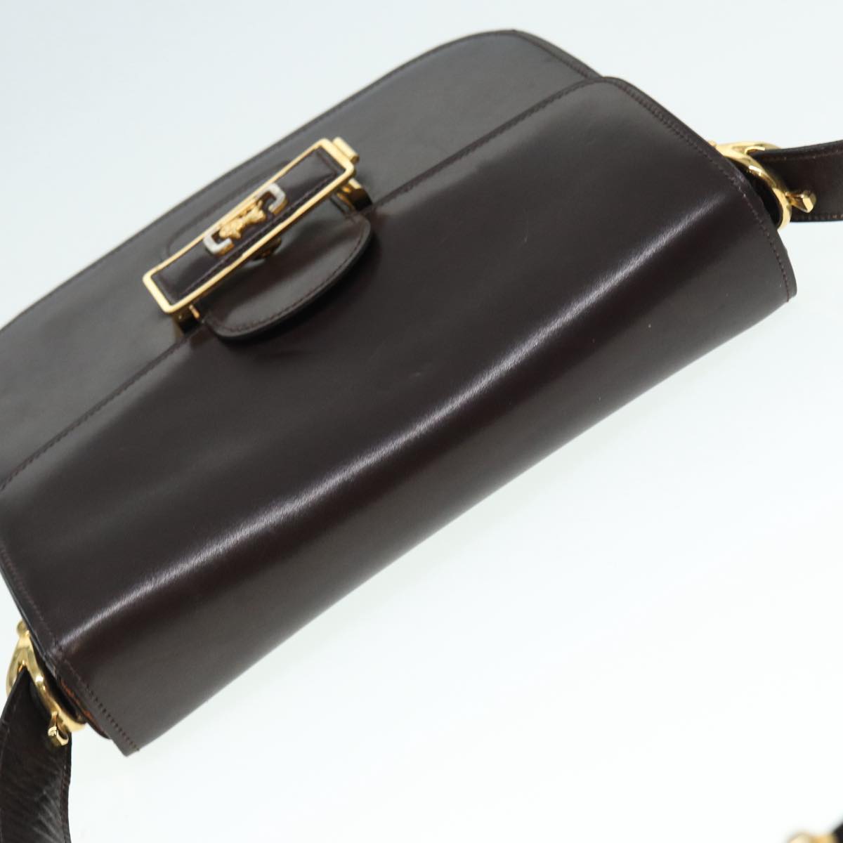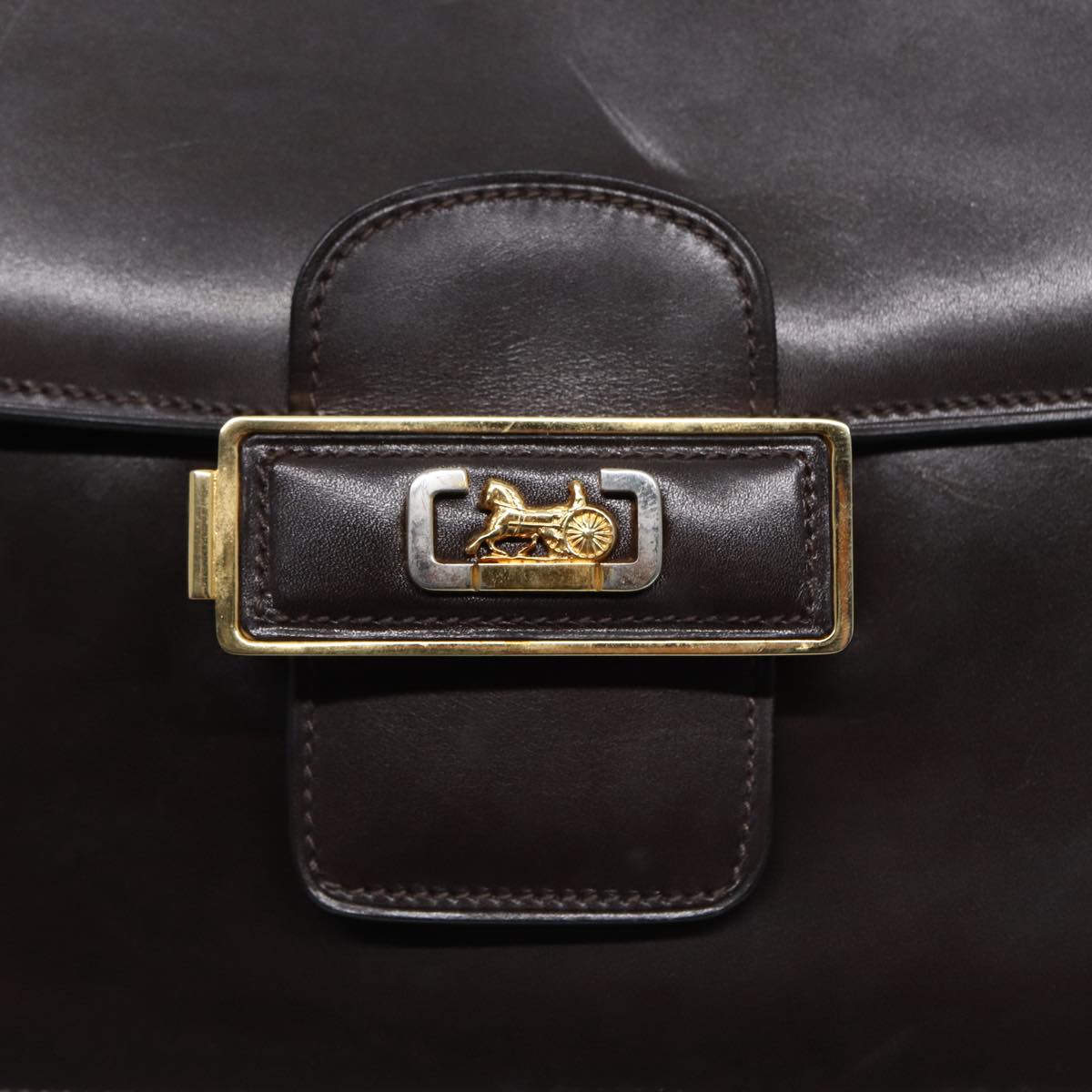CELINE Horse Carriage Shoulder Bag Leather Black Gold Auth ki4823