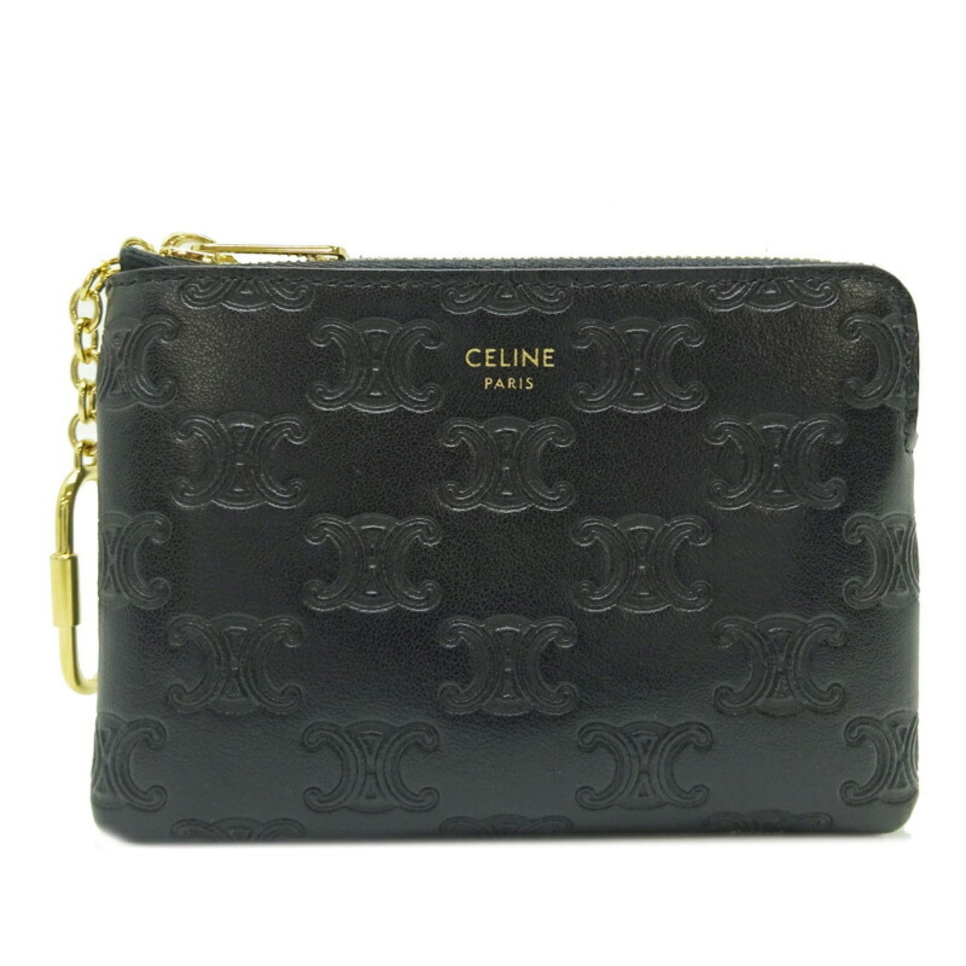 Celine Key & Card Coin Purse Women's Men's Case 10C663 Leather Black