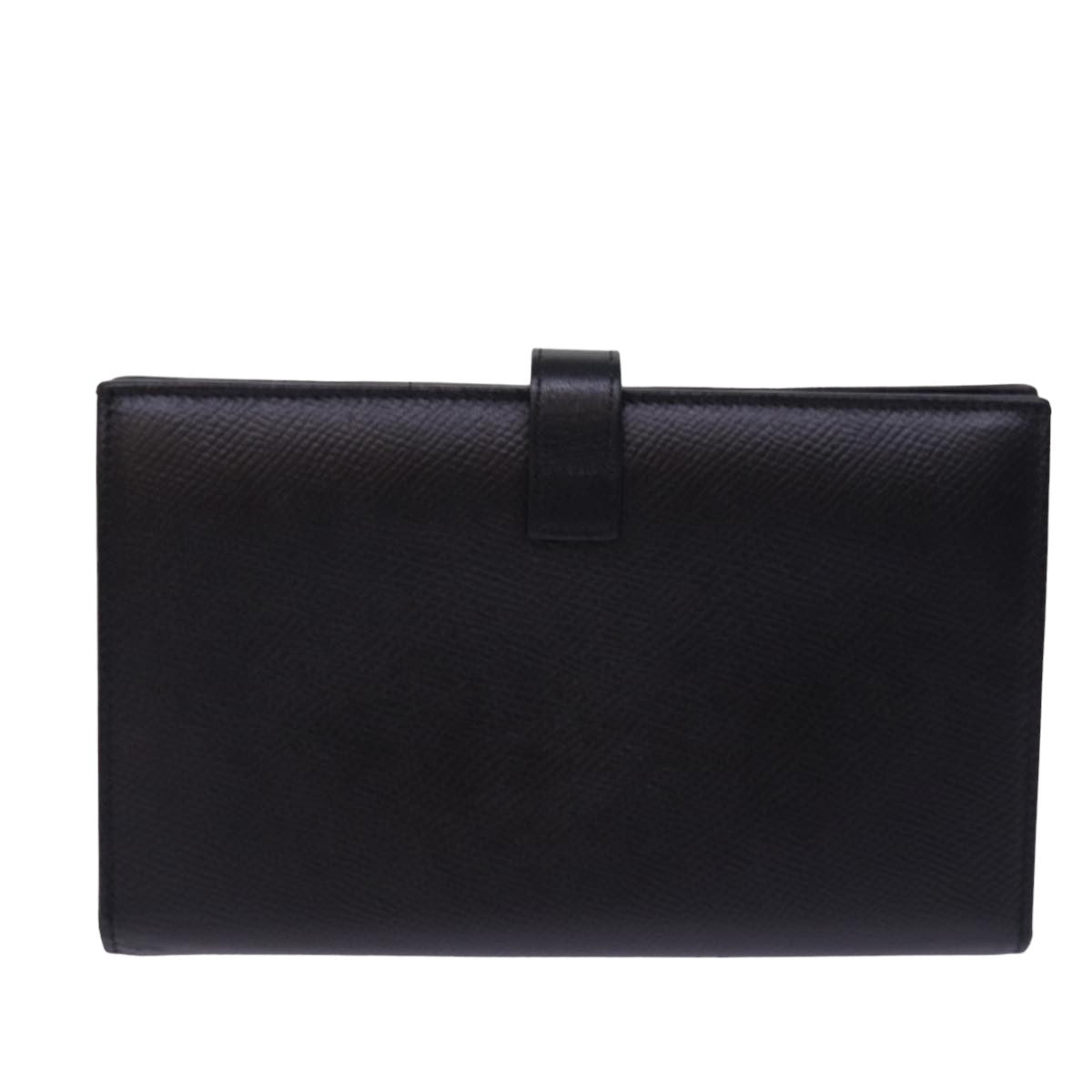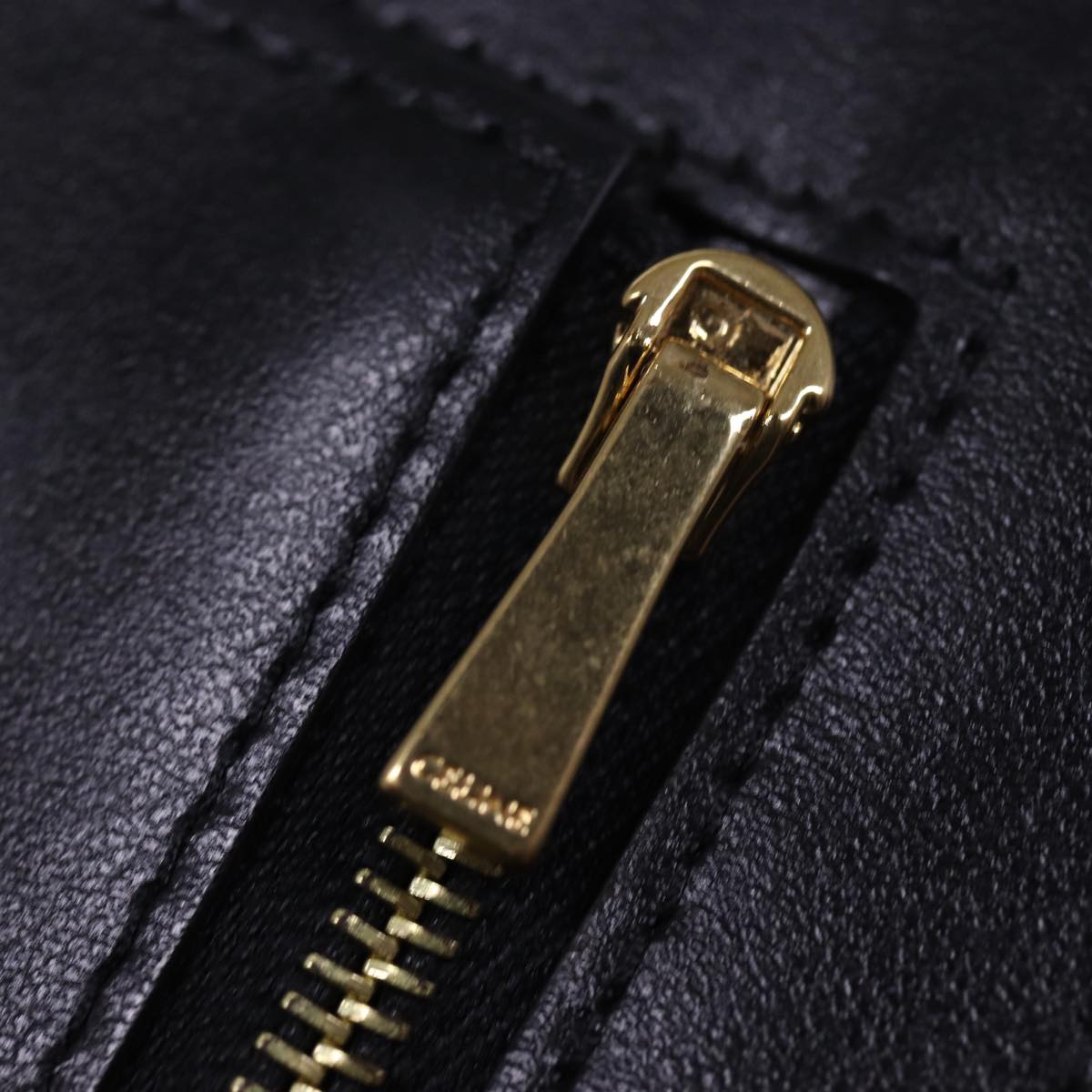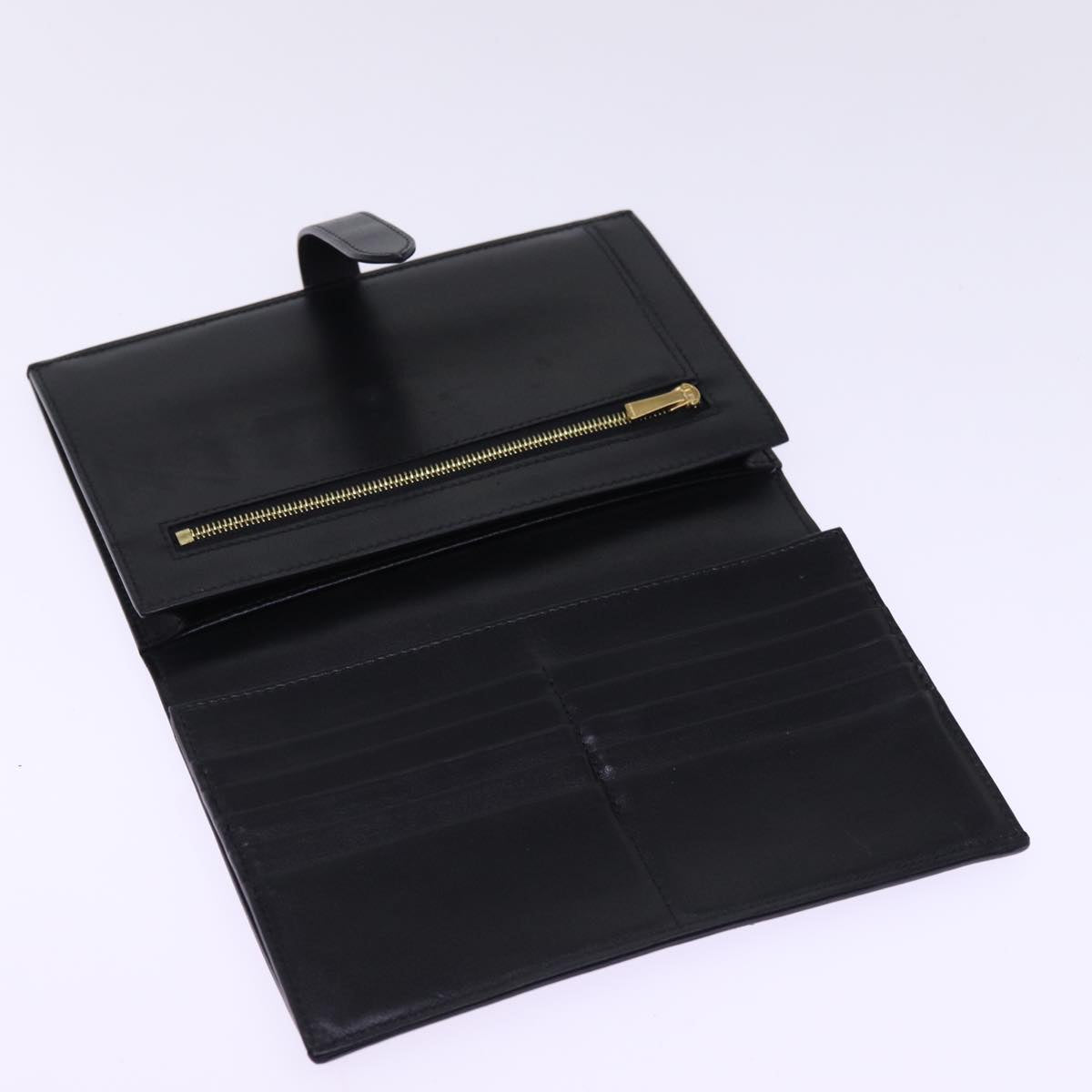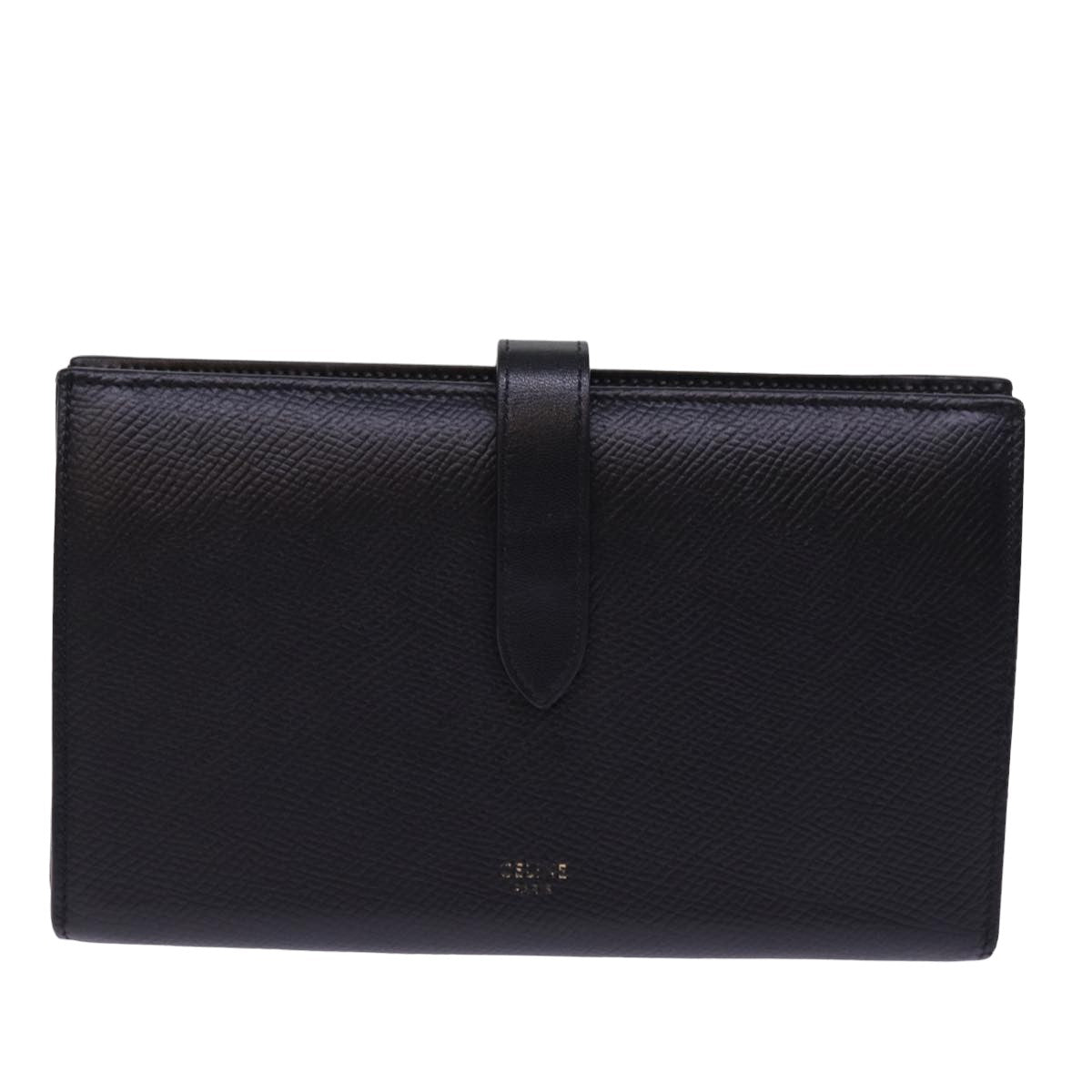 CELINE Large Strap Wallet Leather Black Auth bs15228