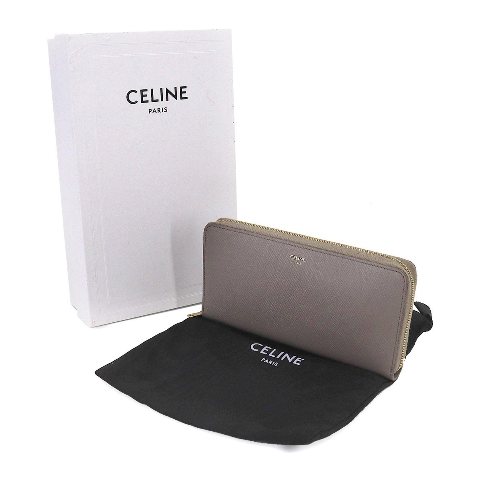Celine Large Zipped Wallet Round Zipper Long Leather Gray 10B553BEL