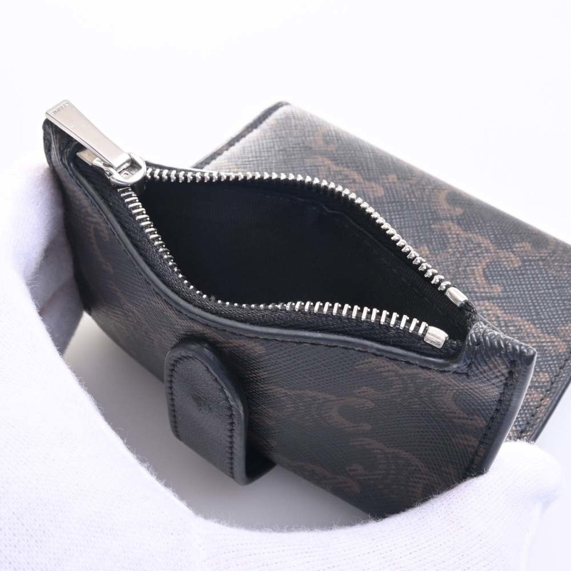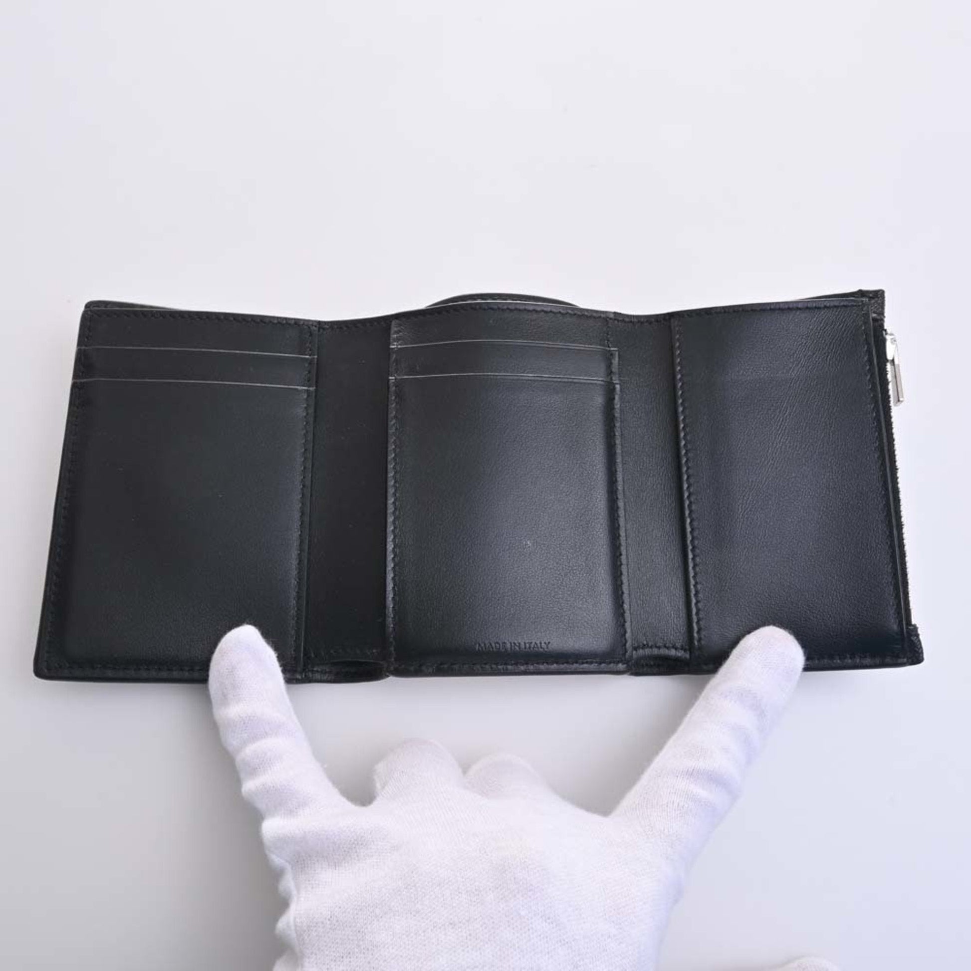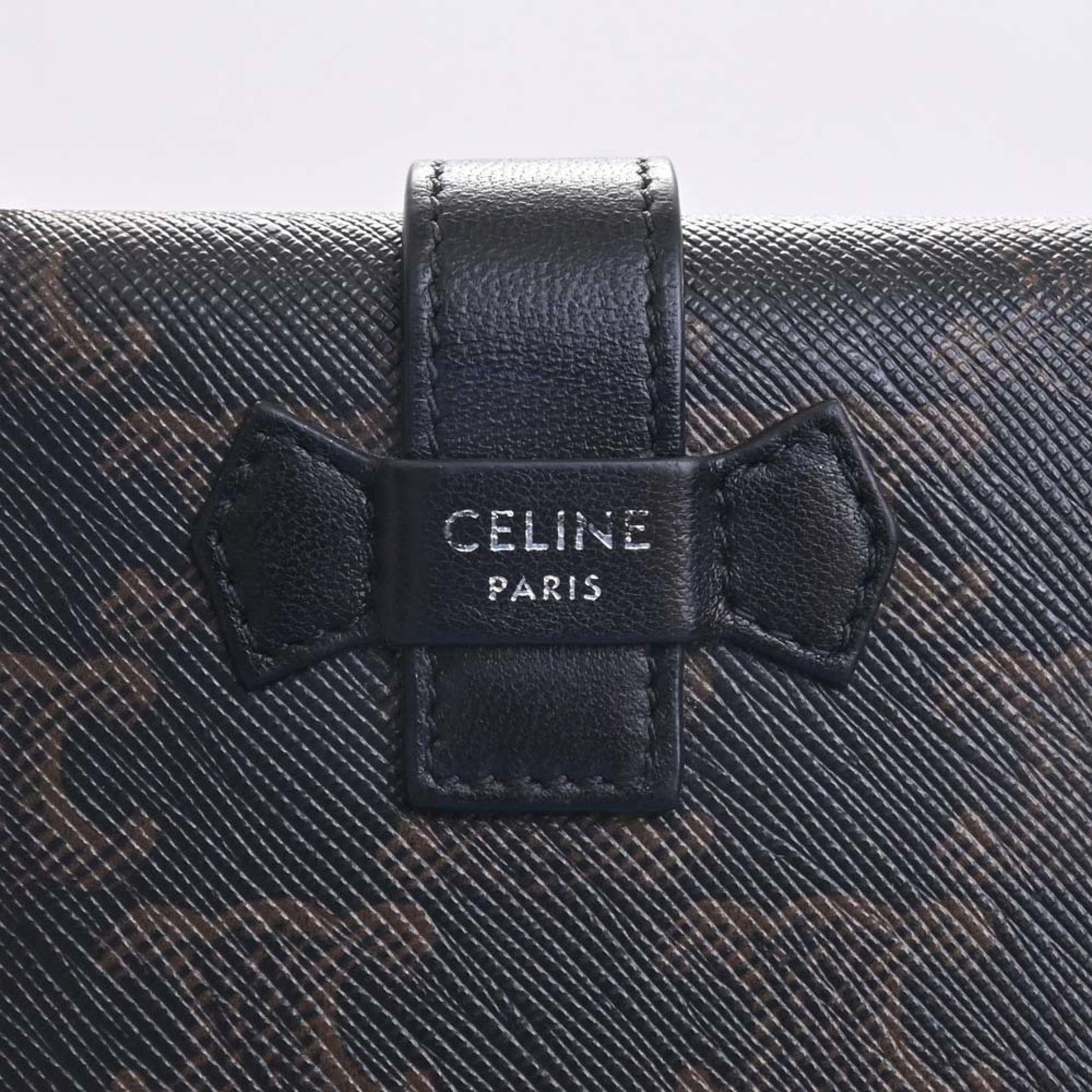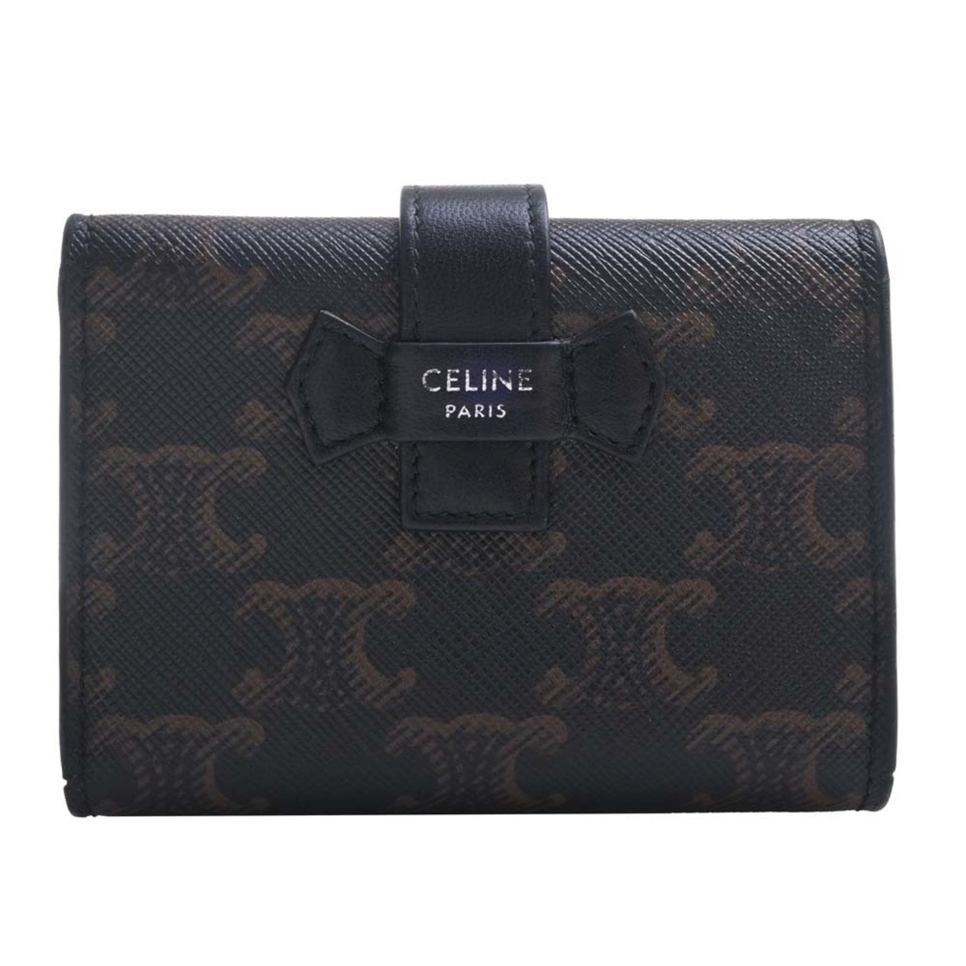 Celine Leather Triomphe Trifold Wallet Black Ladies