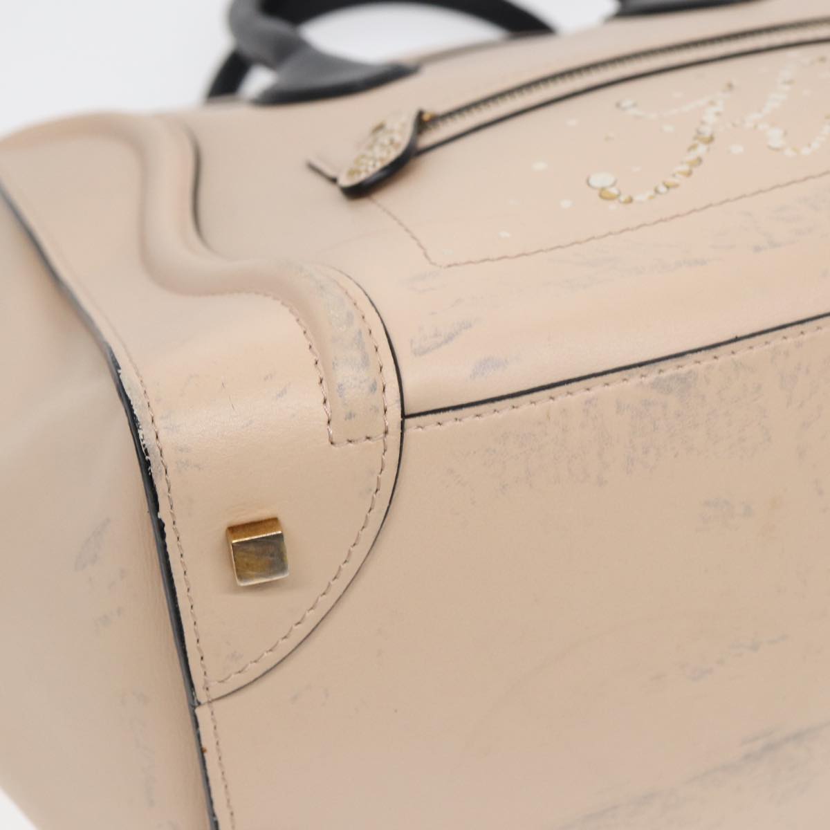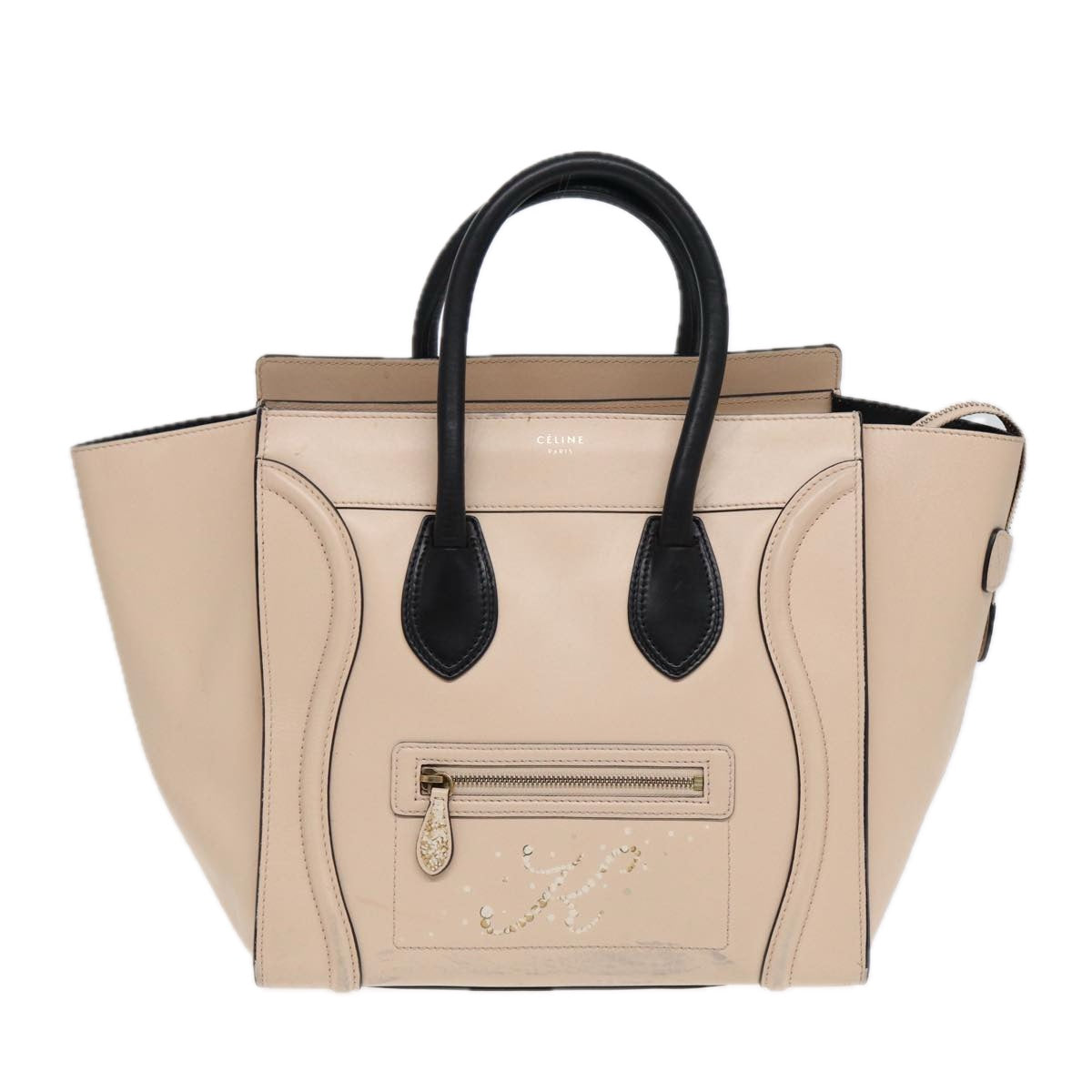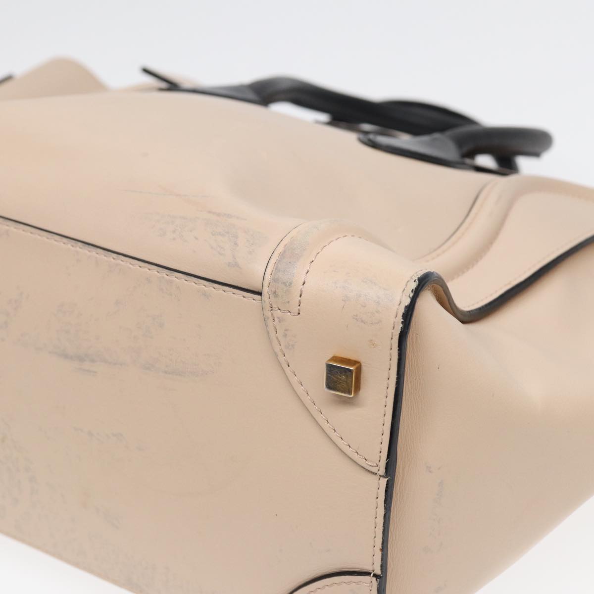 CELINE Luggage Mini Shopper Hand Bag Leather Beige Auth ar12490