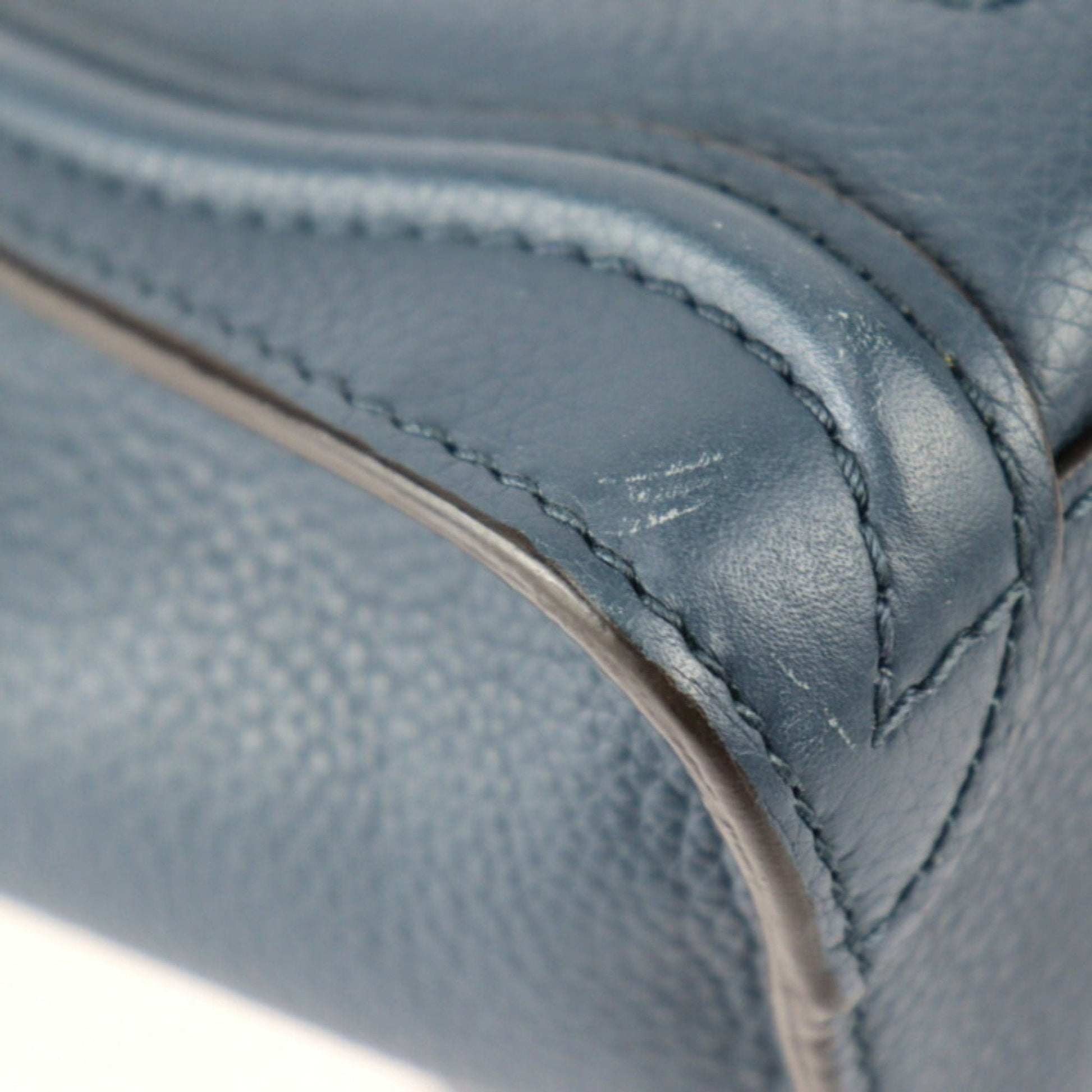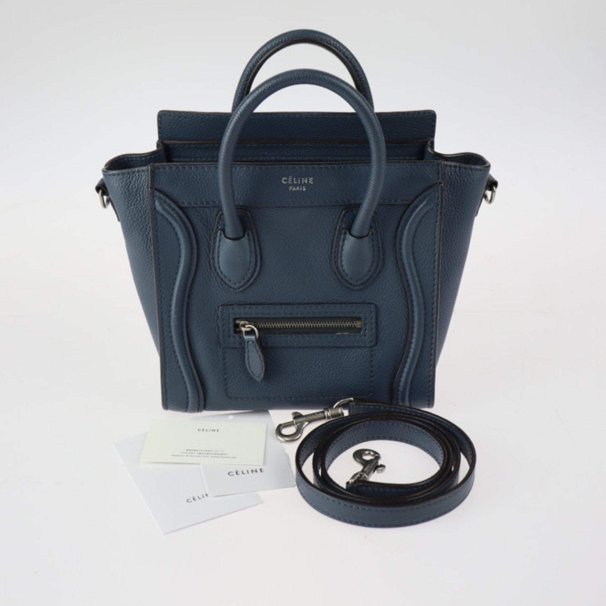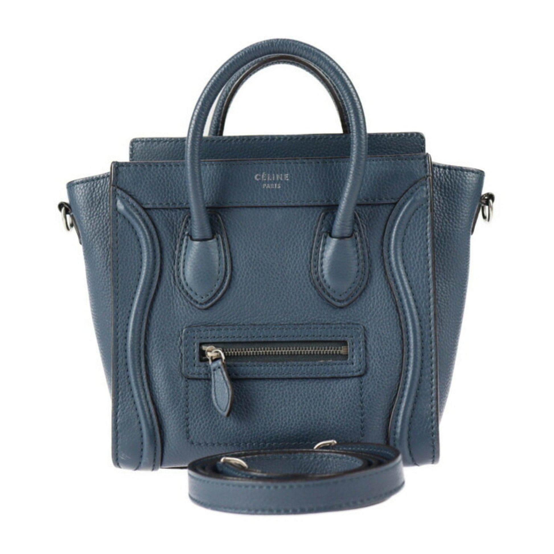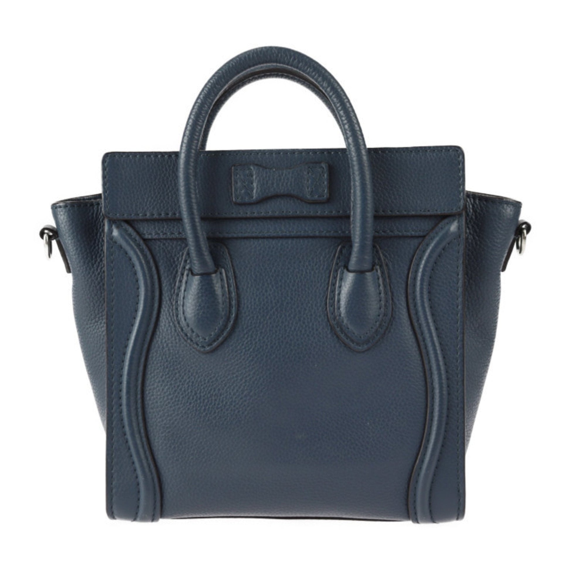 Celine Luggage Nano Shopper Handbag 168243 Leather Navy Silver Hardware 2WAY Shoulder Bag