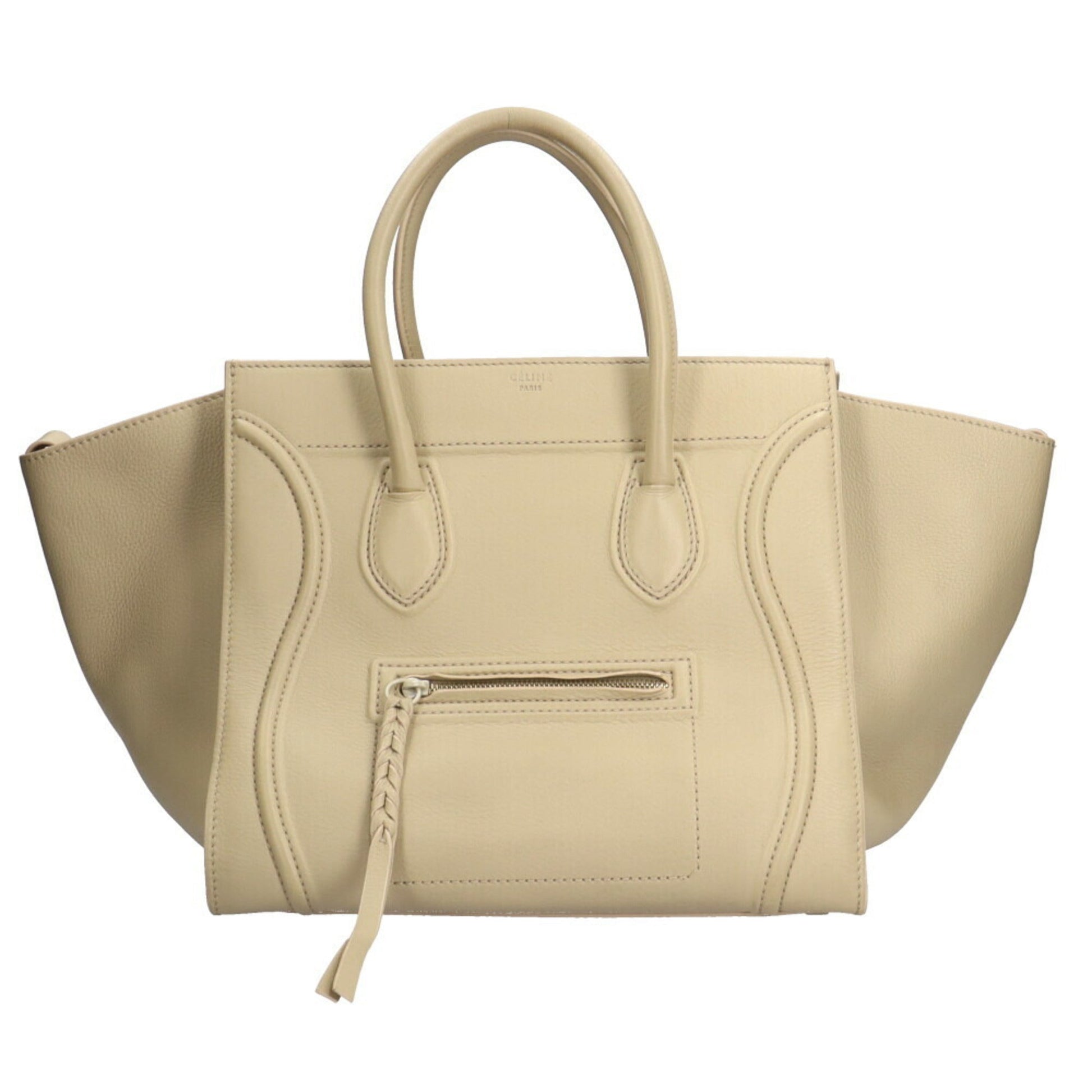 Celine Luggage Phantom Handbag Leather Beige Ladies