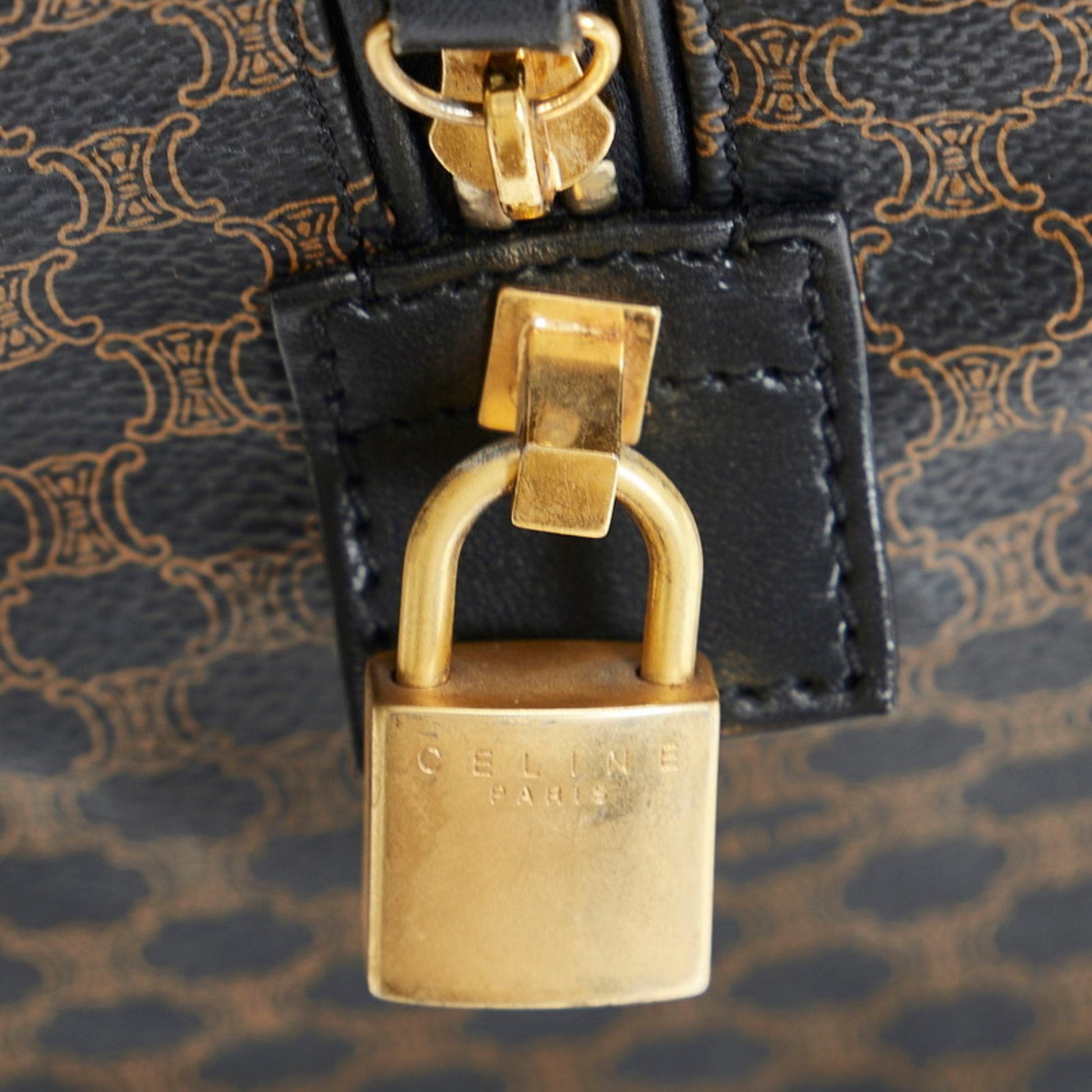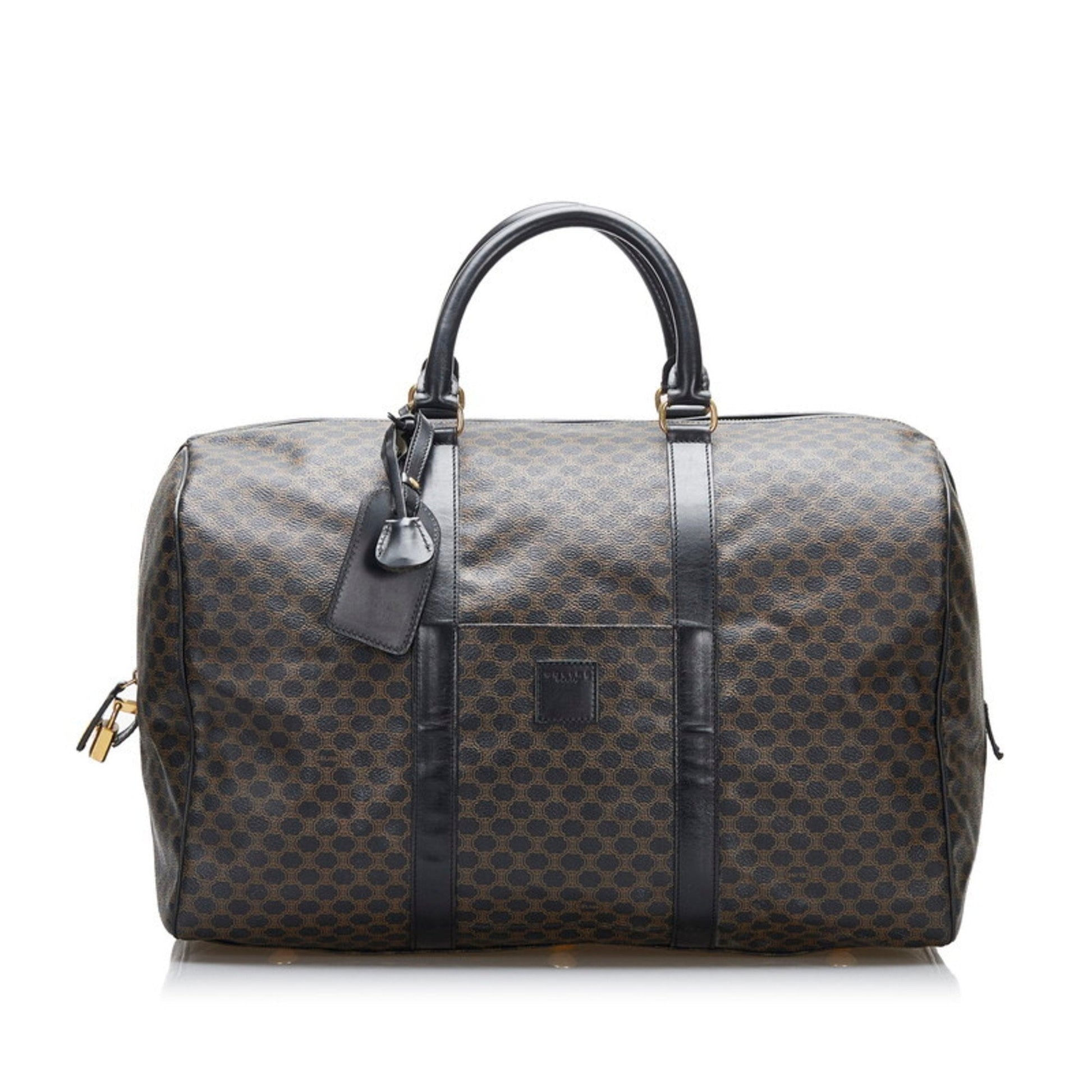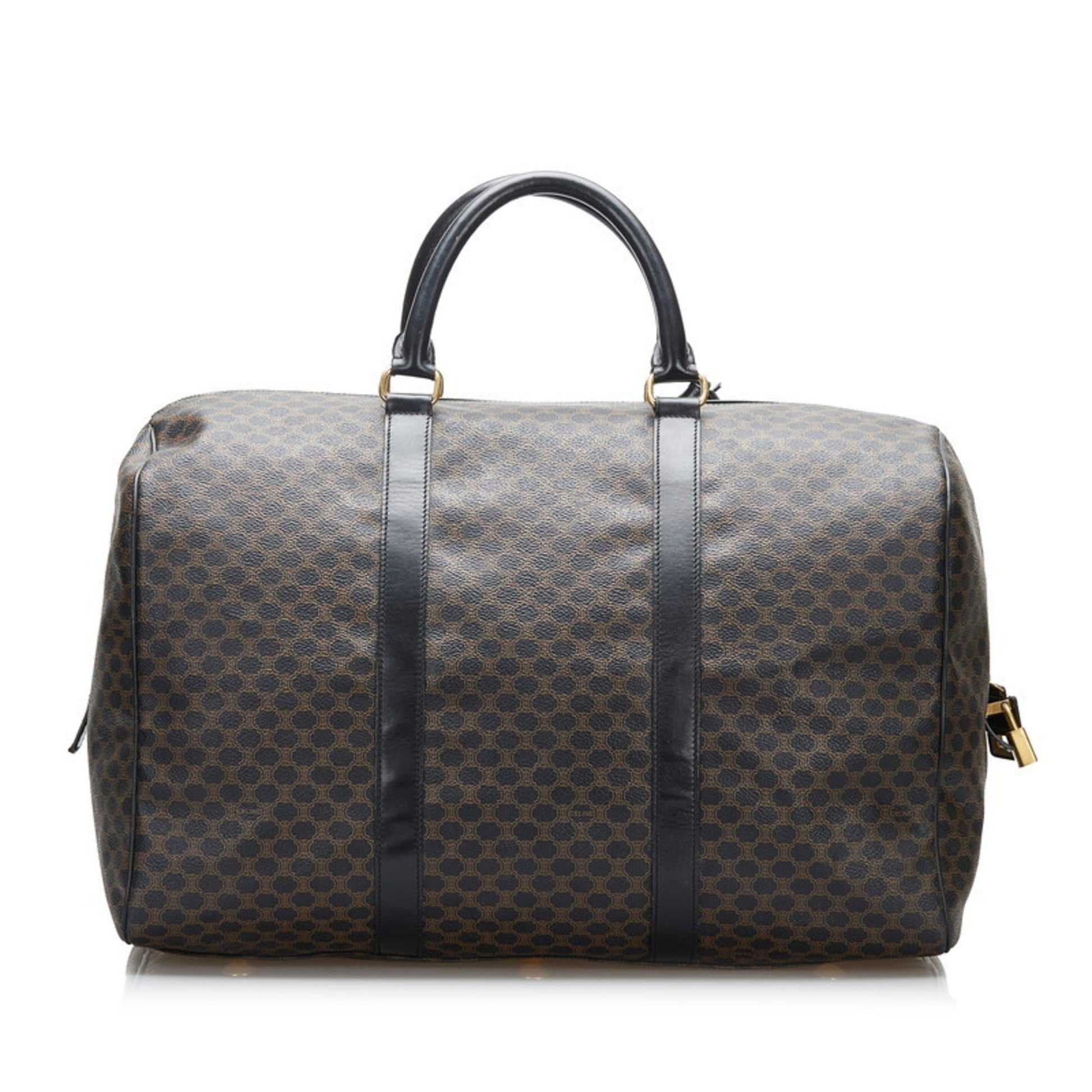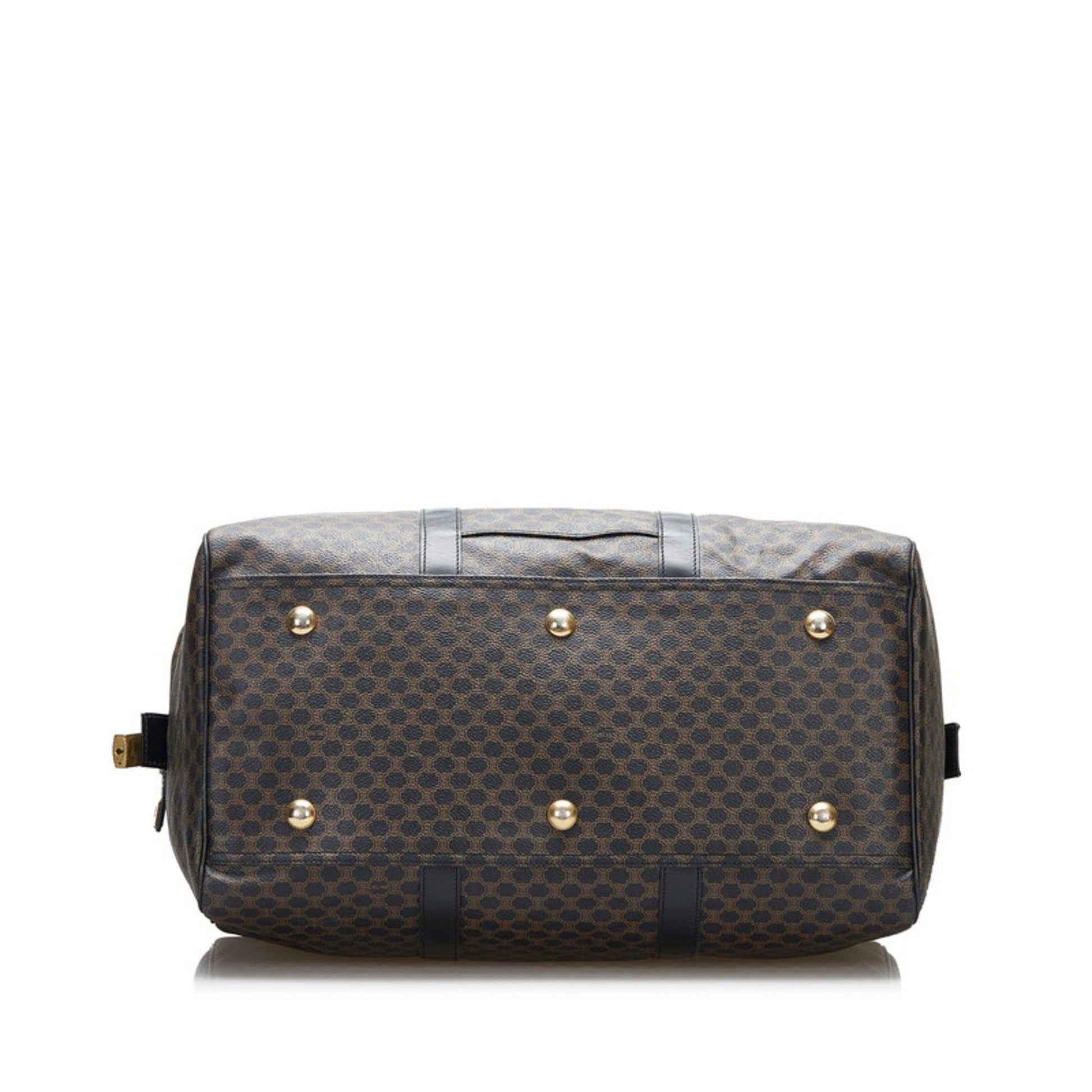 Celine Macadam Boston Bag Brown Black PVC Leather Ladies