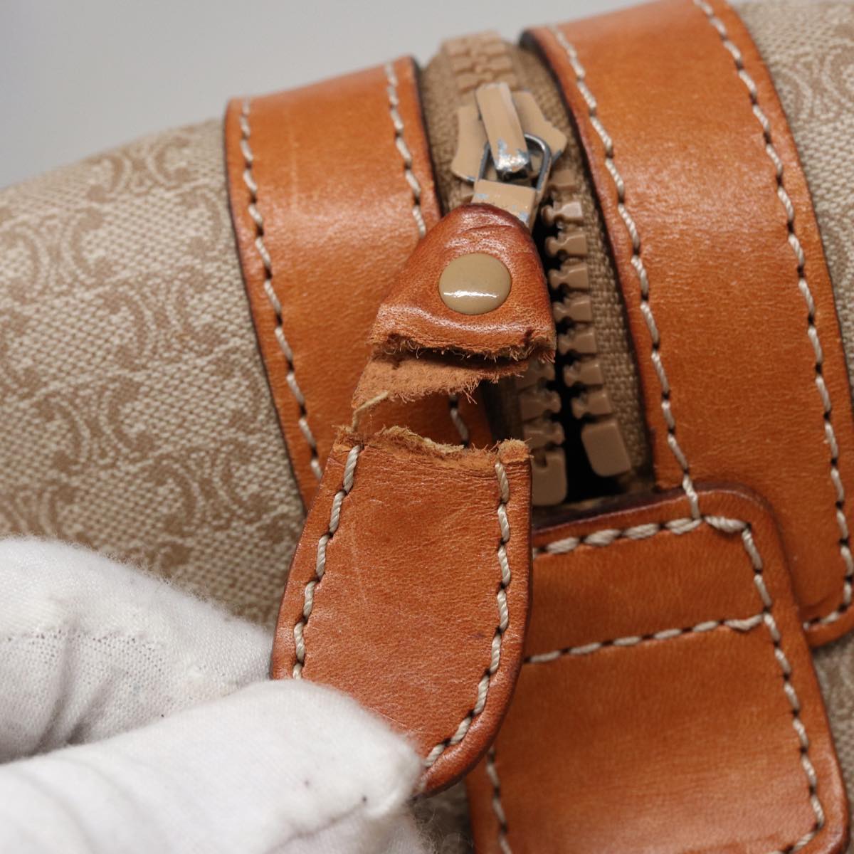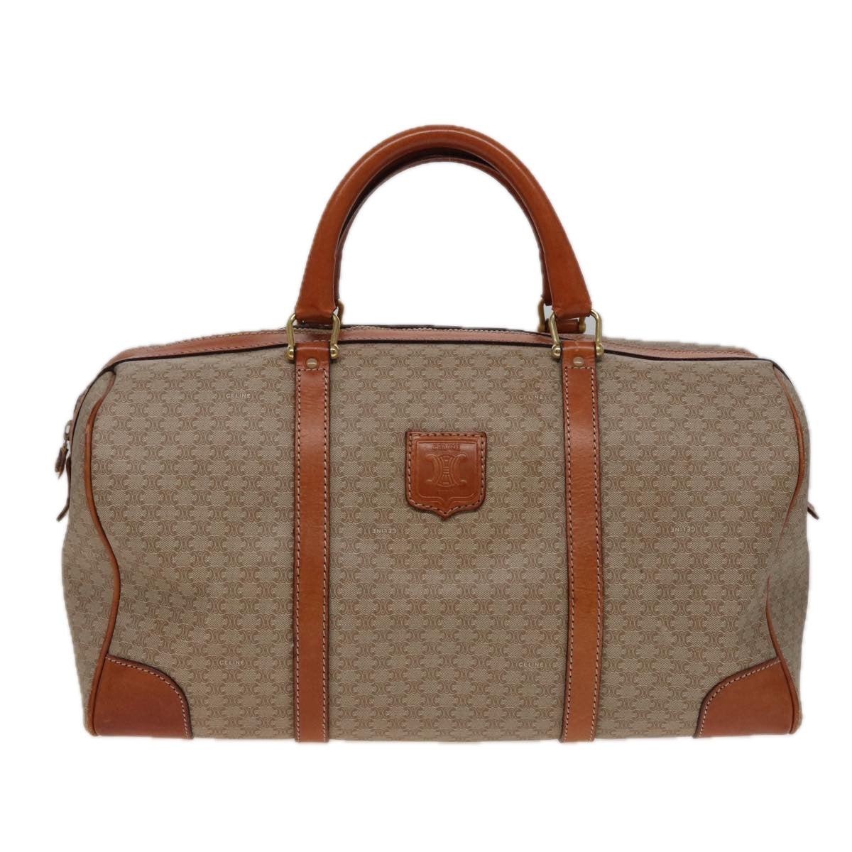 CELINE Macadam Canvas Boston Bag Beige Auth 77712