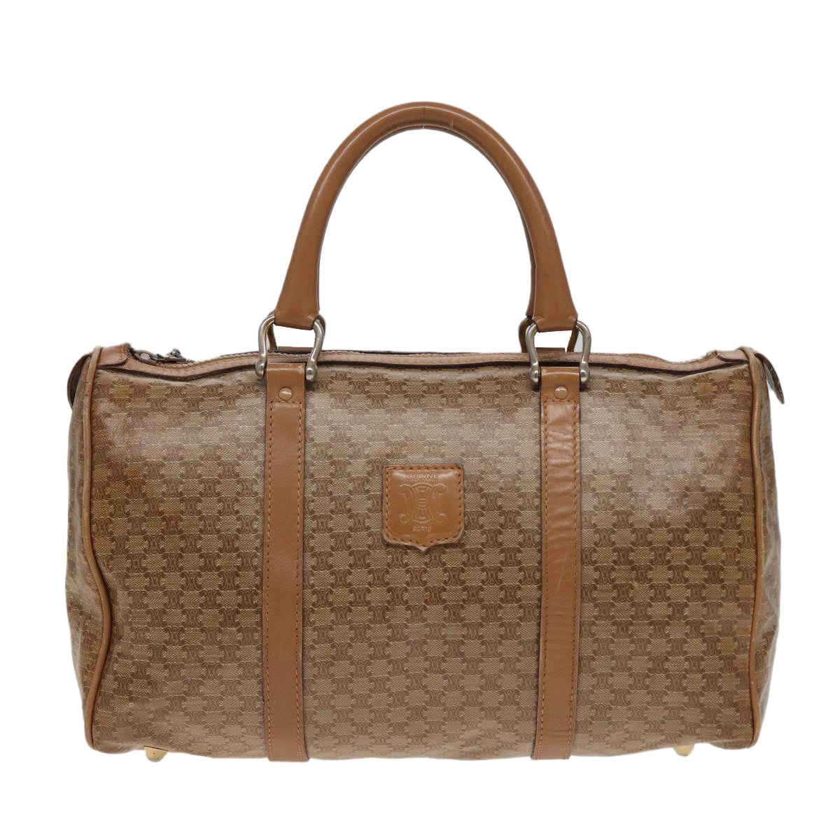CELINE Macadam Canvas Boston Bag Beige Auth bs15630