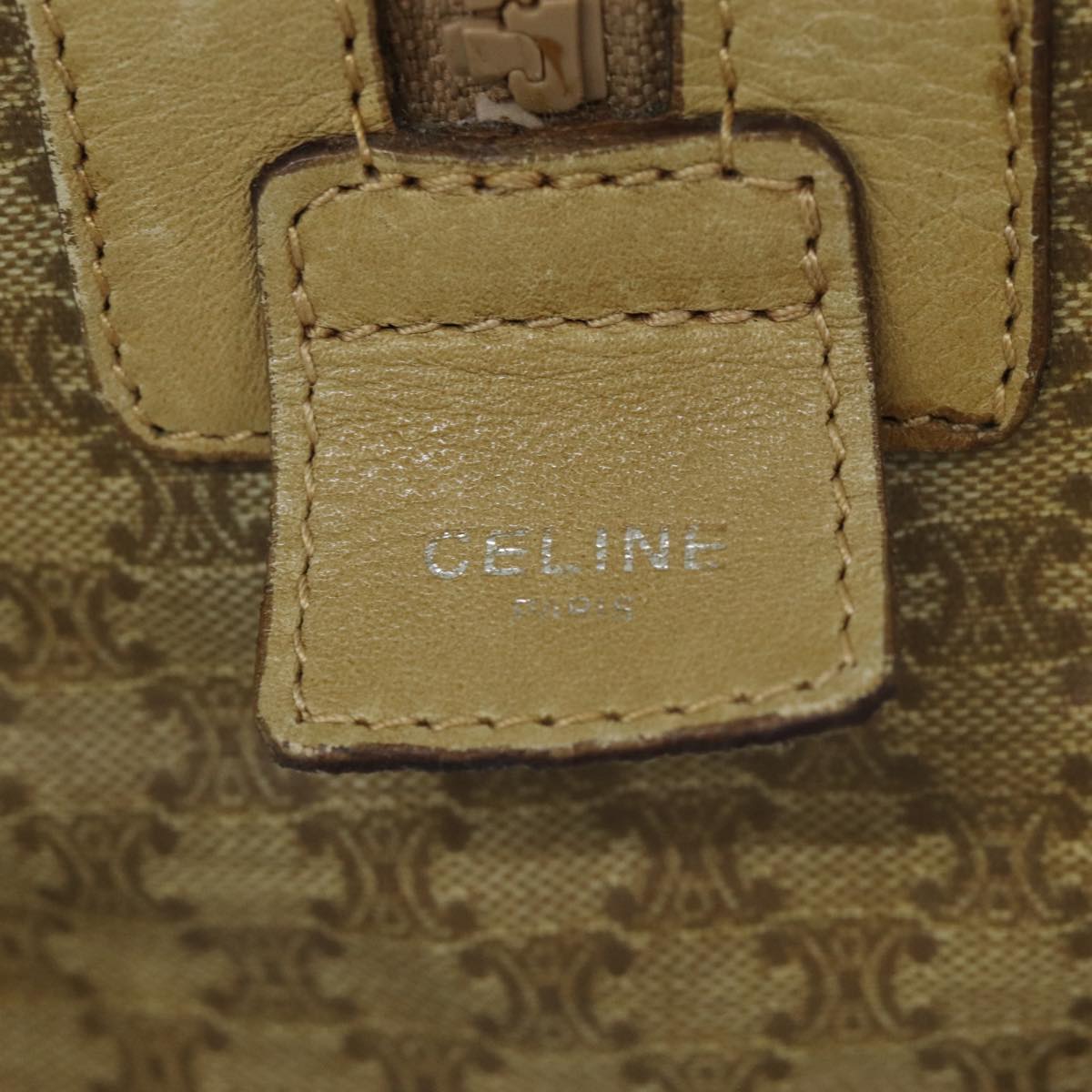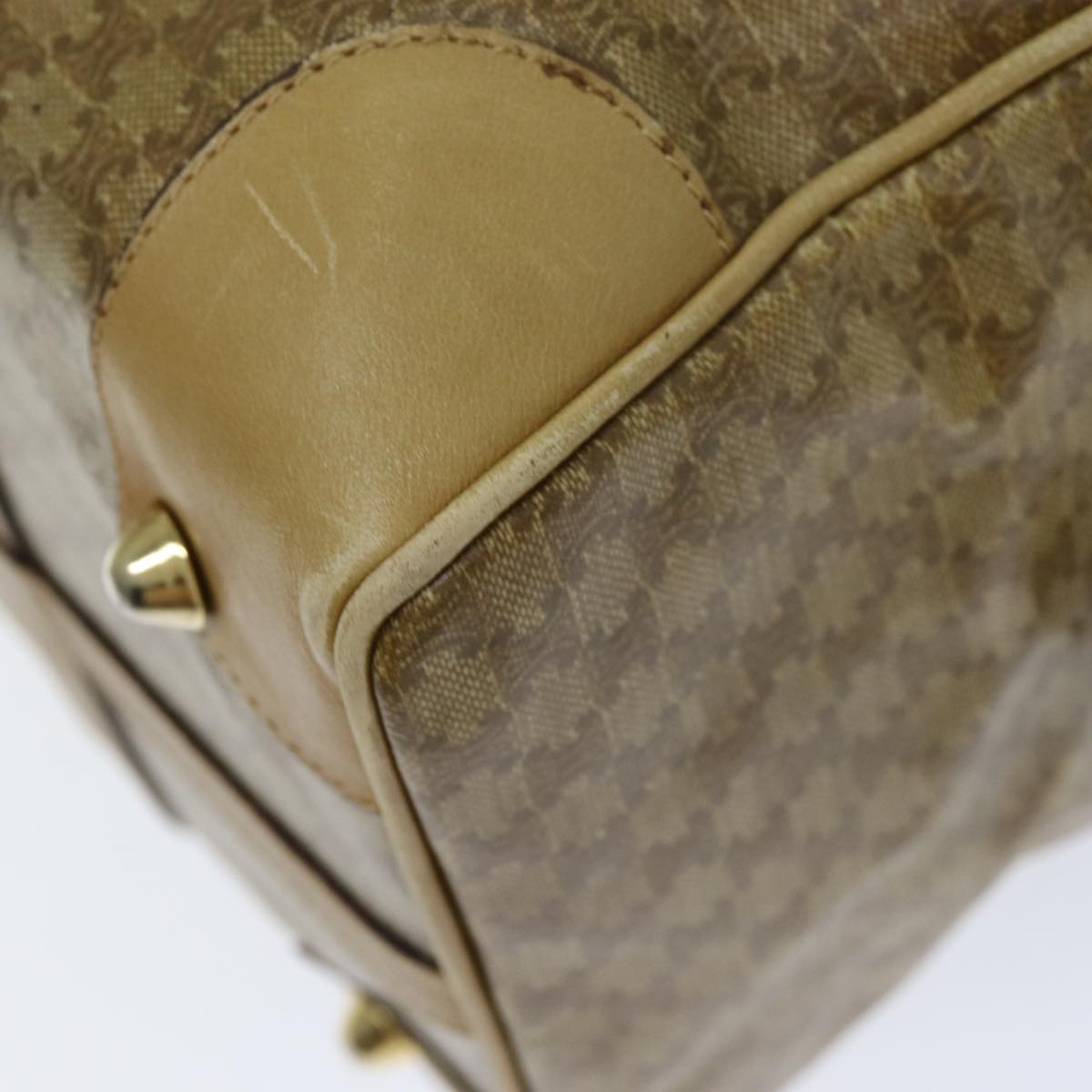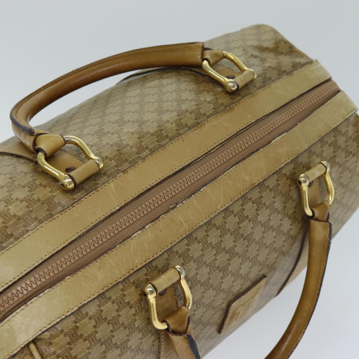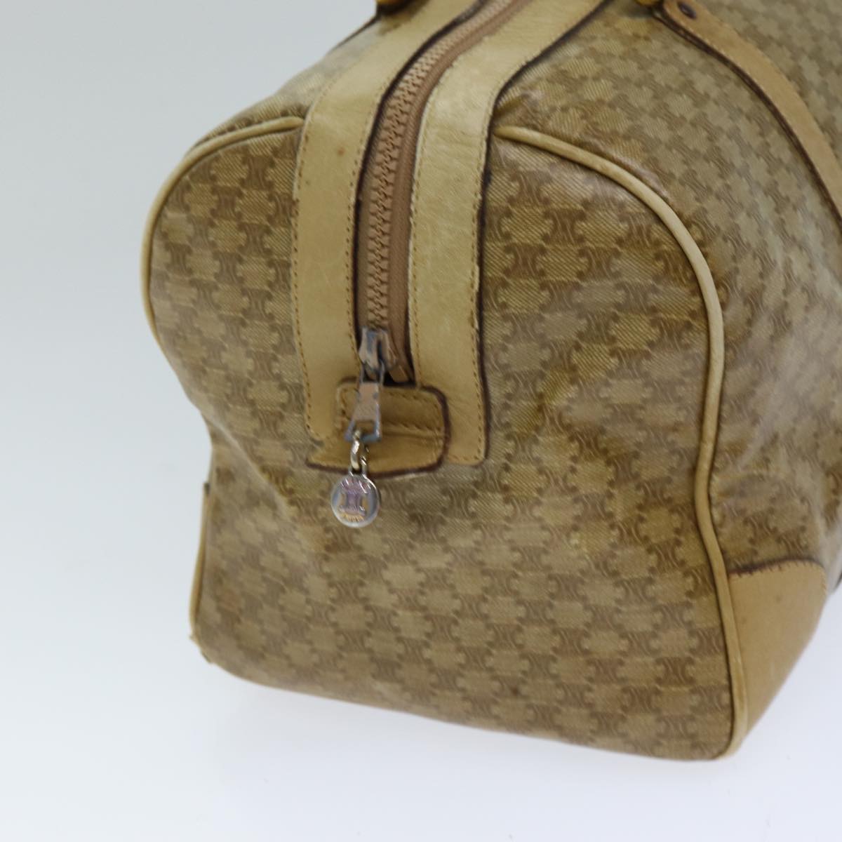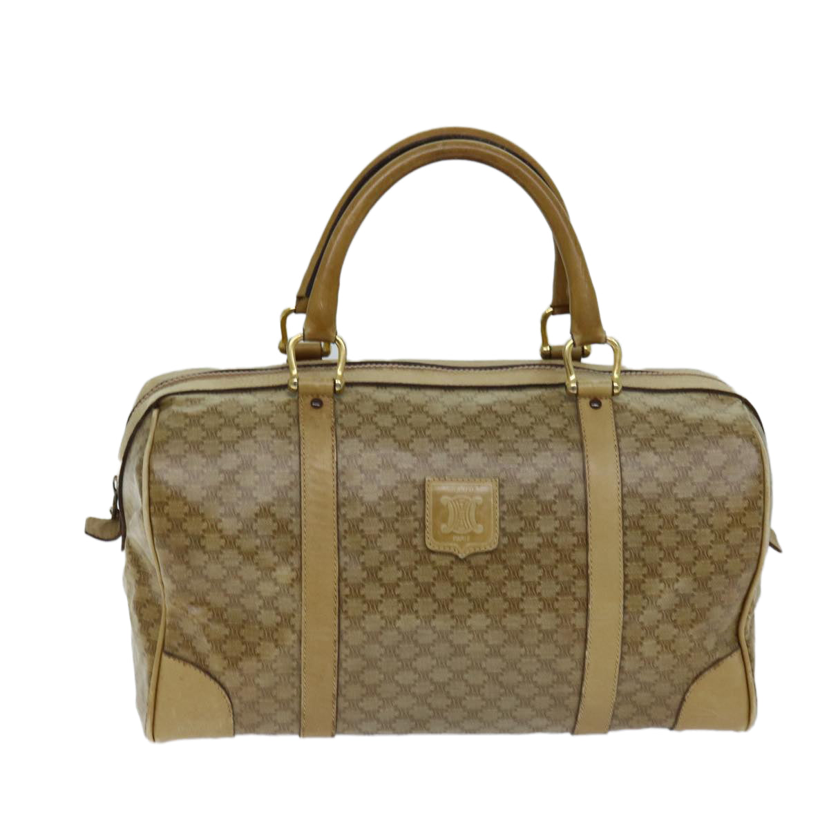 CELINE Macadam Canvas Boston Bag Beige Auth tb1089