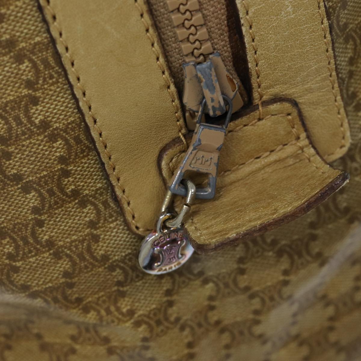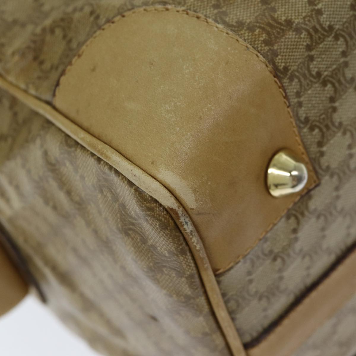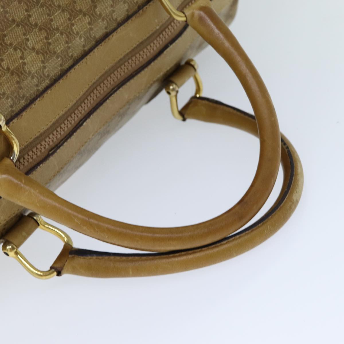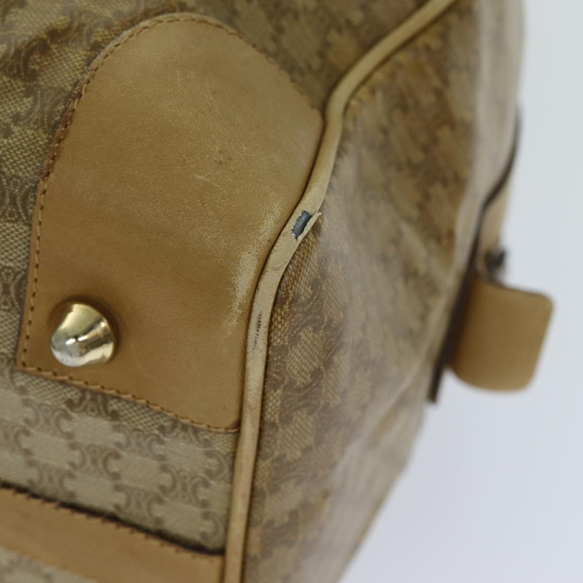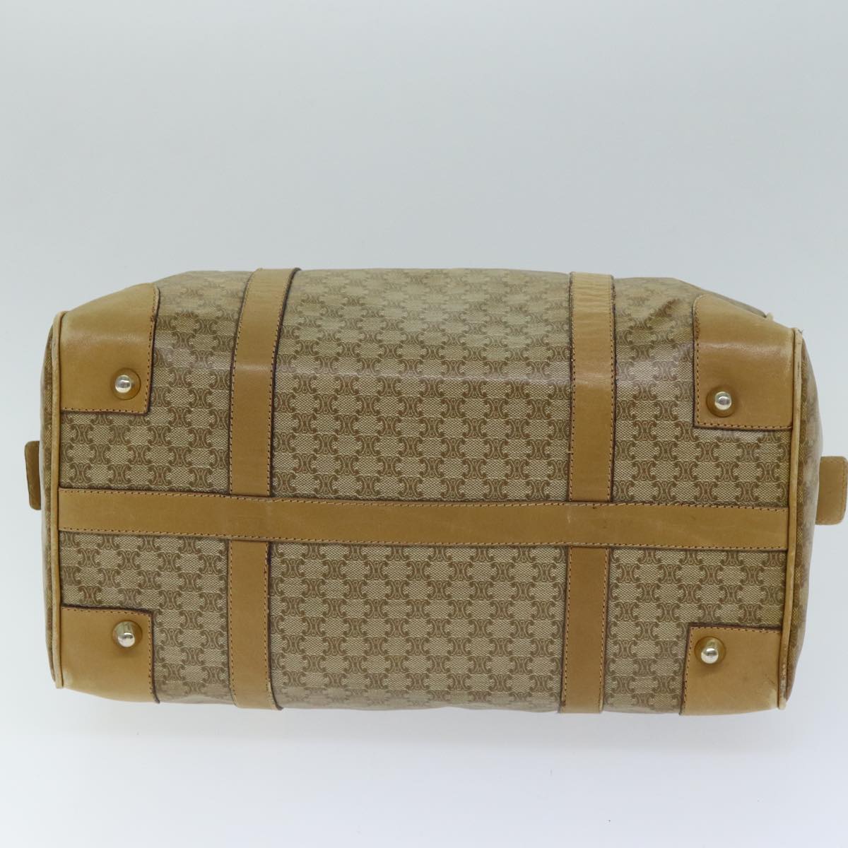 CELINE Macadam Canvas Boston Bag Beige Auth tb1089