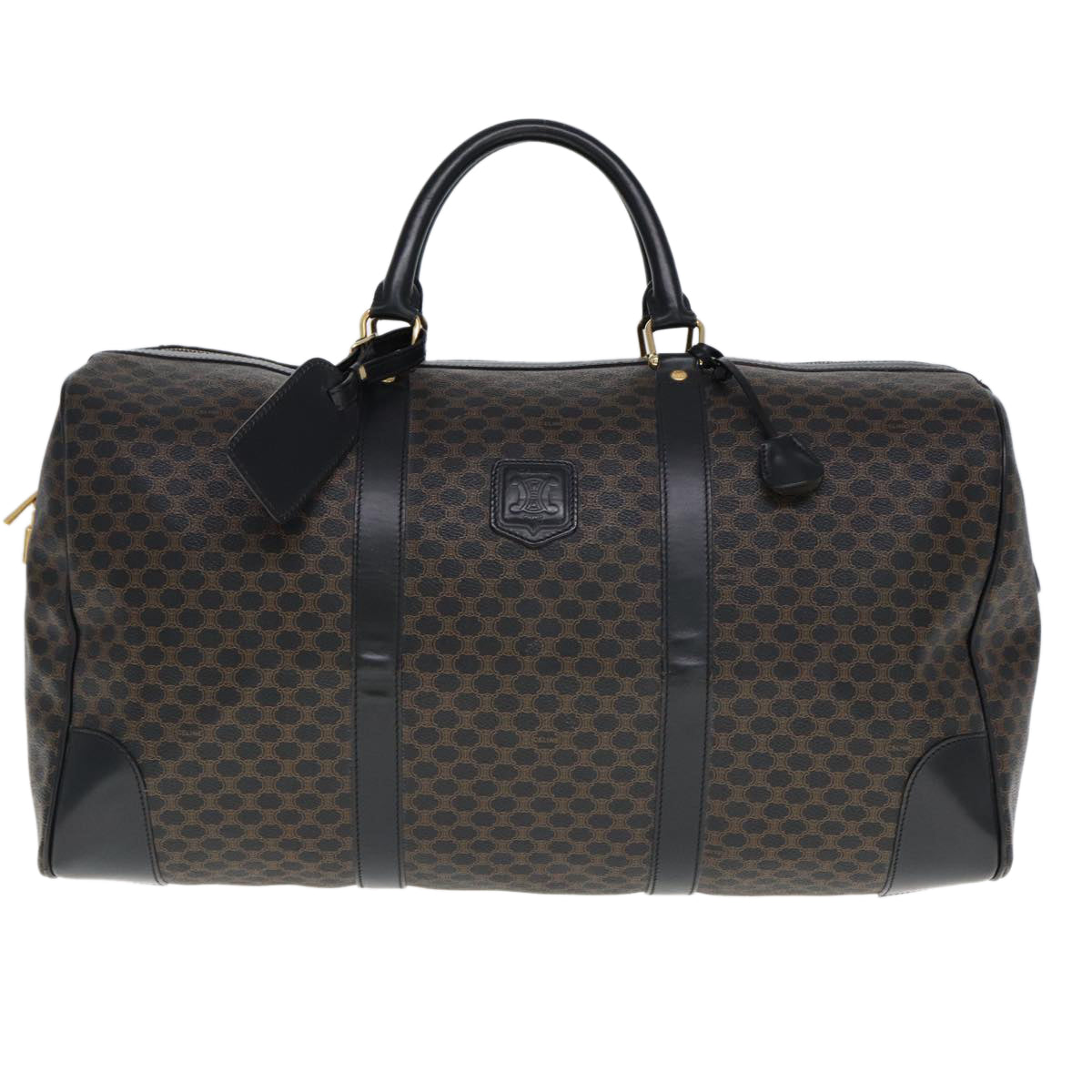 CELINE Macadam Canvas Boston Bag PVC Black Auth 75327
