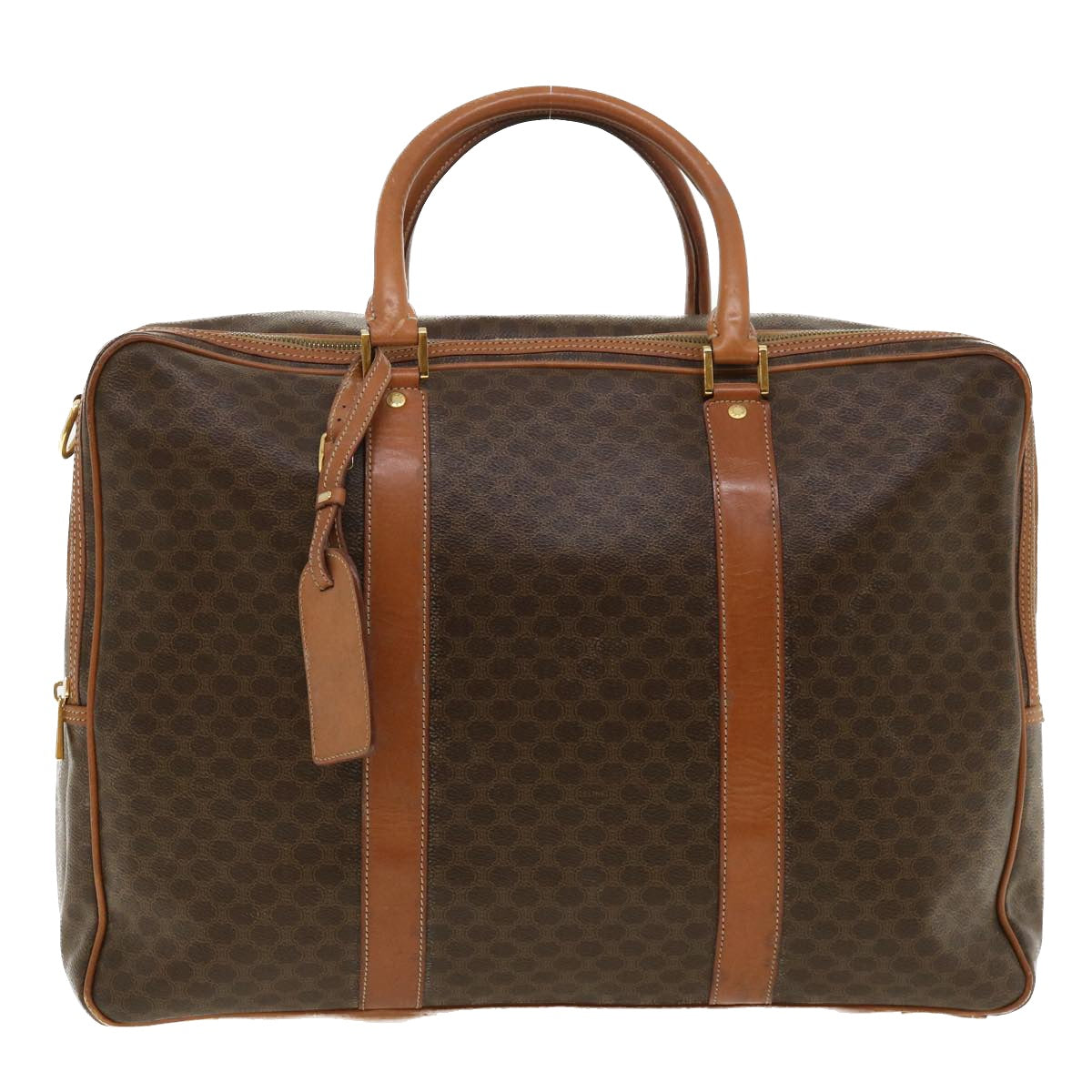 Celine Macadam Canvas Boston Bag PVC Leather 2way Brown ki2707