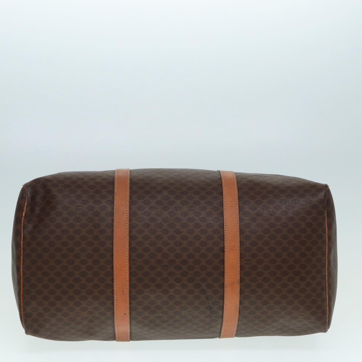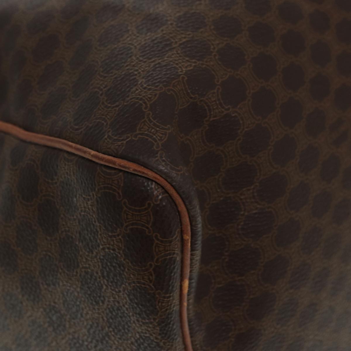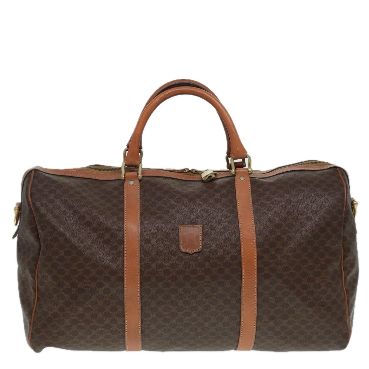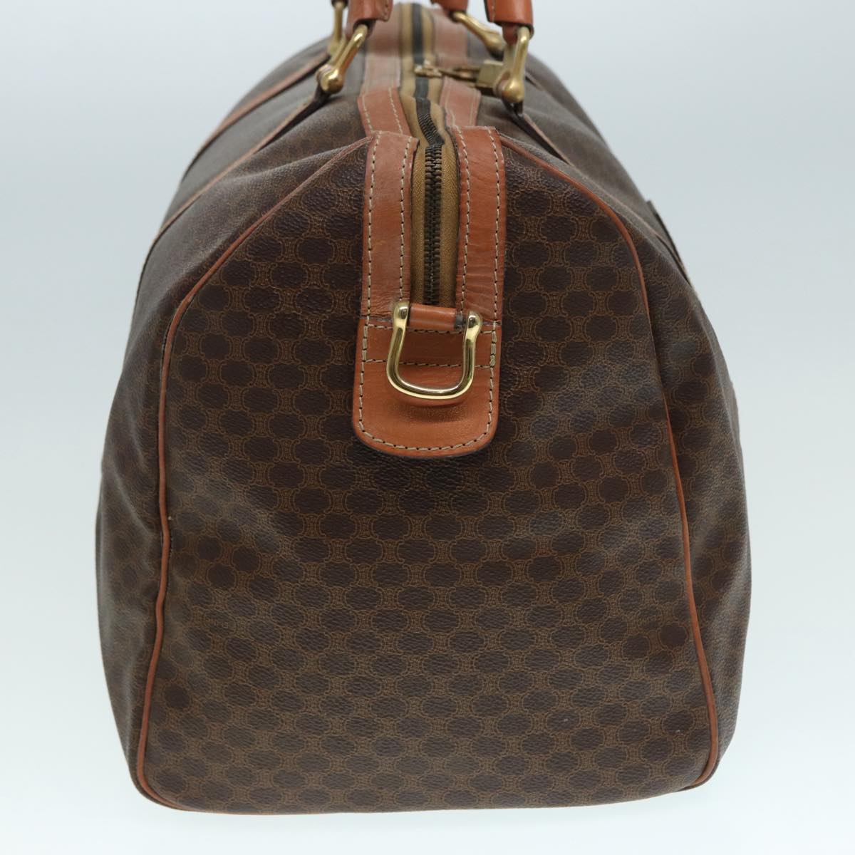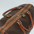 CELINE Macadam Canvas Boston Bag PVC Leather 2way Brown Gold Auth tb1116