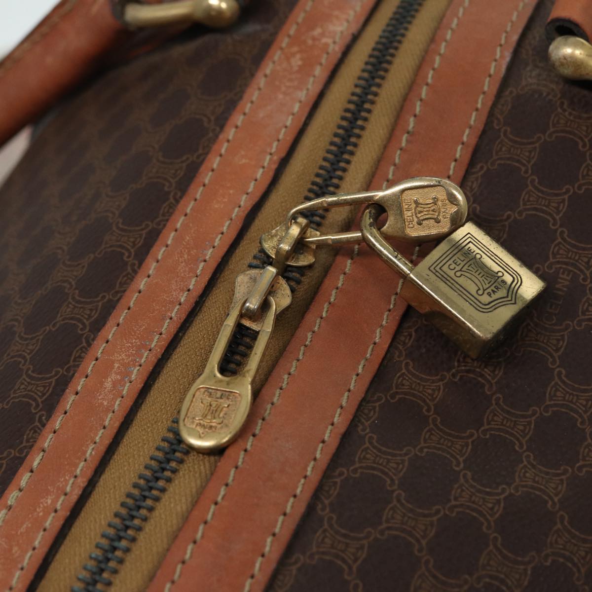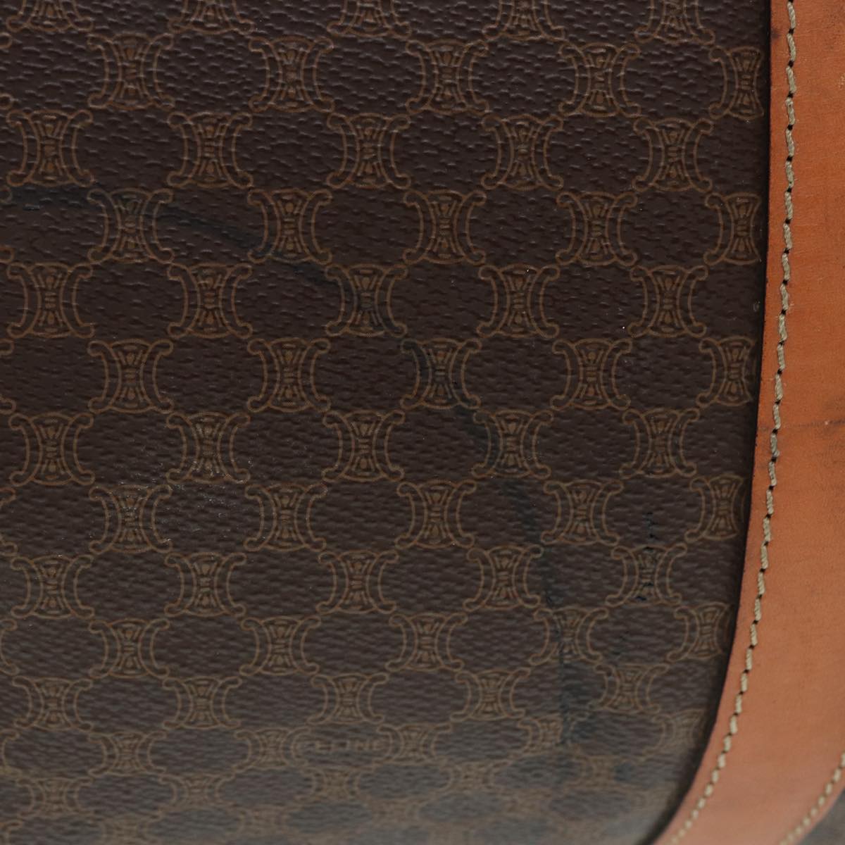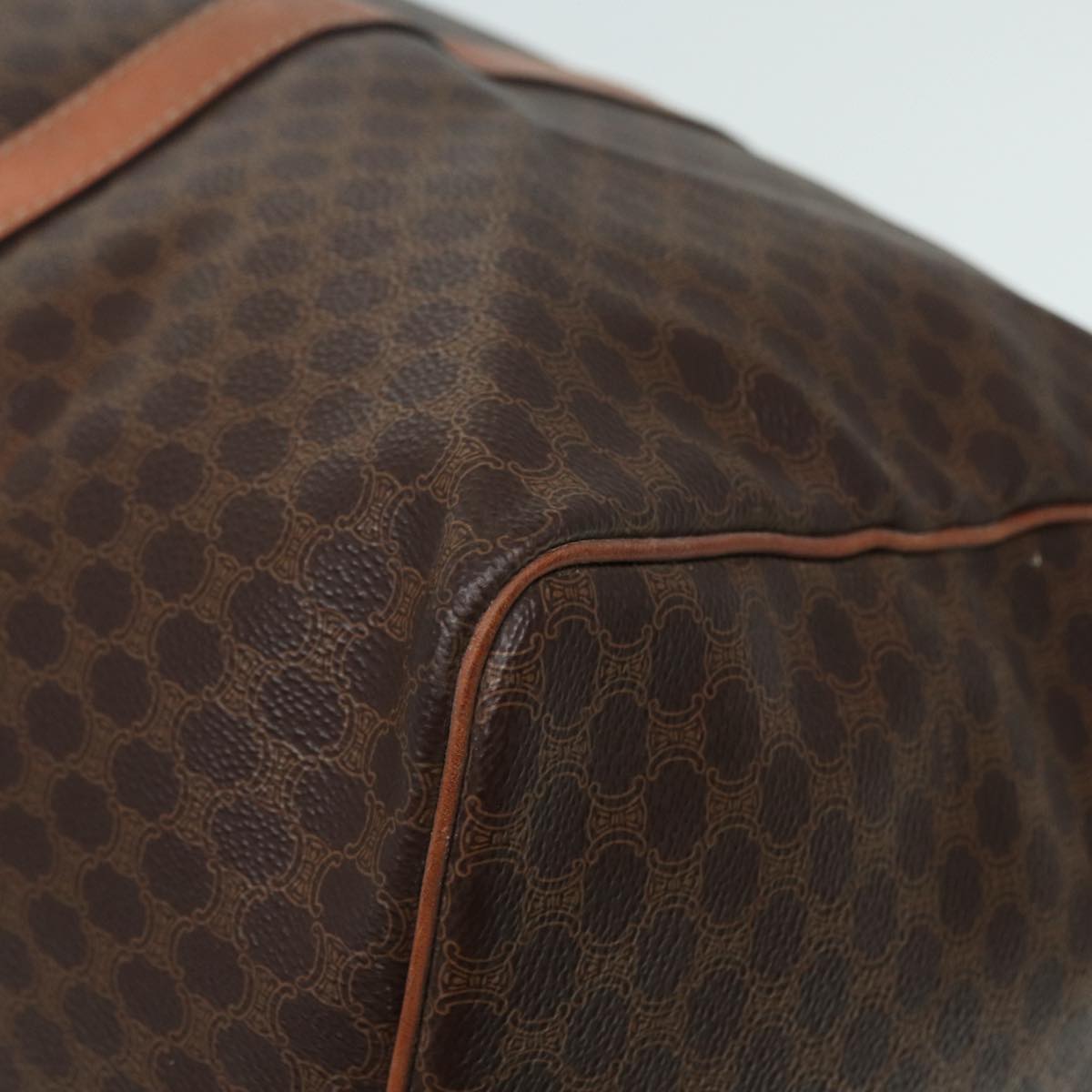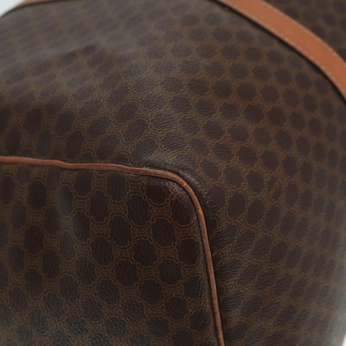 CELINE Macadam Canvas Boston Bag PVC Leather 2way Brown Gold Auth tb1116