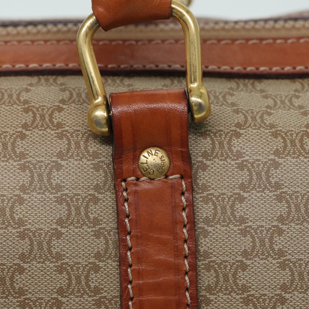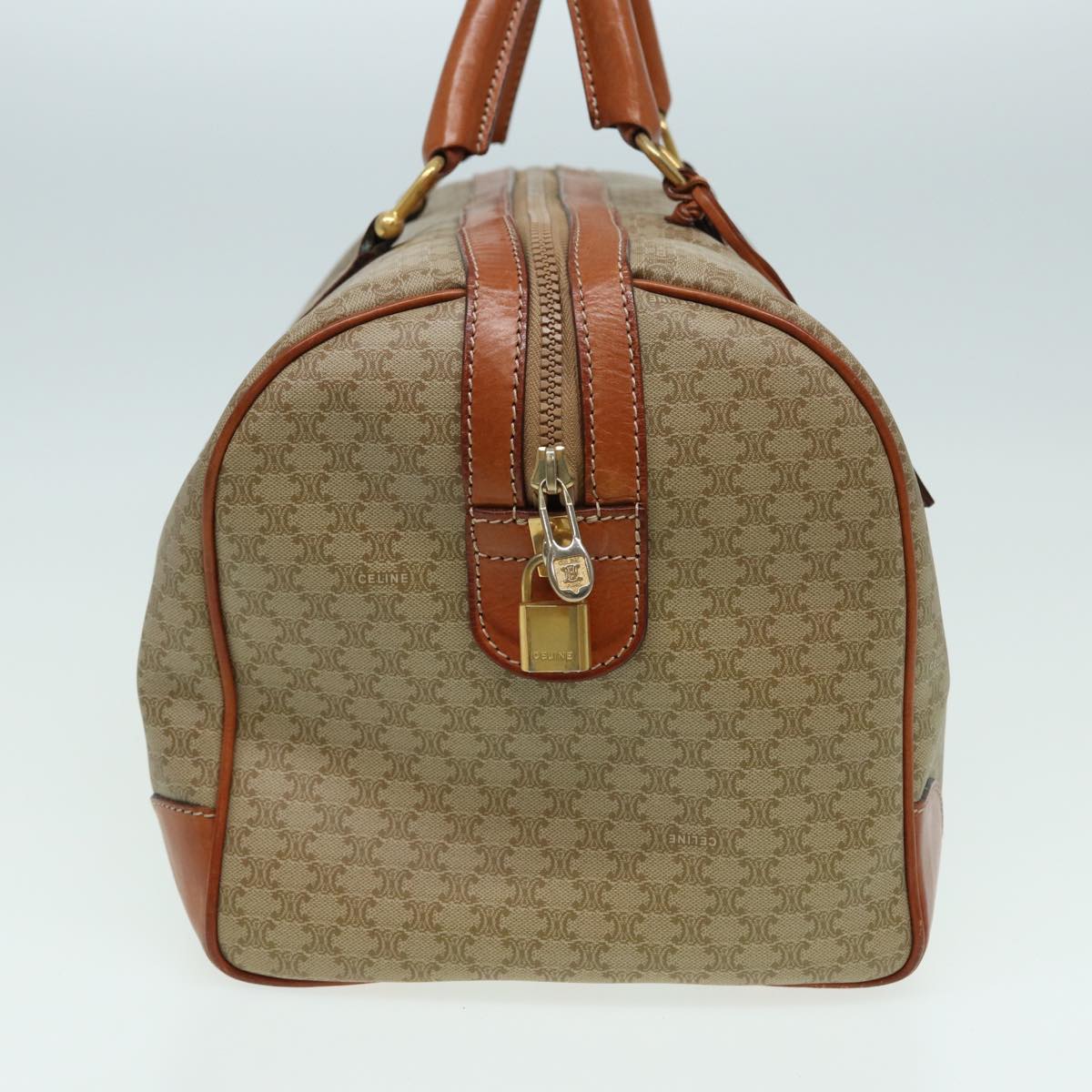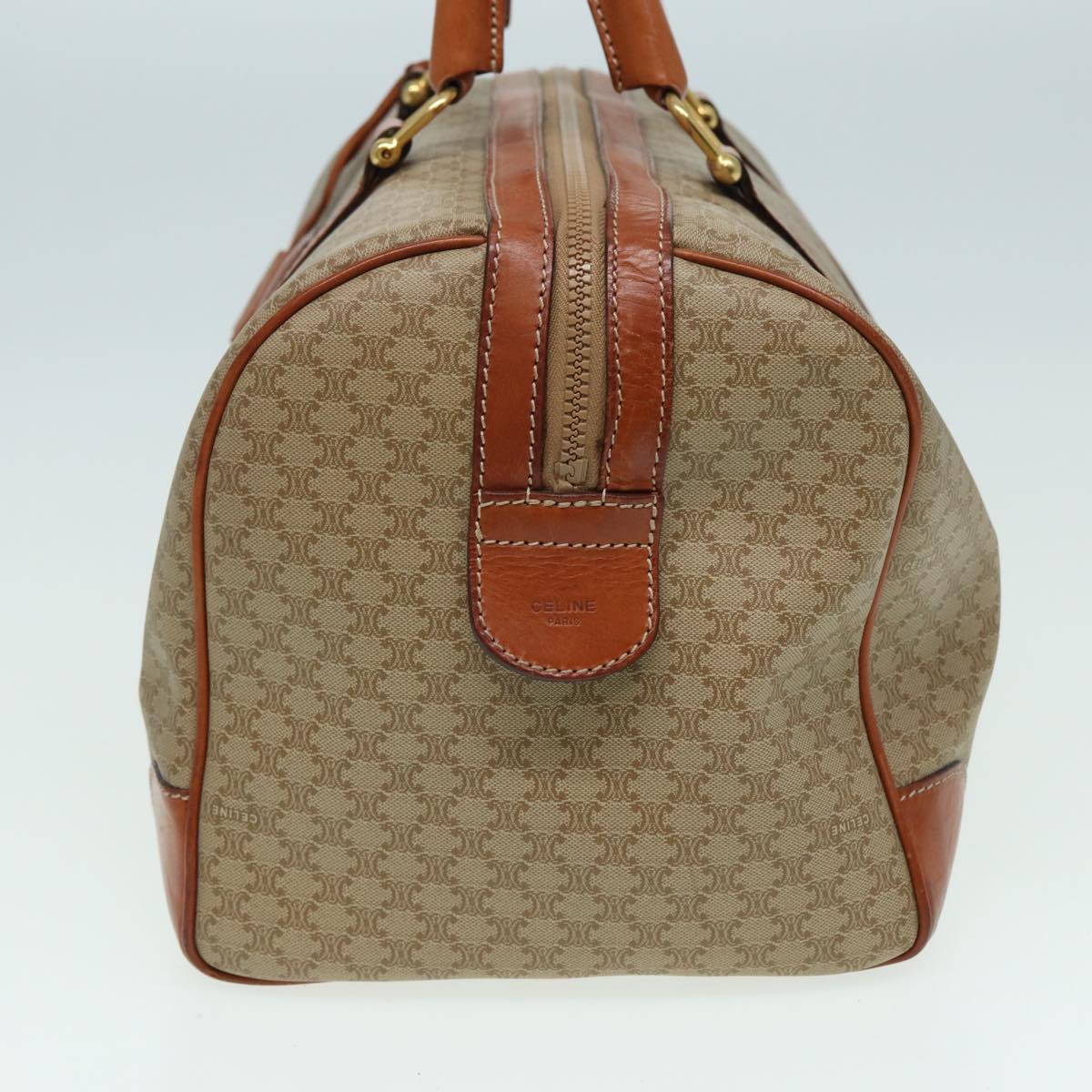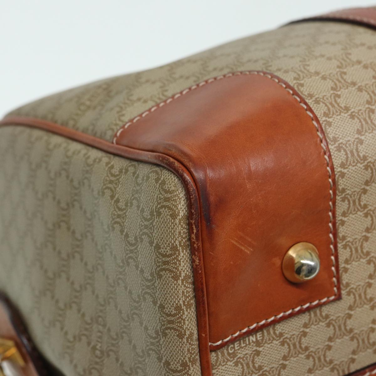 CELINE Macadam Canvas Boston Bag PVC Leather Beige Auth 80957