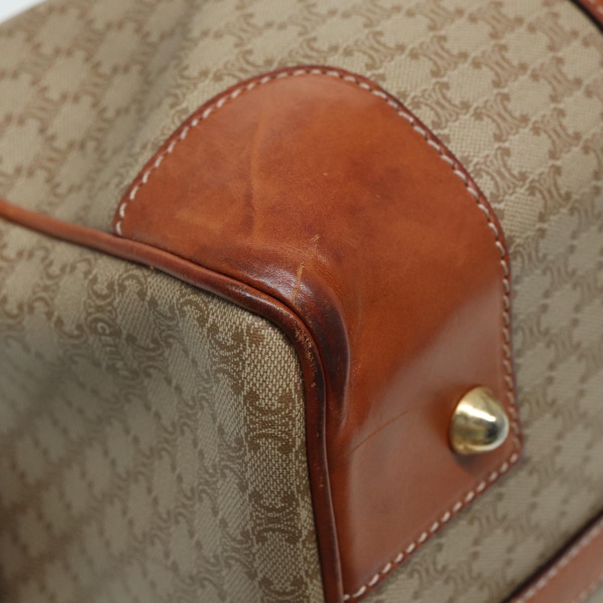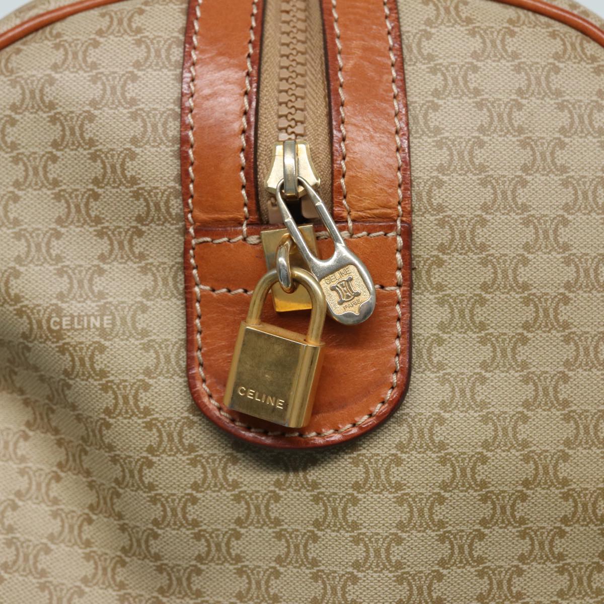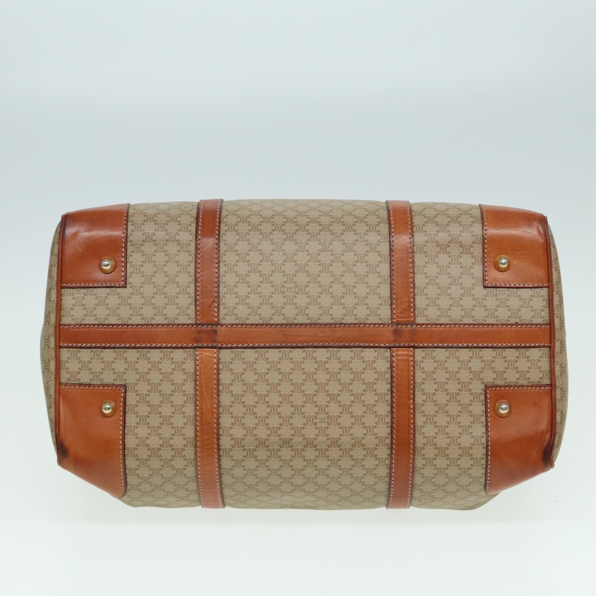 CELINE Macadam Canvas Boston Bag PVC Leather Beige Auth 80957