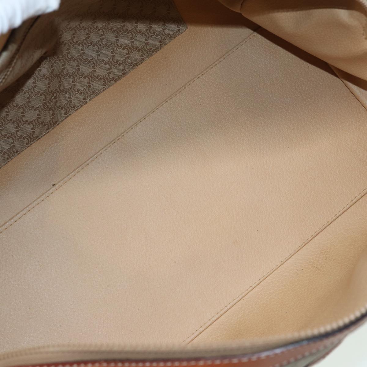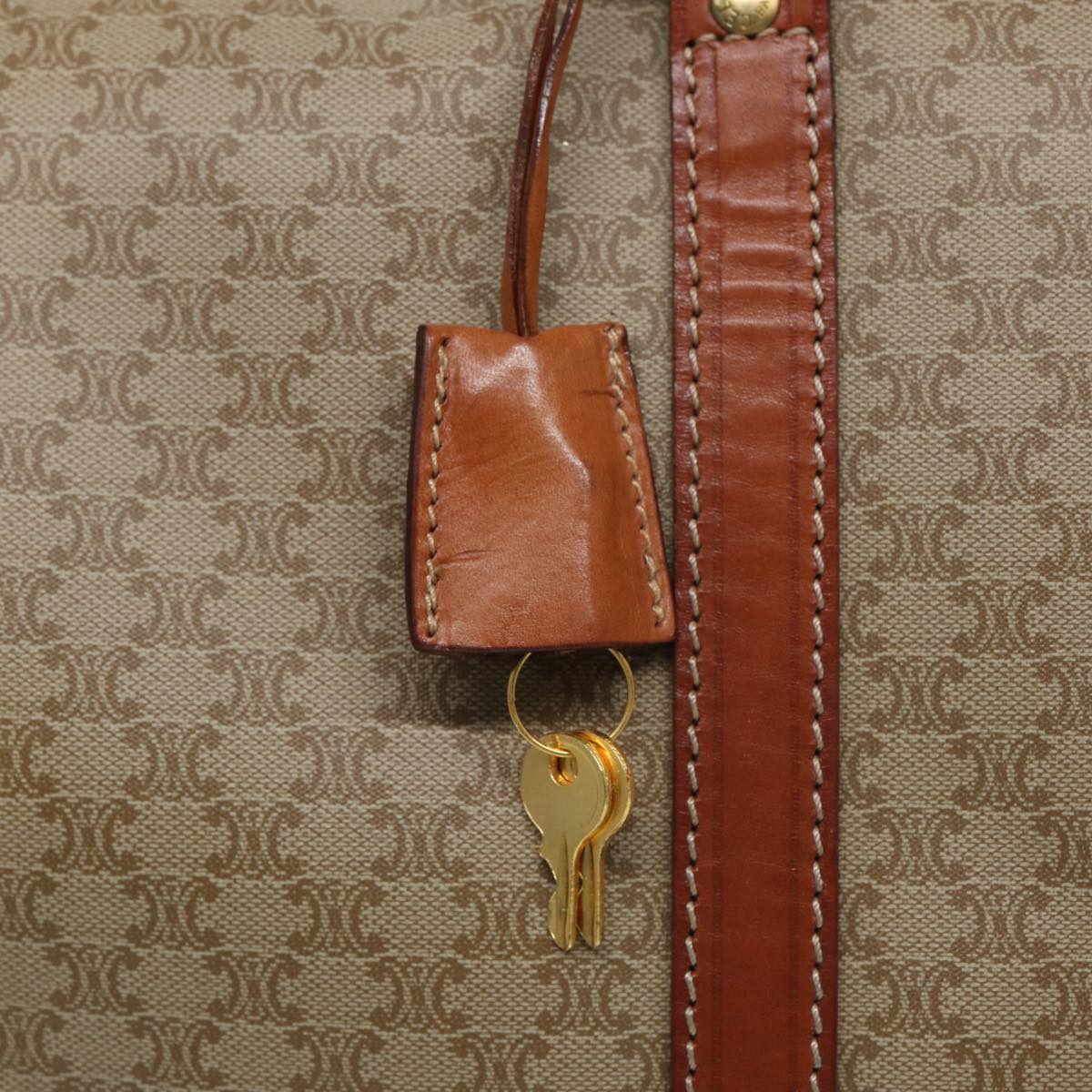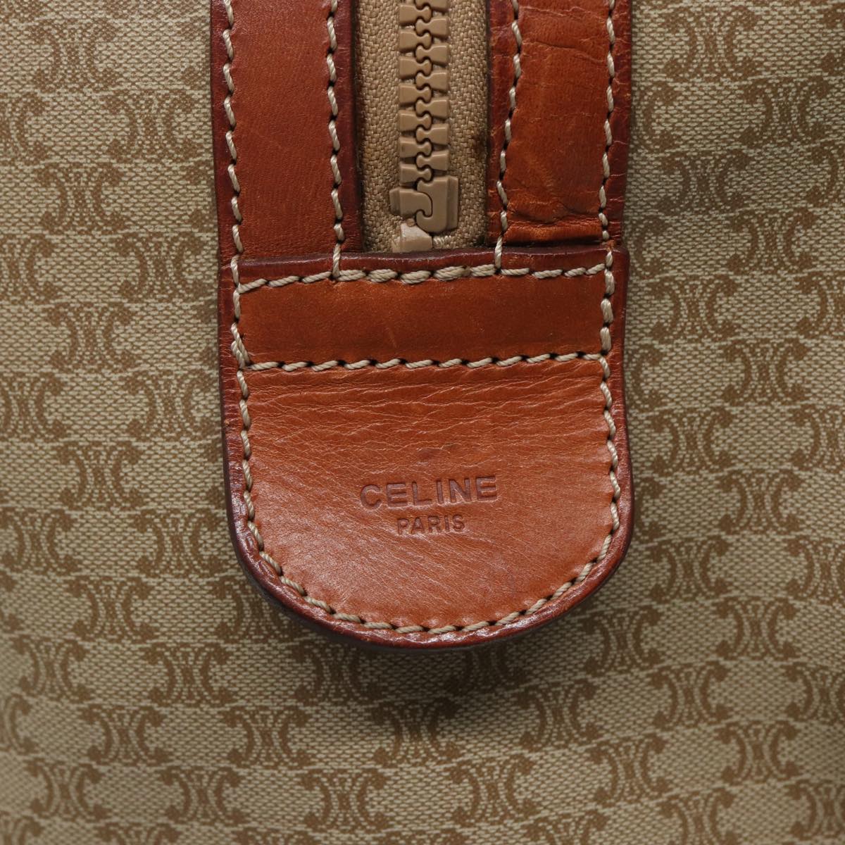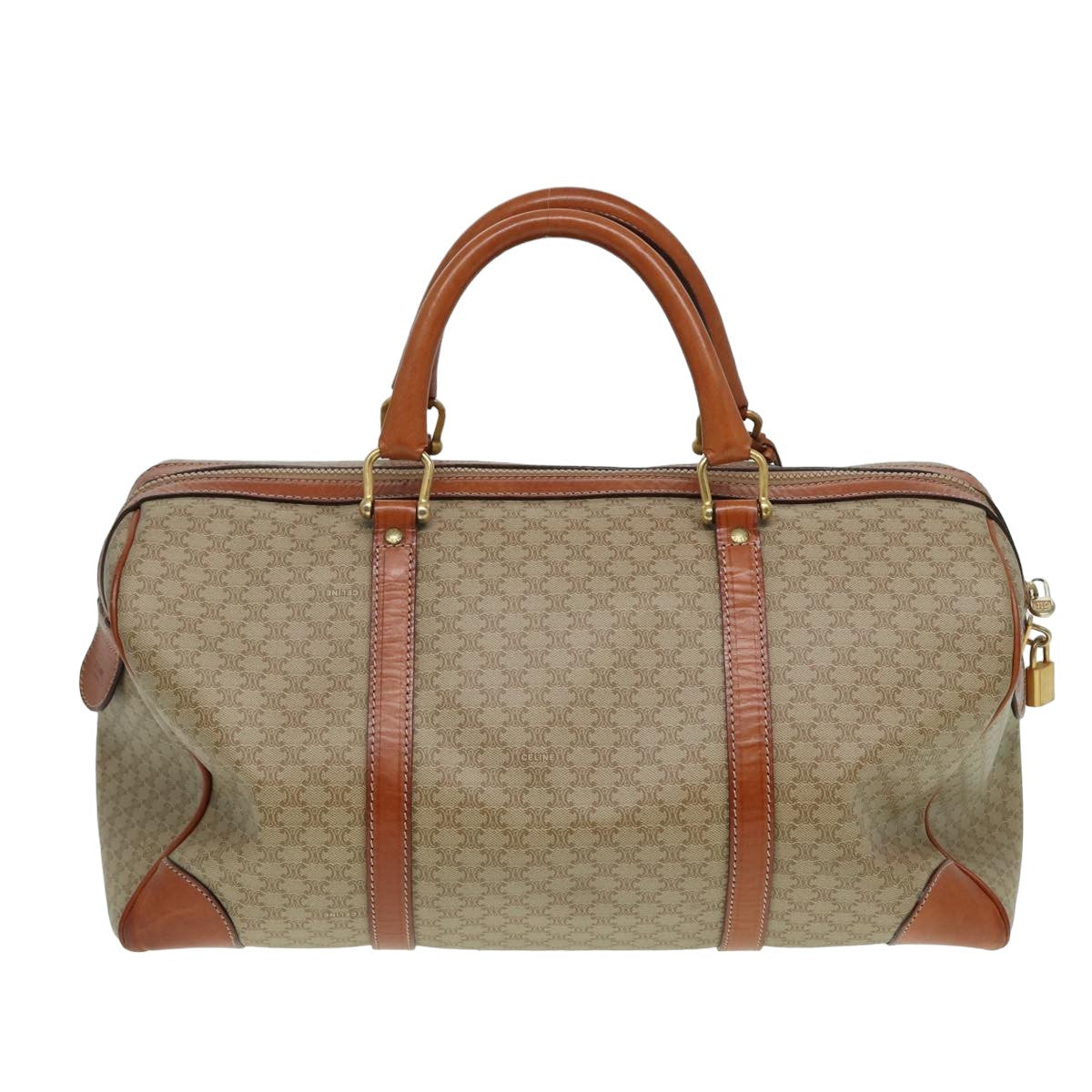 CELINE Macadam Canvas Boston Bag PVC Leather Beige Auth 80957