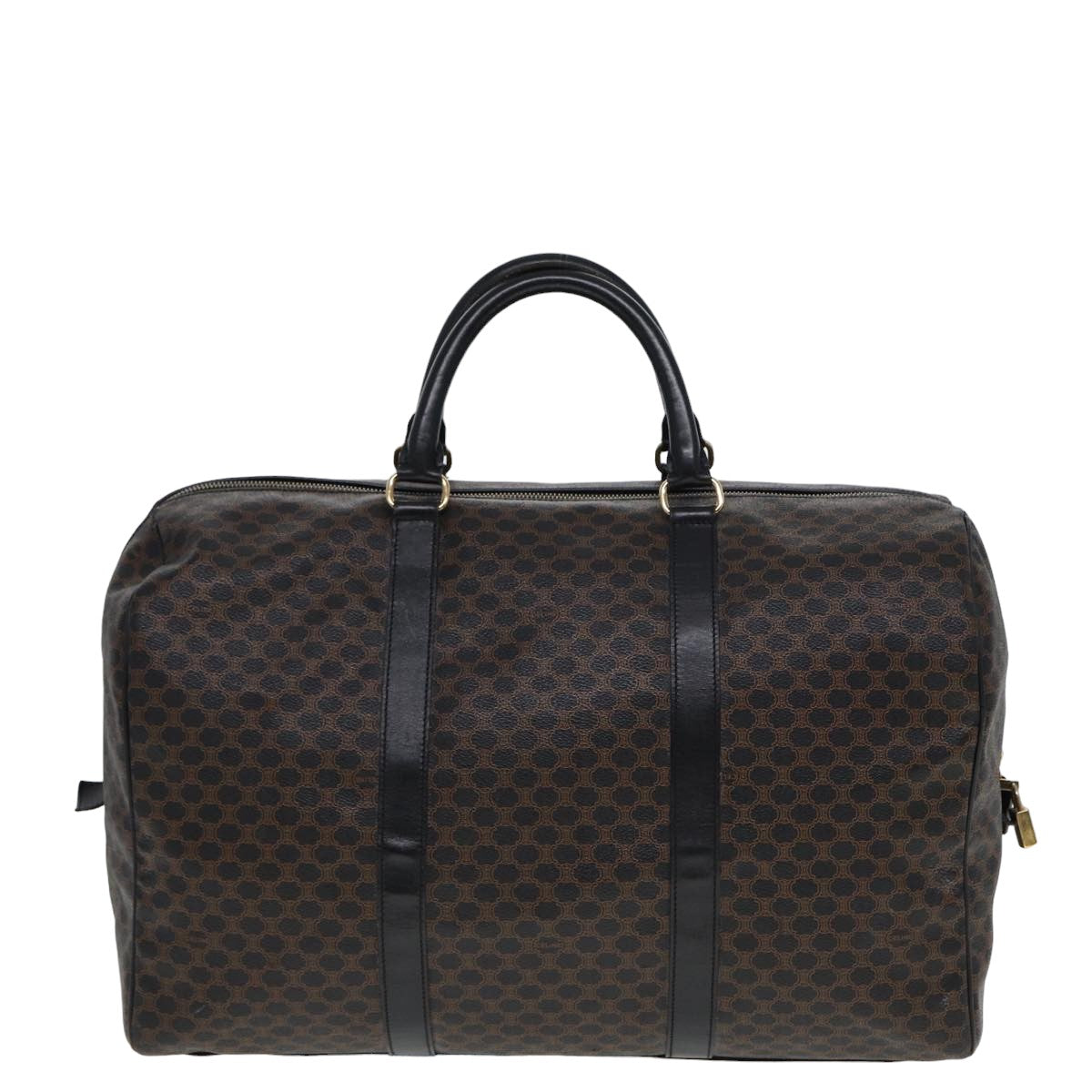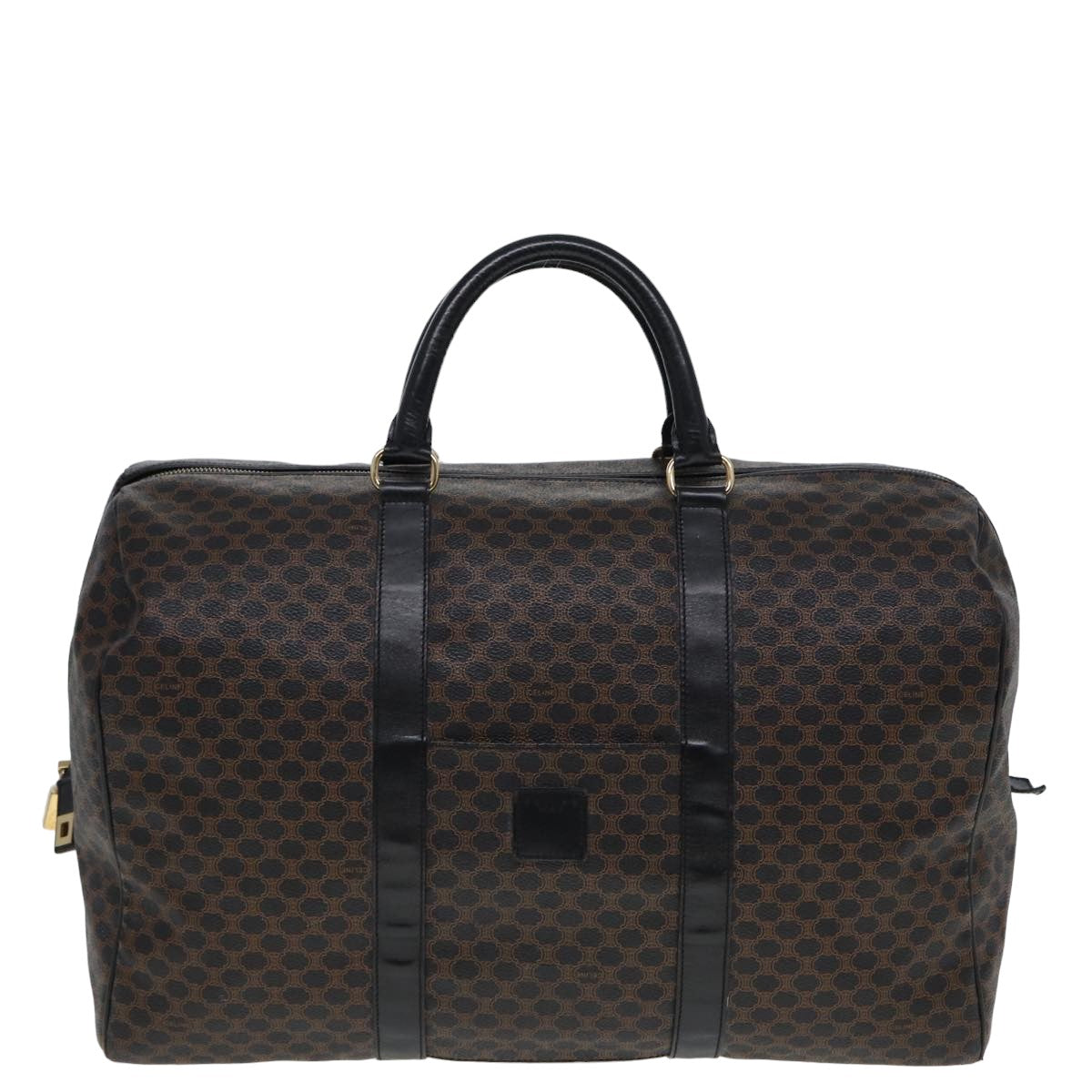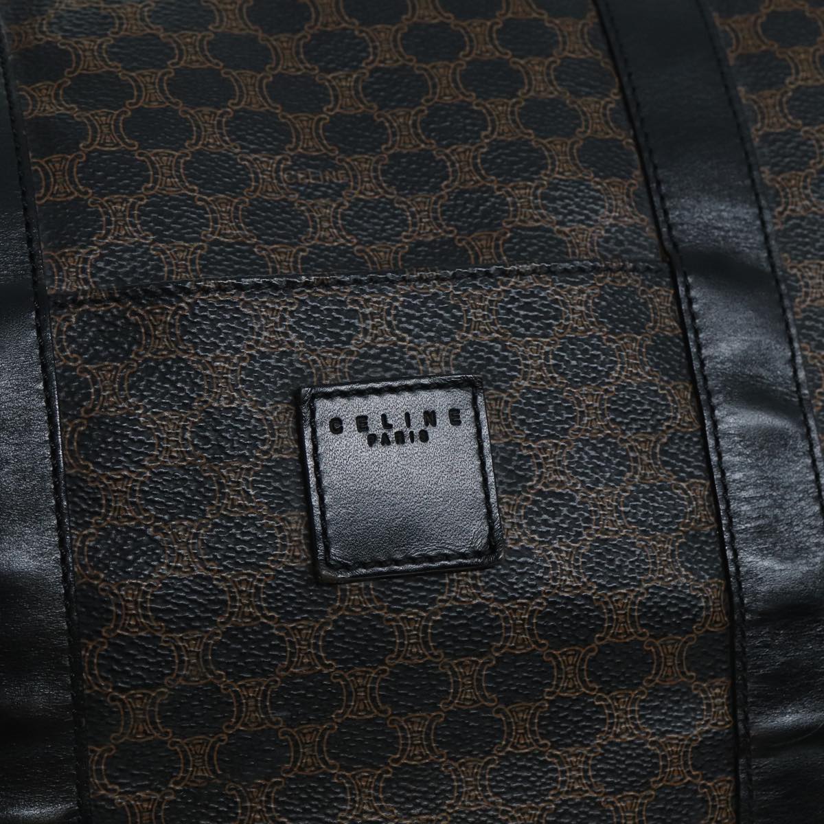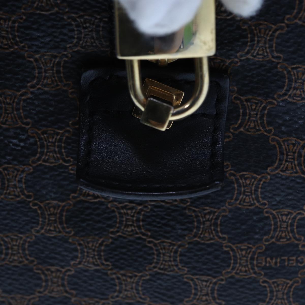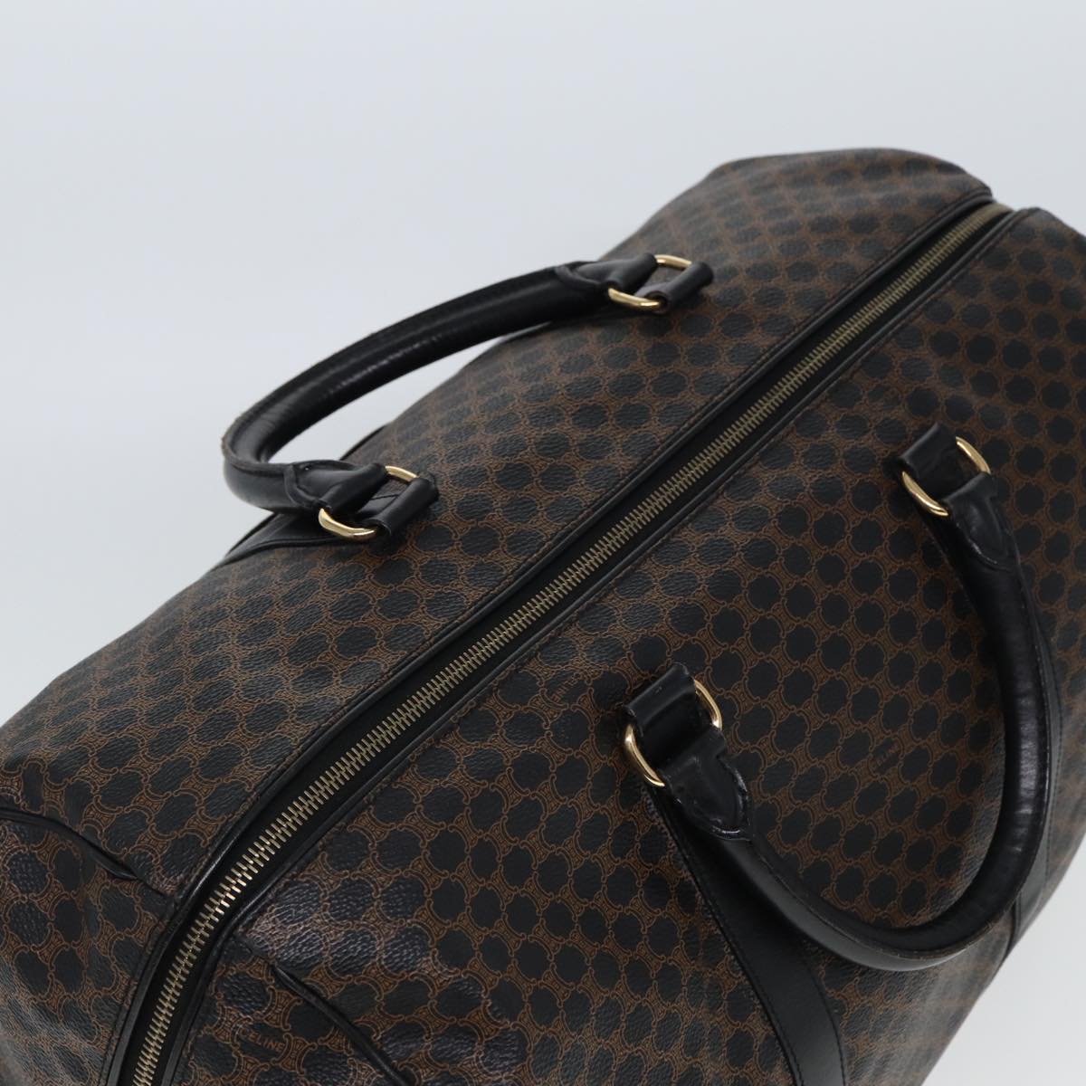 CELINE Macadam Canvas Boston Bag PVC Leather Black Brown Auth yk13042