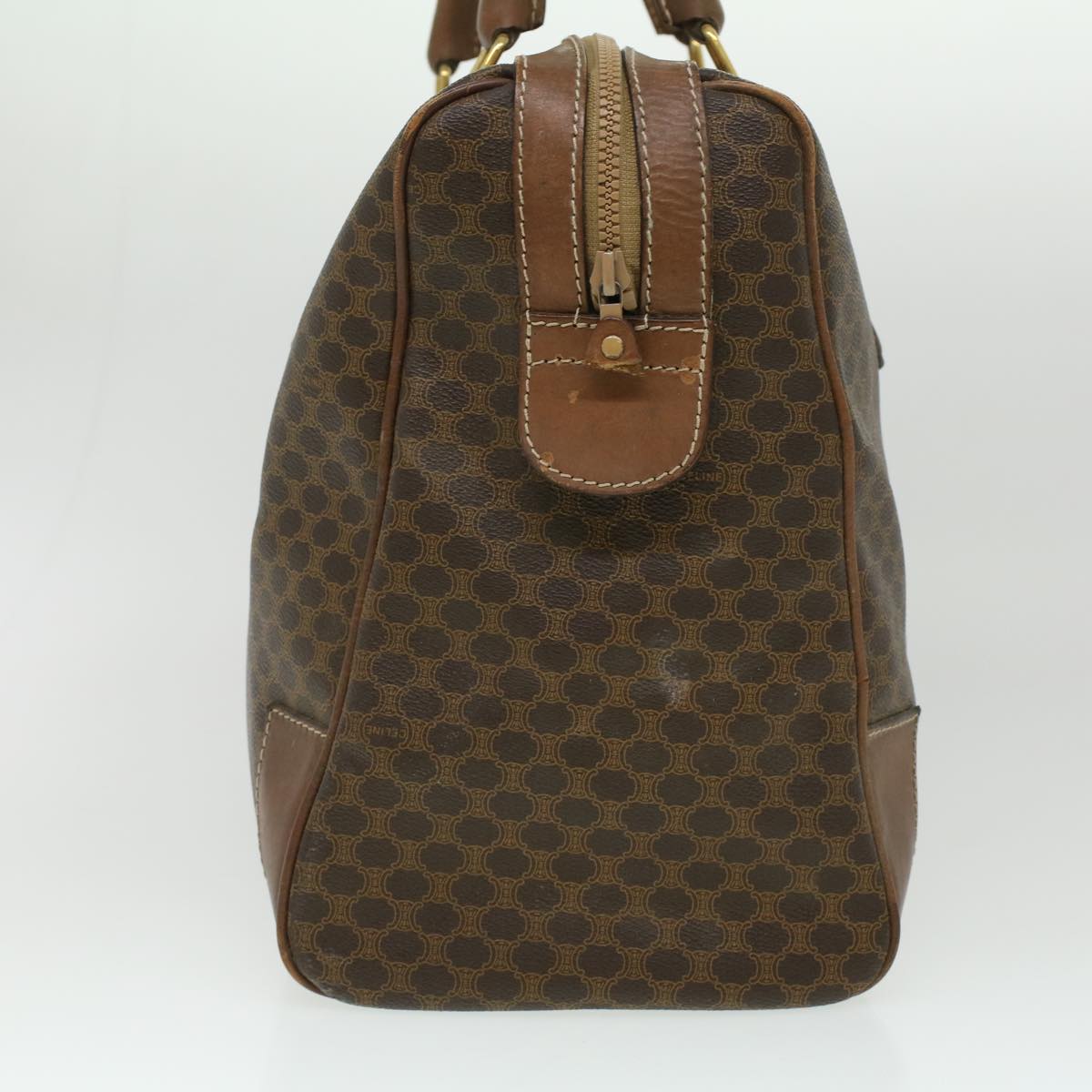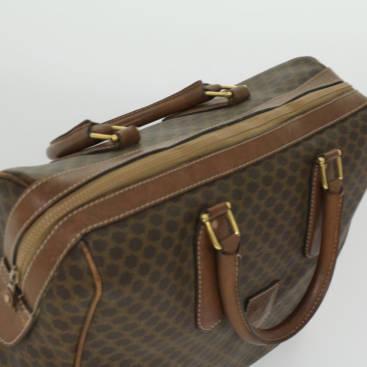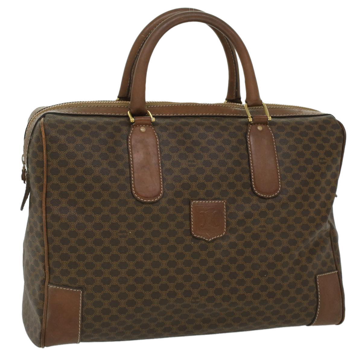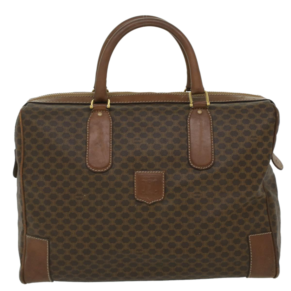 Celine Macadam Canvas Boston Bag PVC Leather Brown 36617