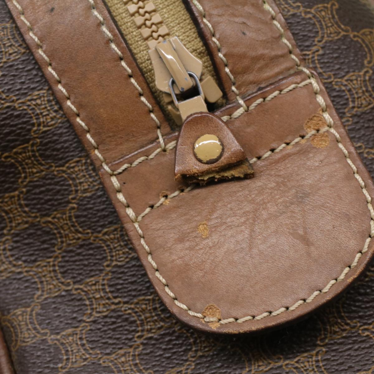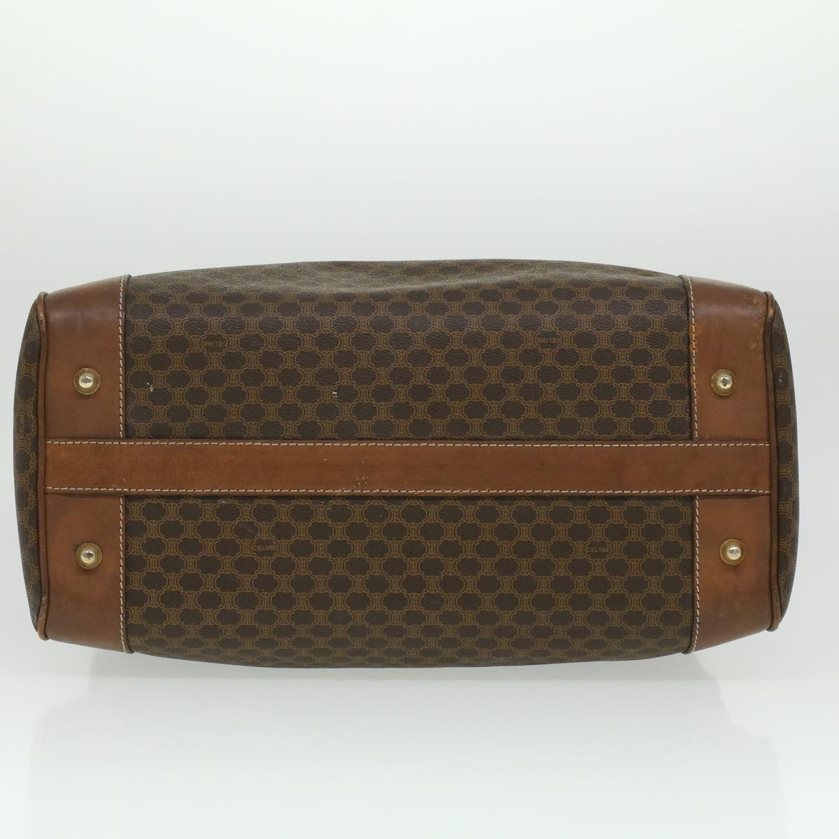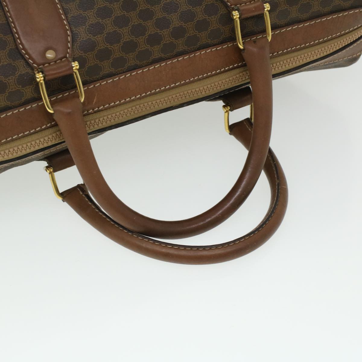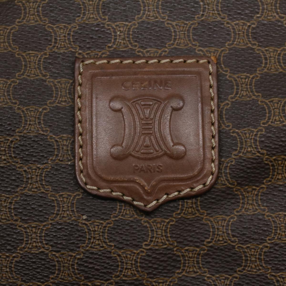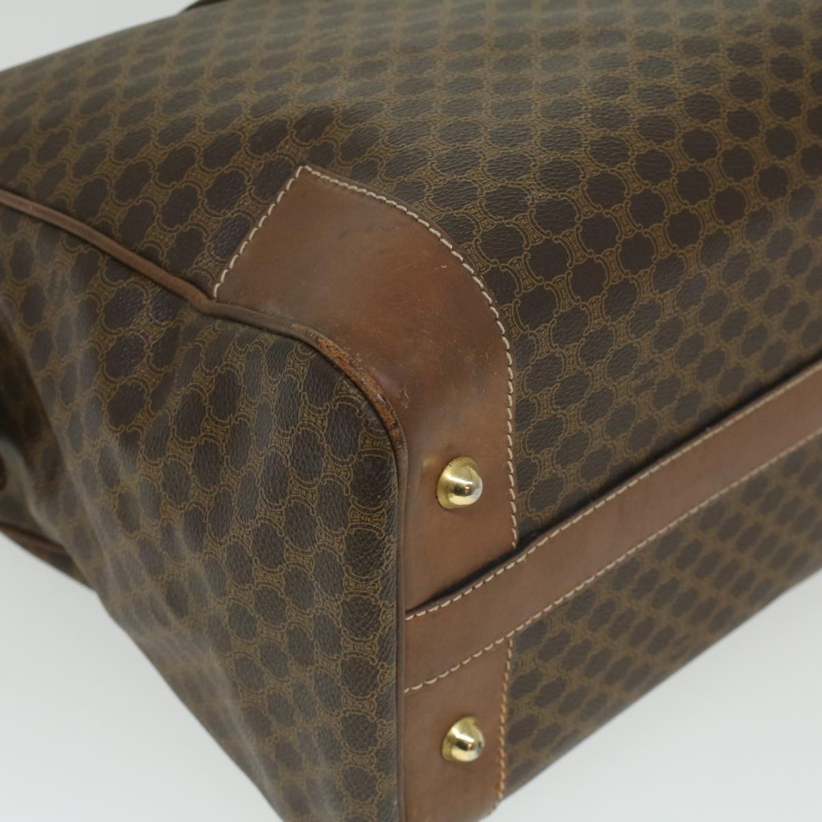 Celine Macadam Canvas Boston Bag PVC Leather Brown 36617