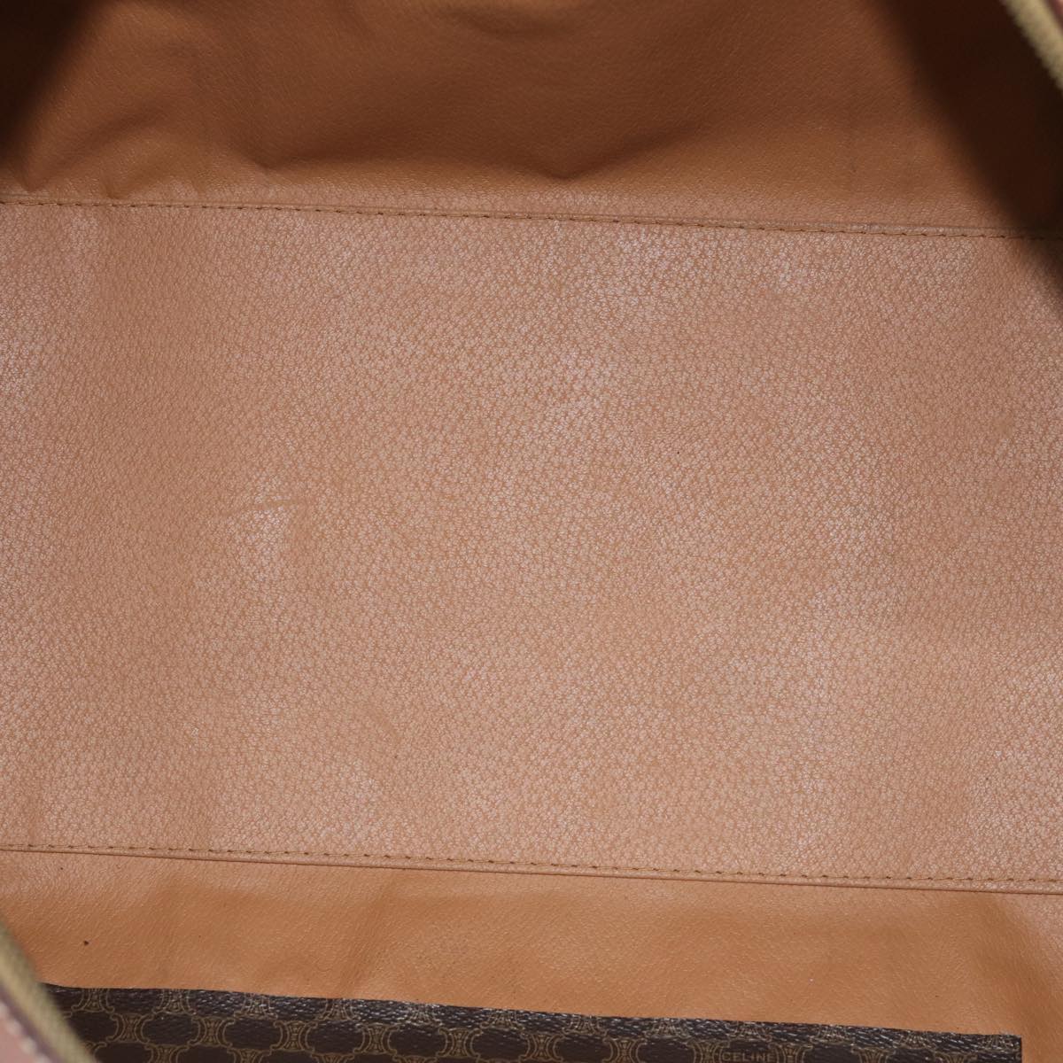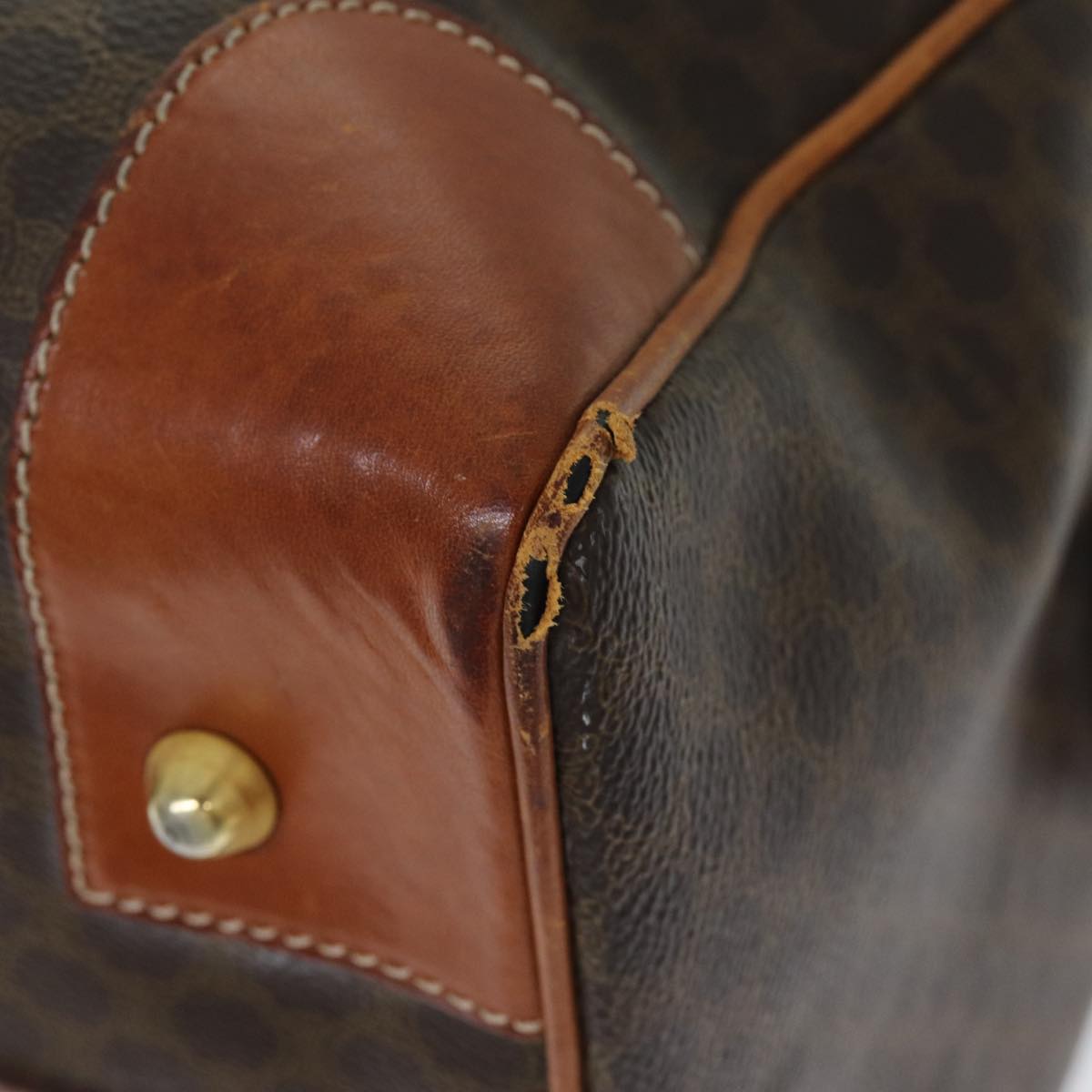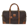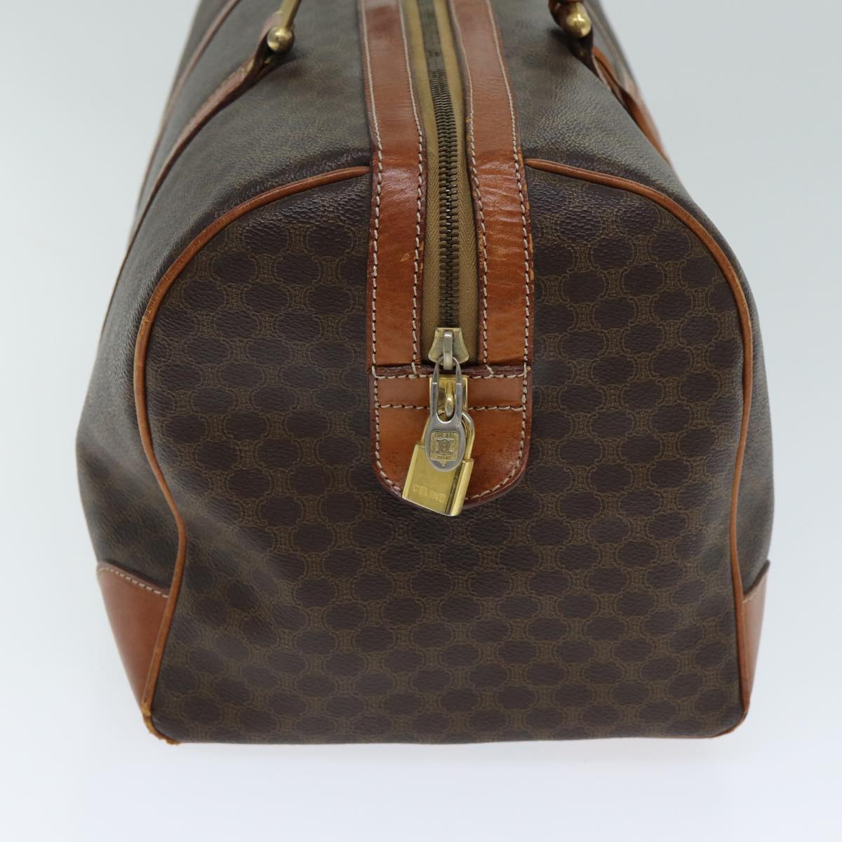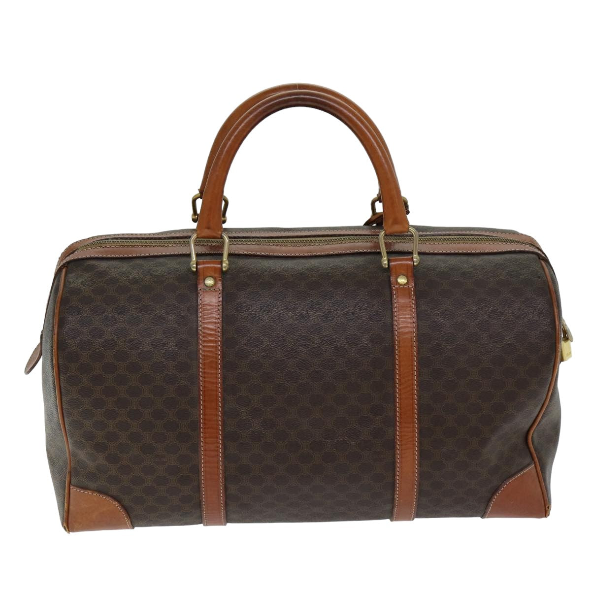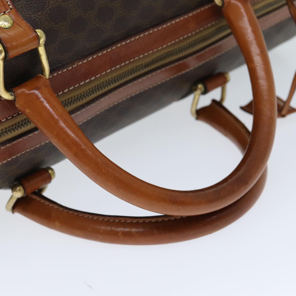 CELINE Macadam Canvas Boston Bag PVC Leather Brown Auth 79188