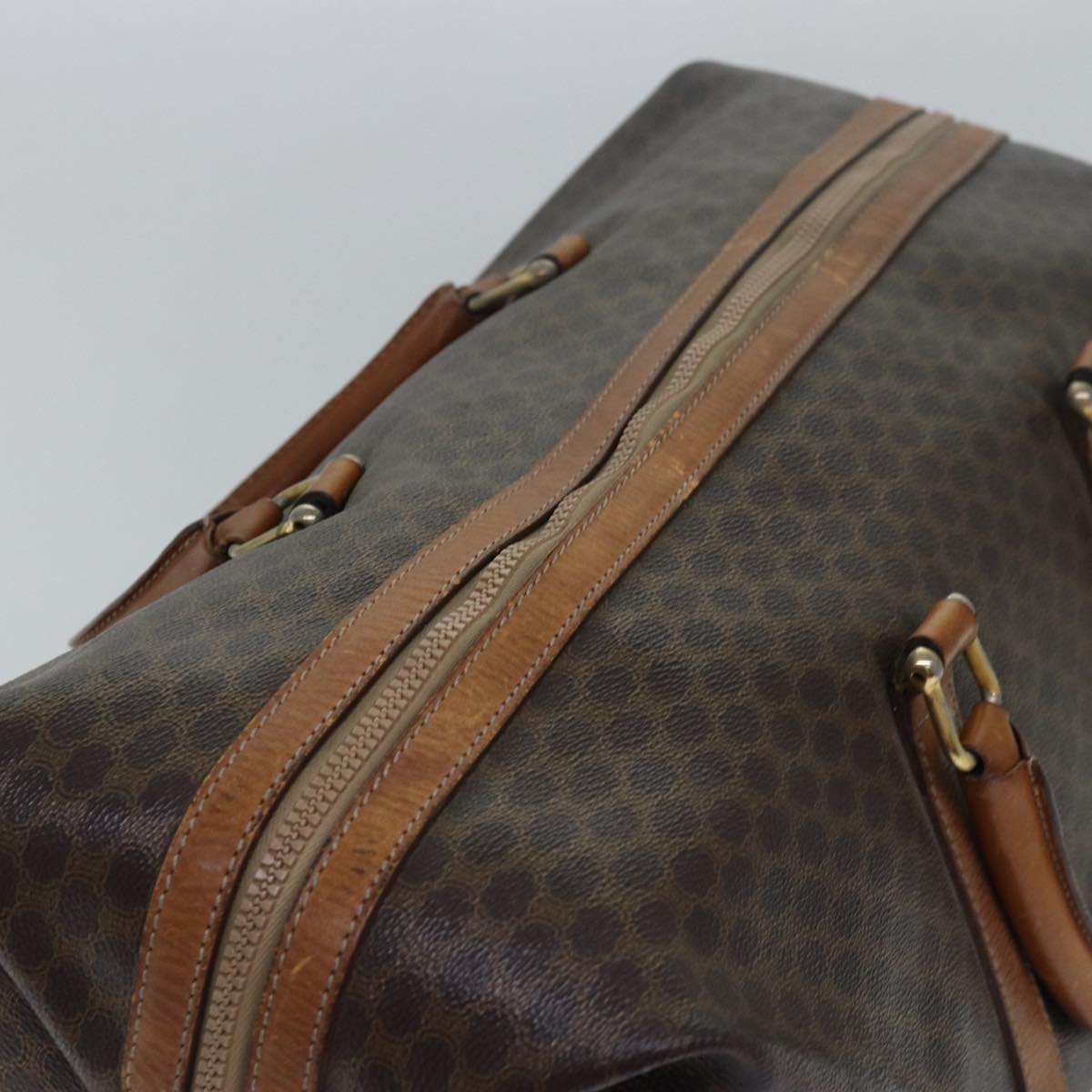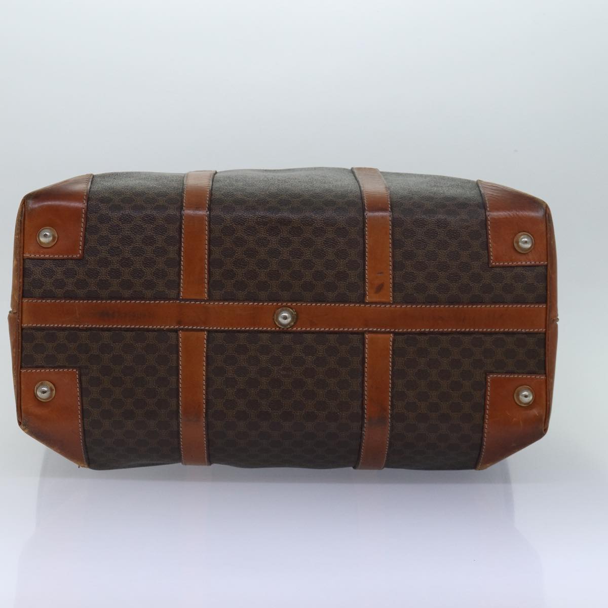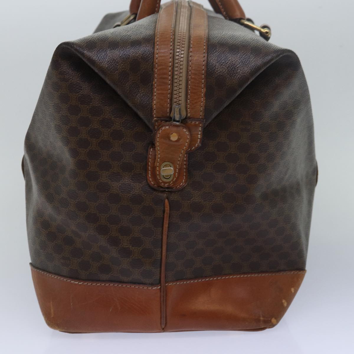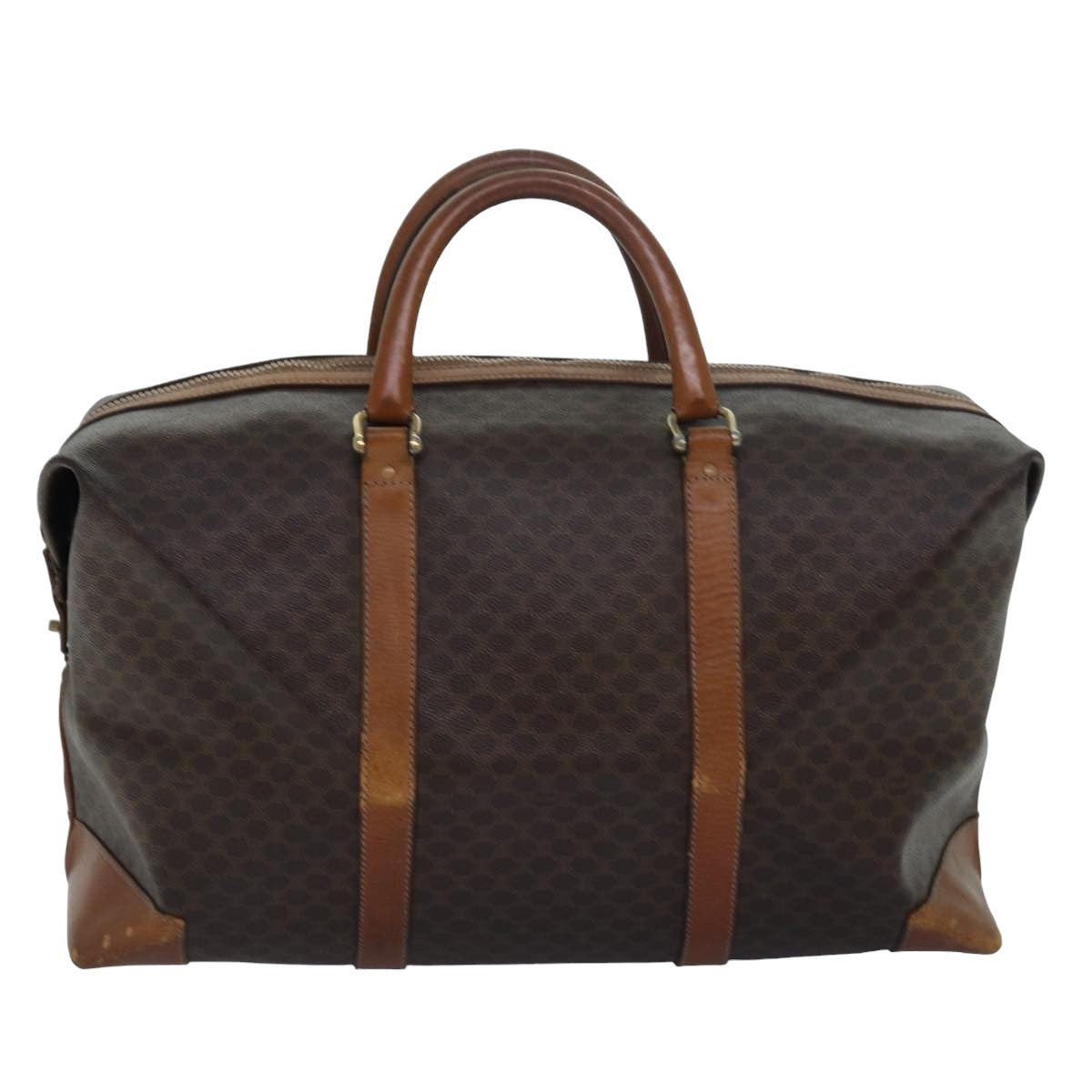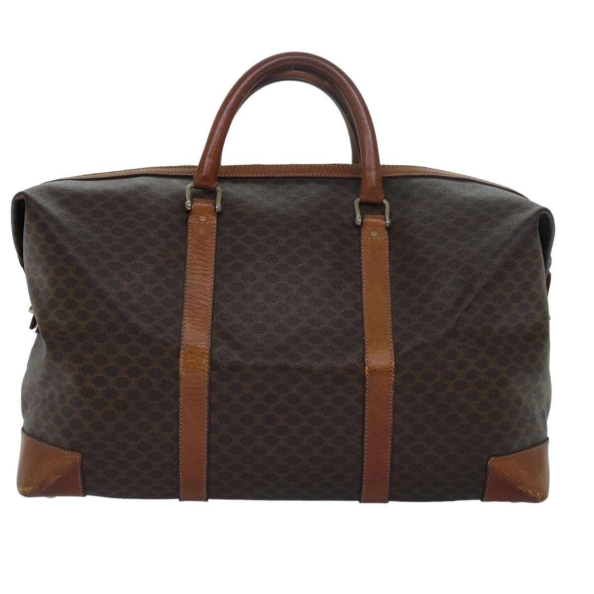 CELINE Macadam Canvas Boston Bag PVC Leather Brown Auth 79438