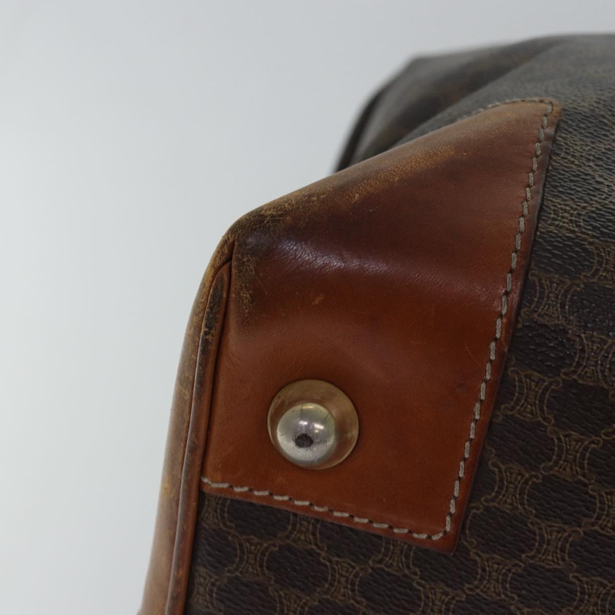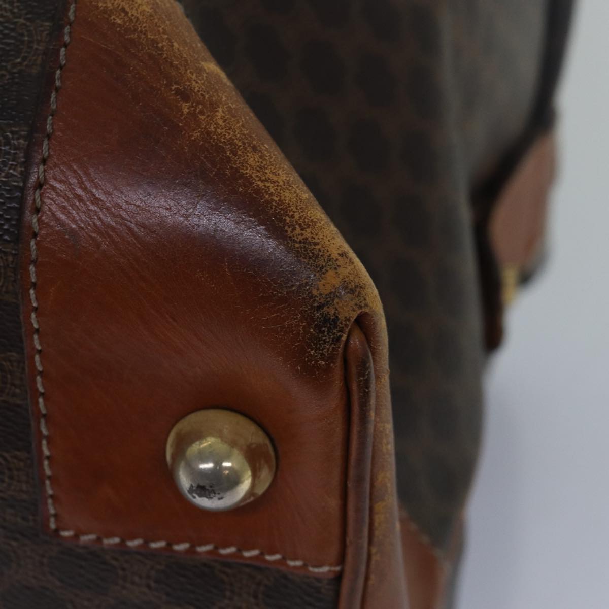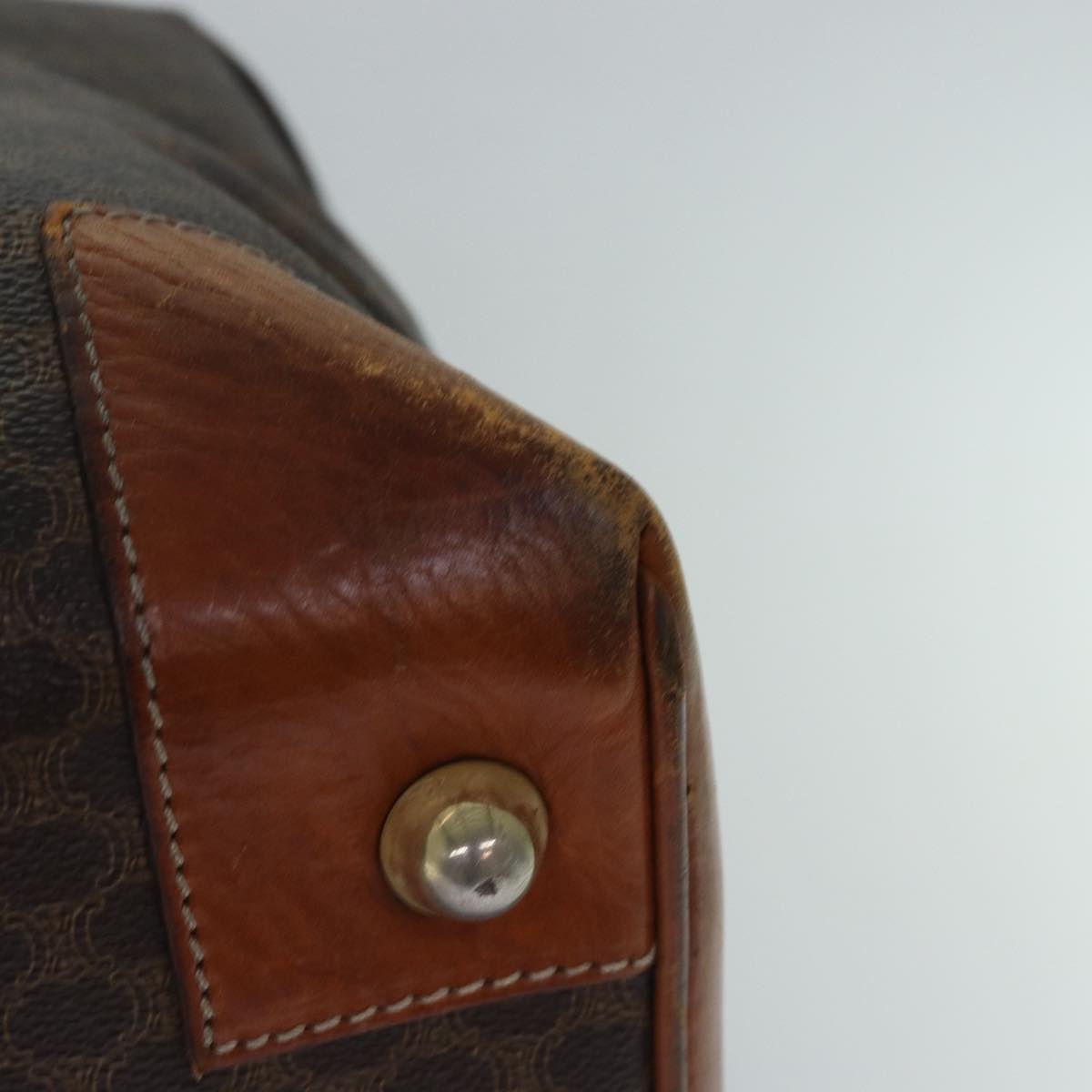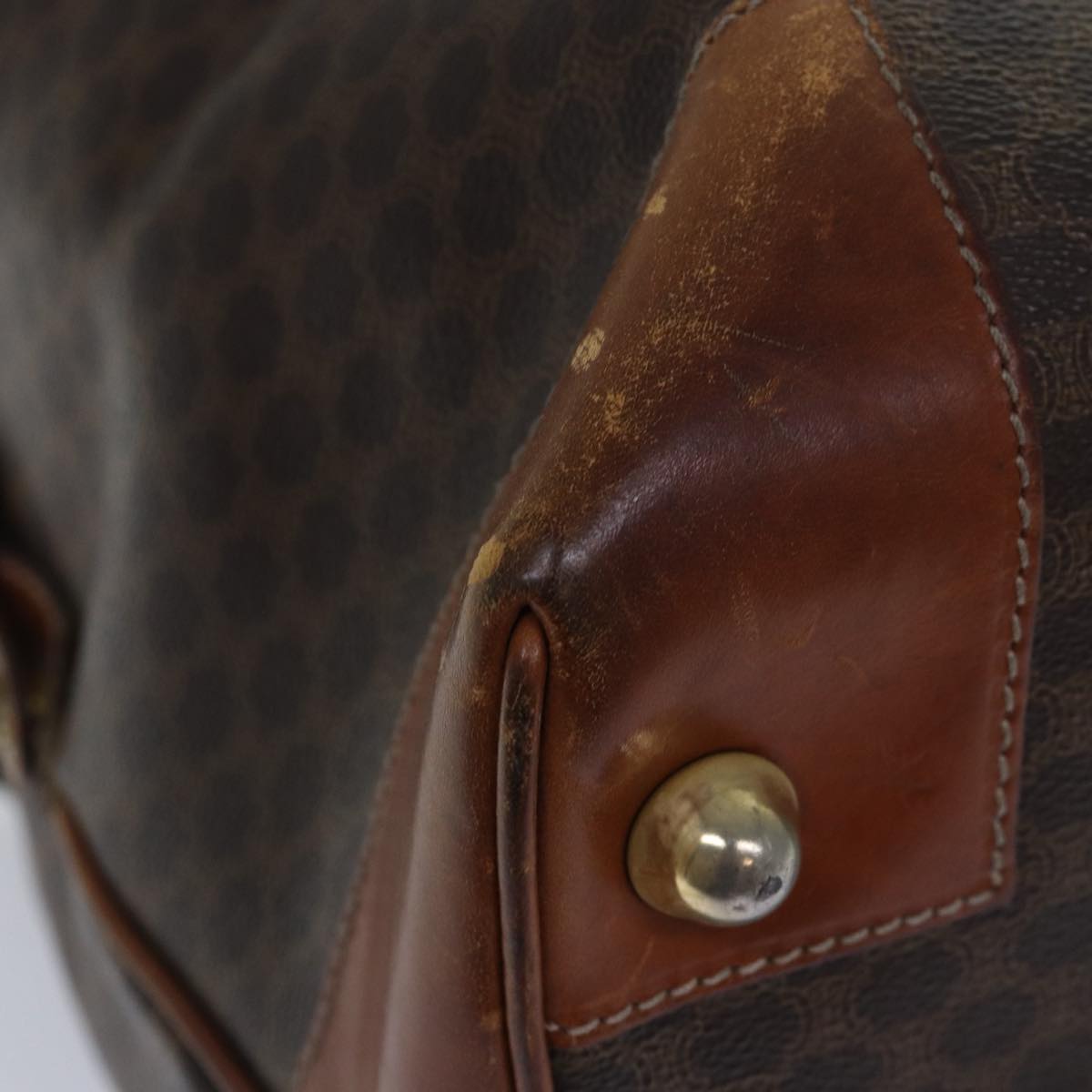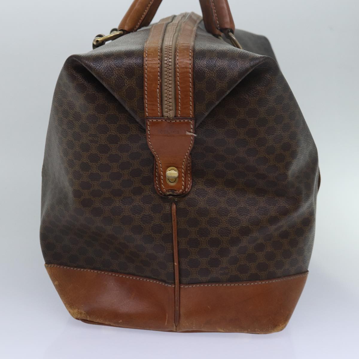 CELINE Macadam Canvas Boston Bag PVC Leather Brown Auth 79438