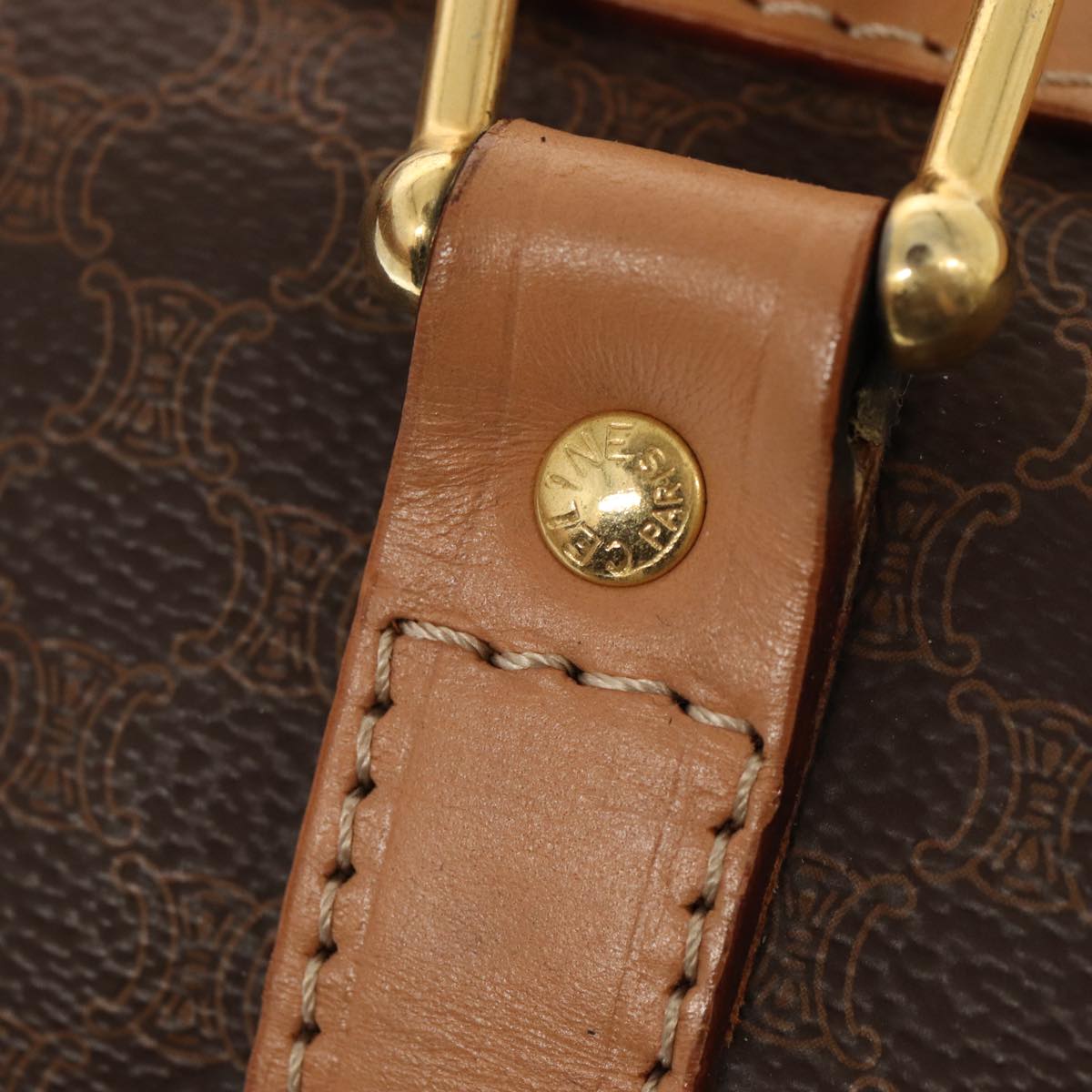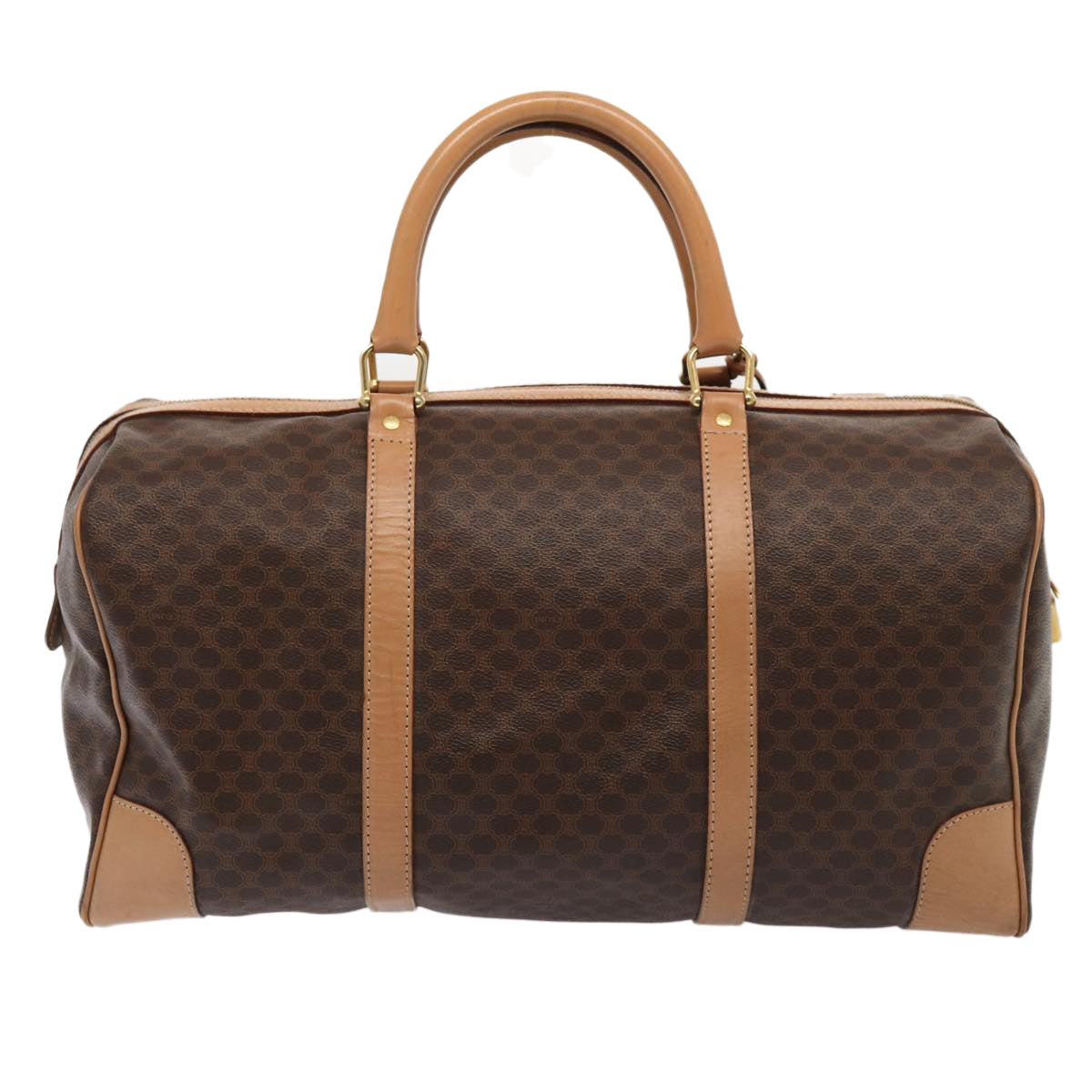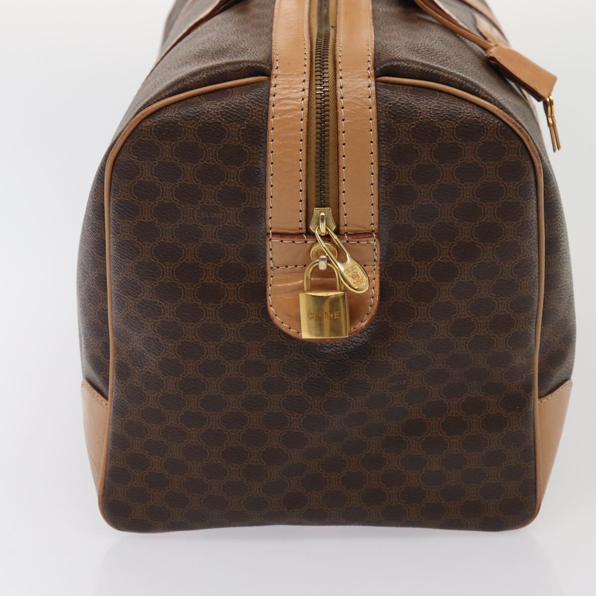CELINE Macadam Canvas Boston Bag PVC Leather Brown Auth 79681