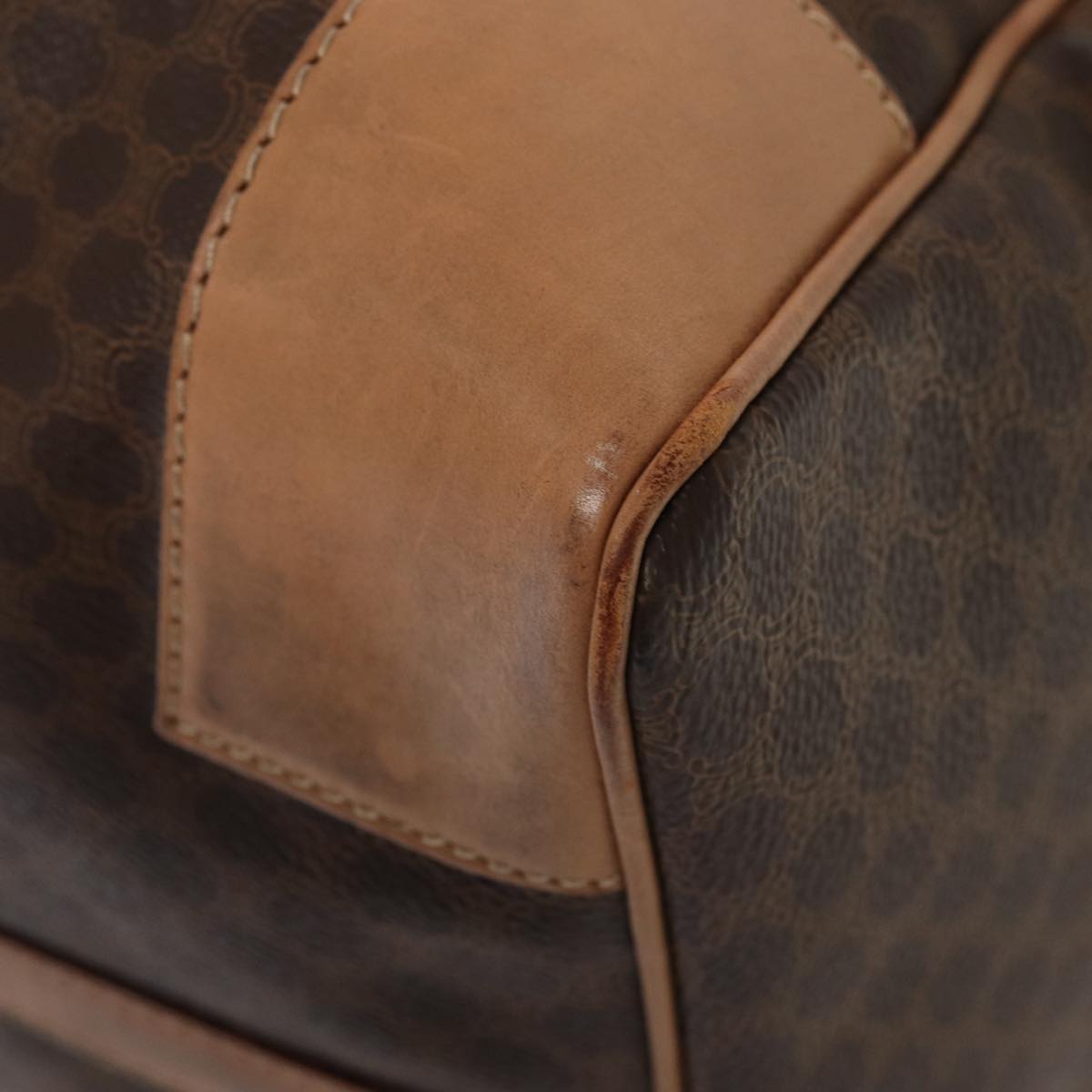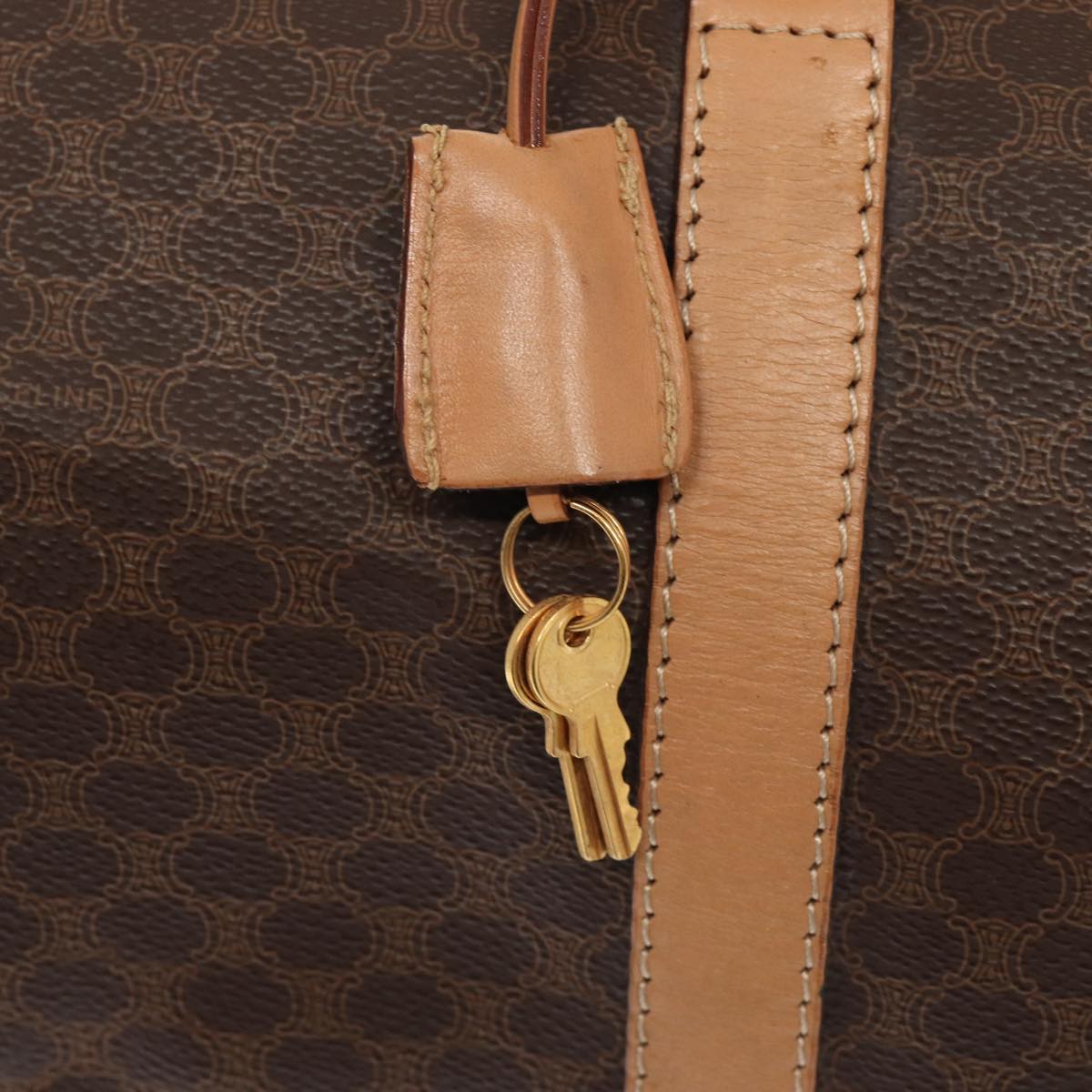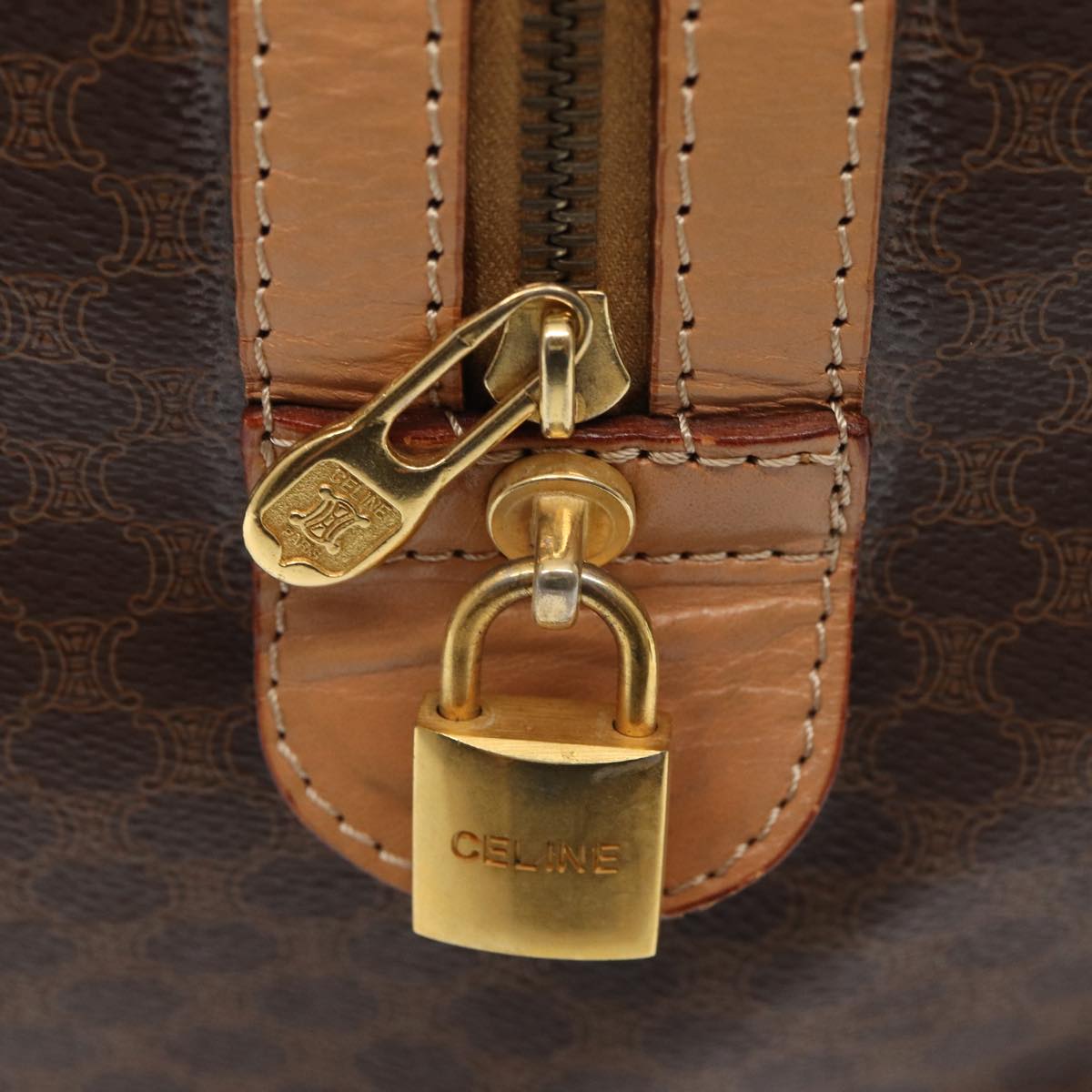 CELINE Macadam Canvas Boston Bag PVC Leather Brown Auth 79681