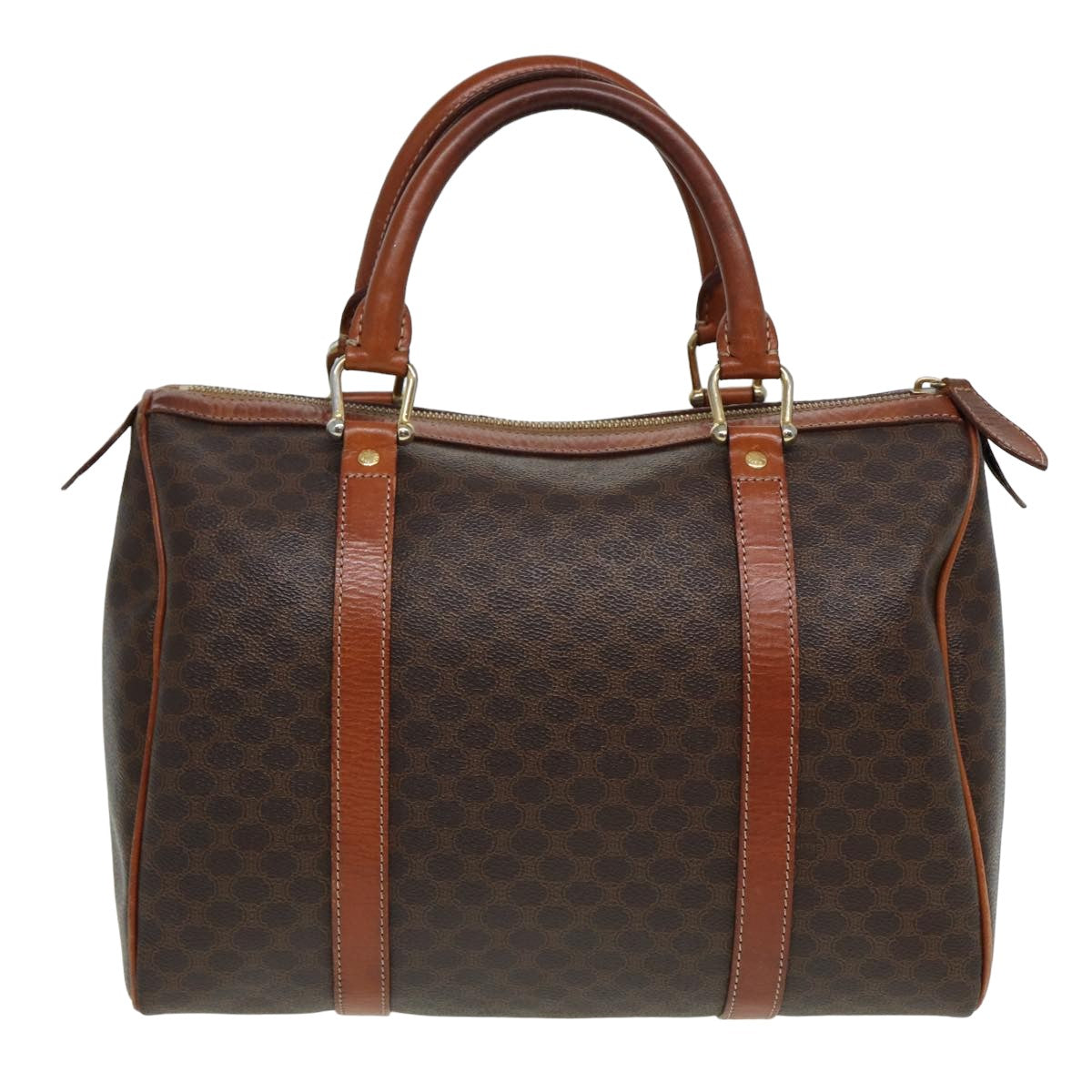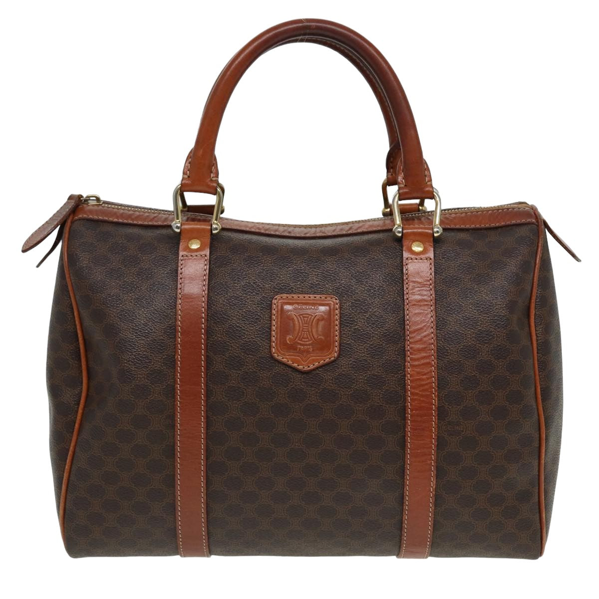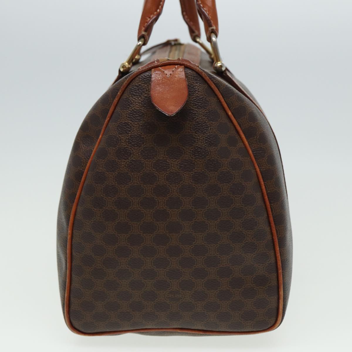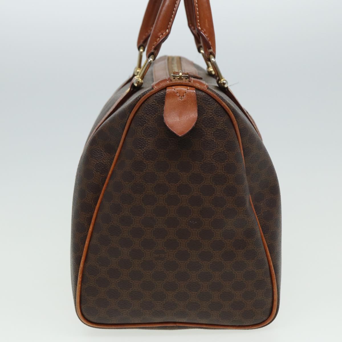 CELINE Macadam Canvas Boston Bag PVC Leather Brown Auth 81440