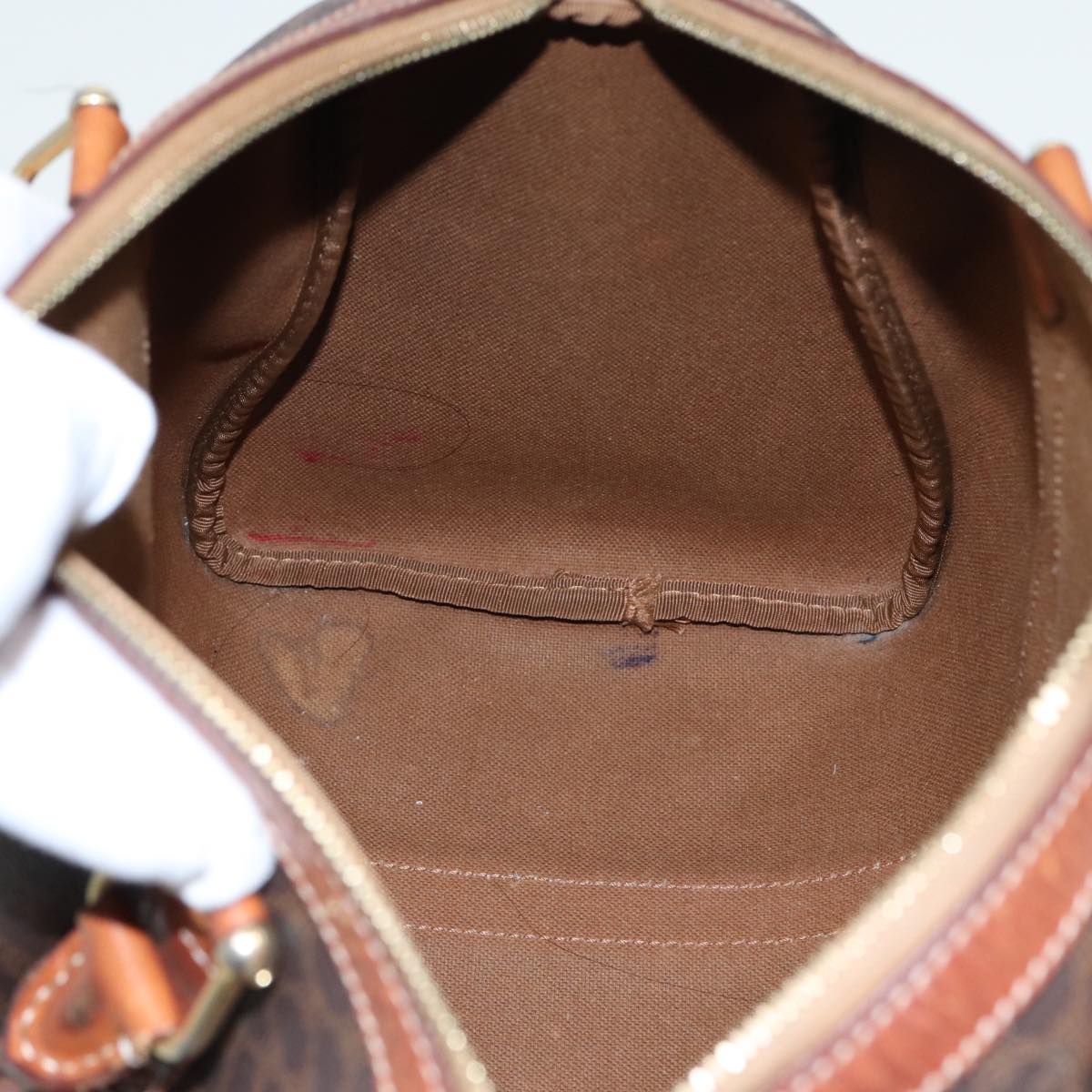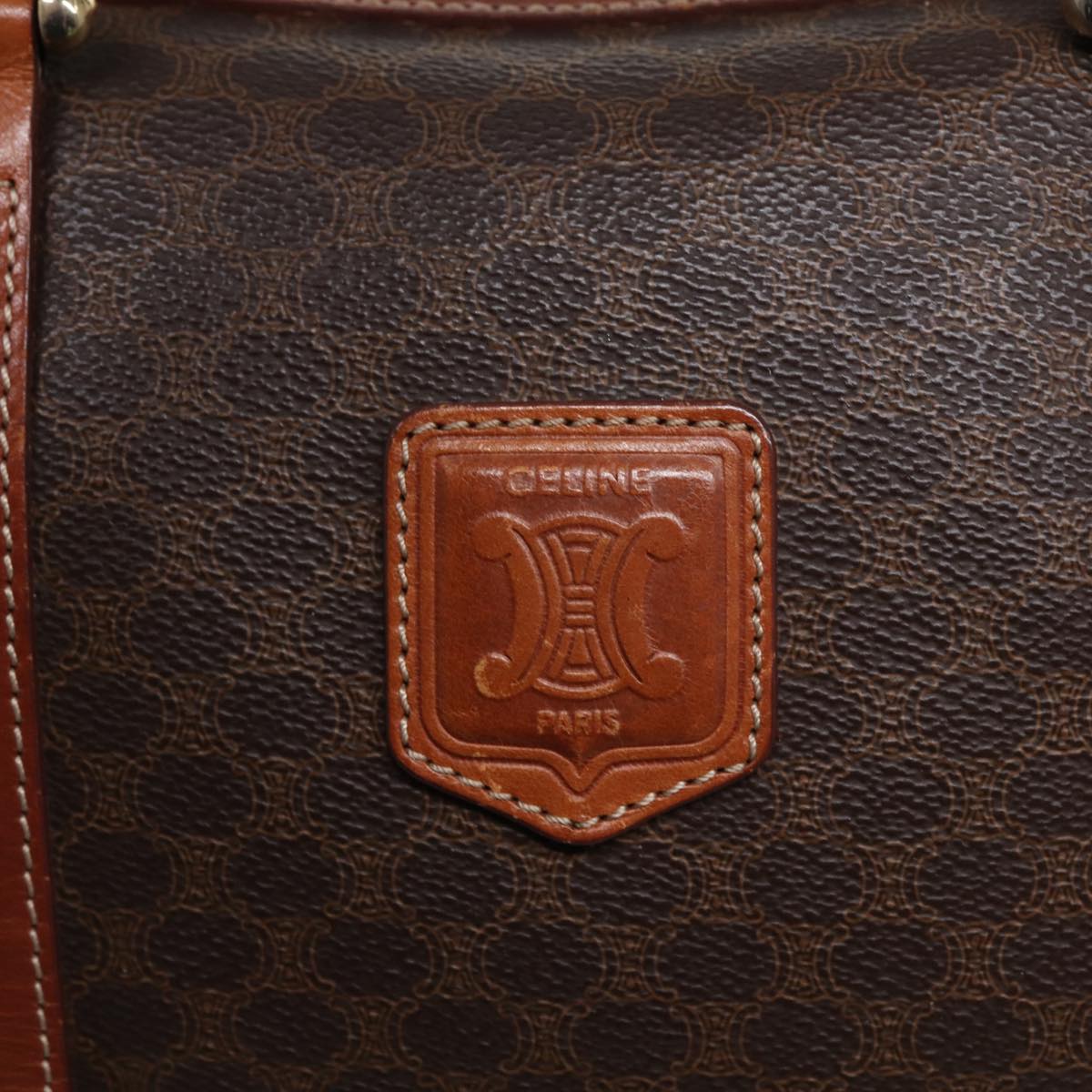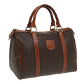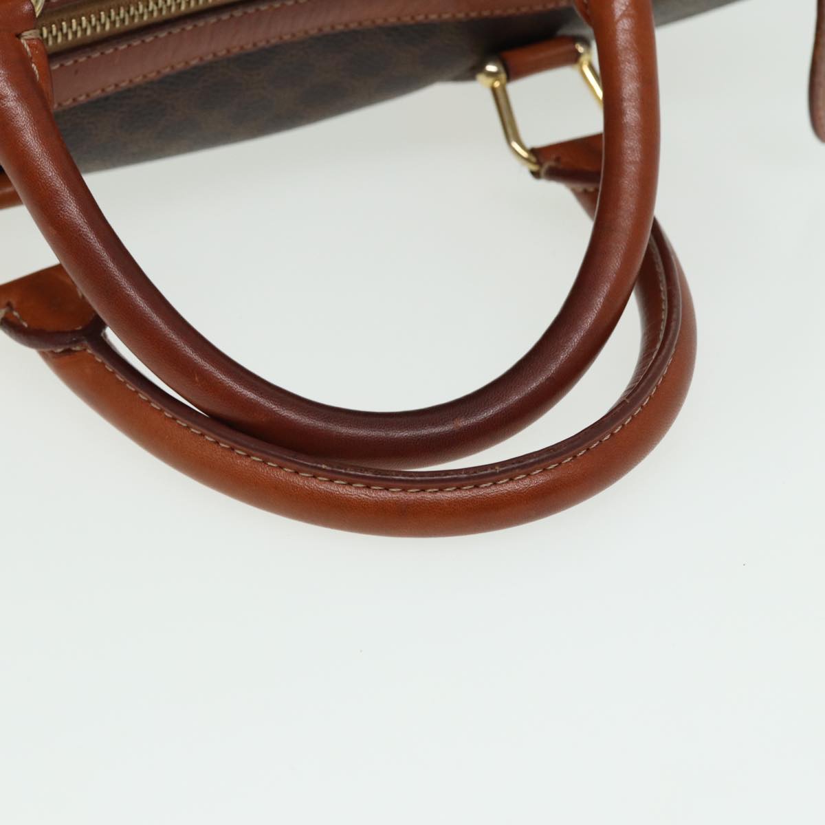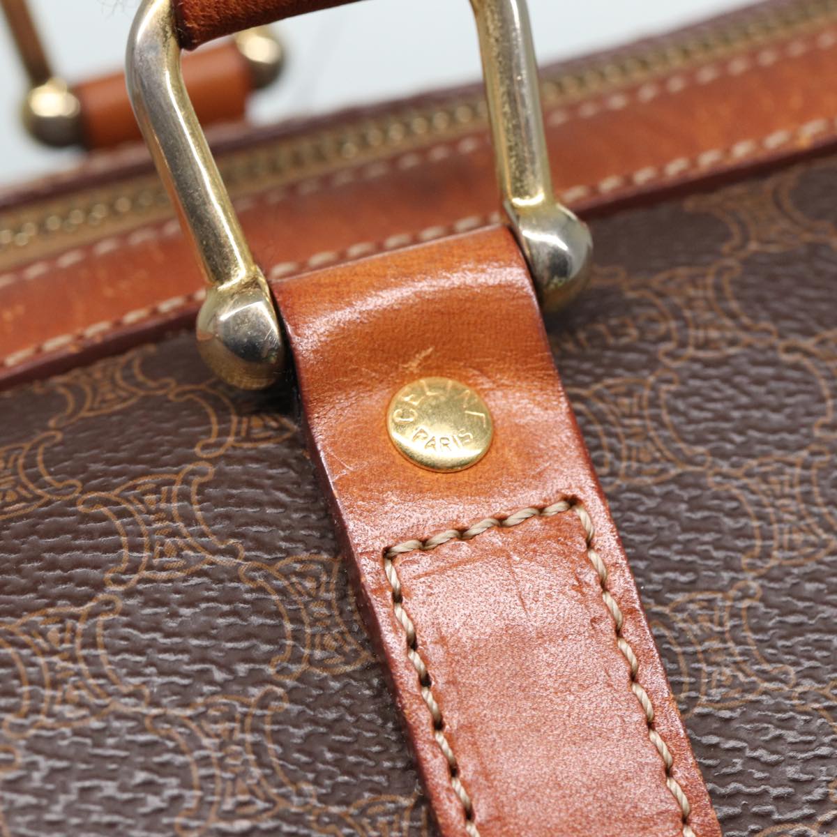 CELINE Macadam Canvas Boston Bag PVC Leather Brown Auth 81440
