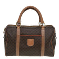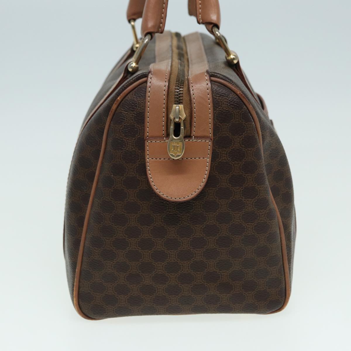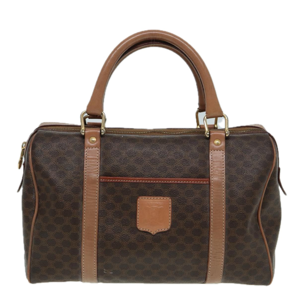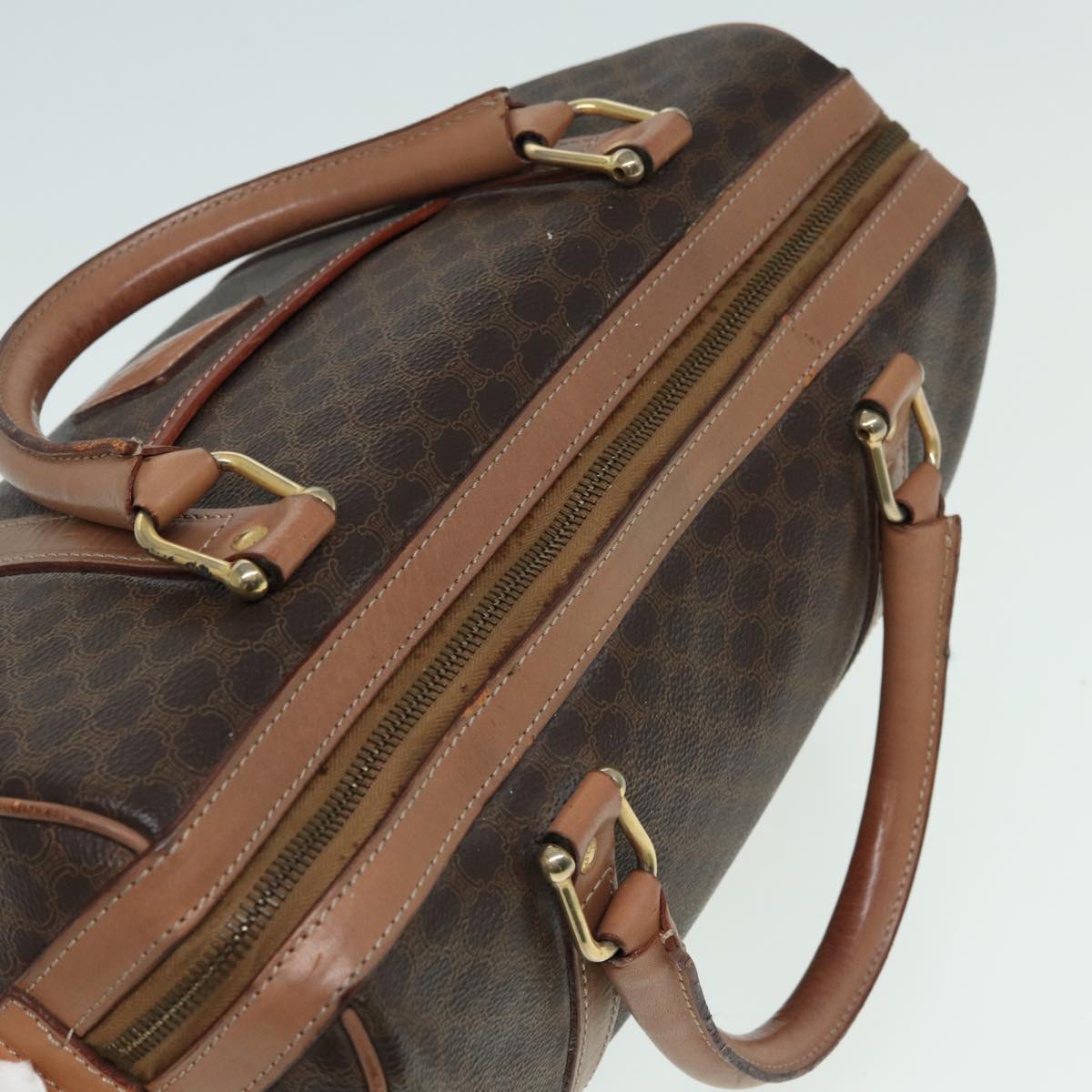CELINE Macadam Canvas Boston Bag PVC Leather Brown Auth 83343