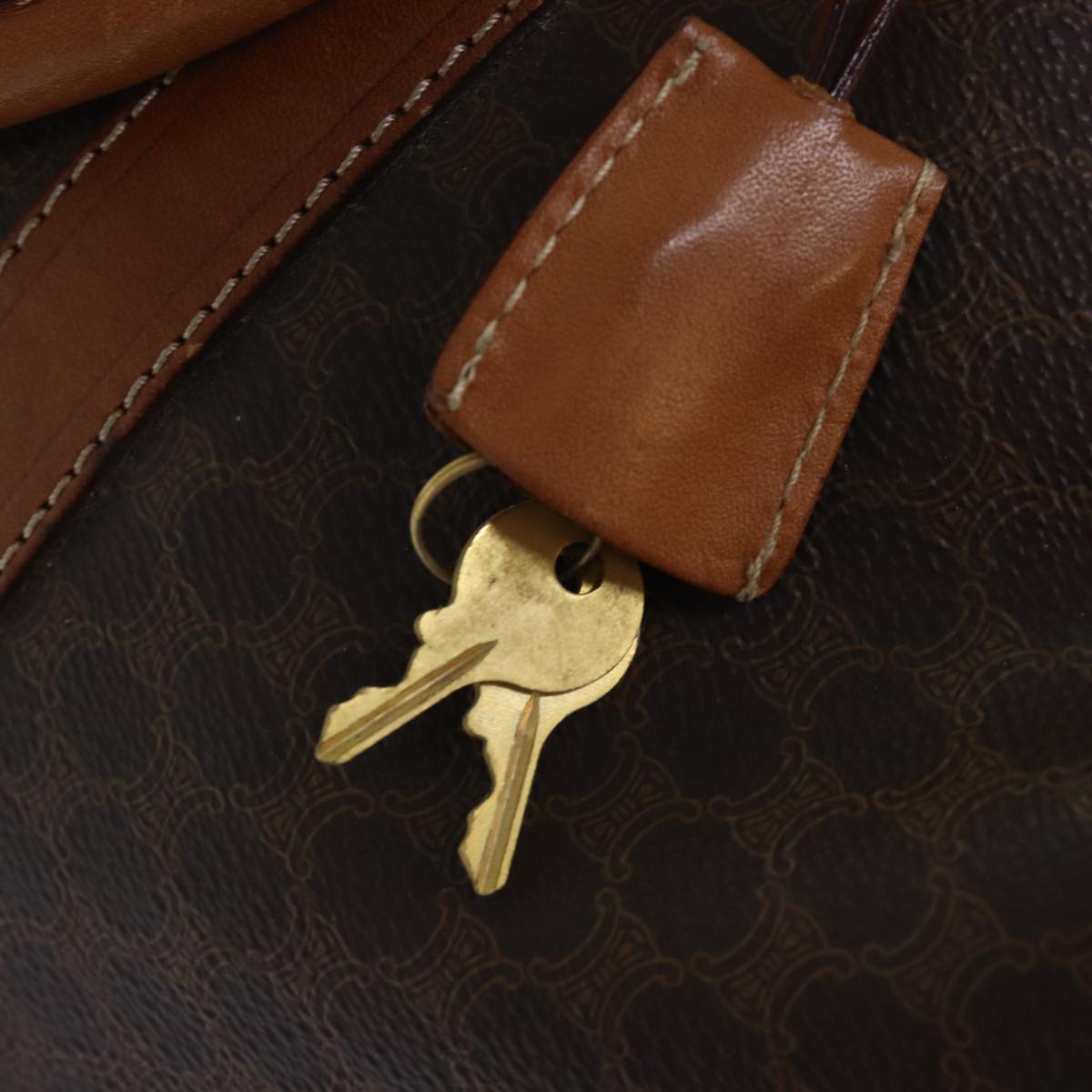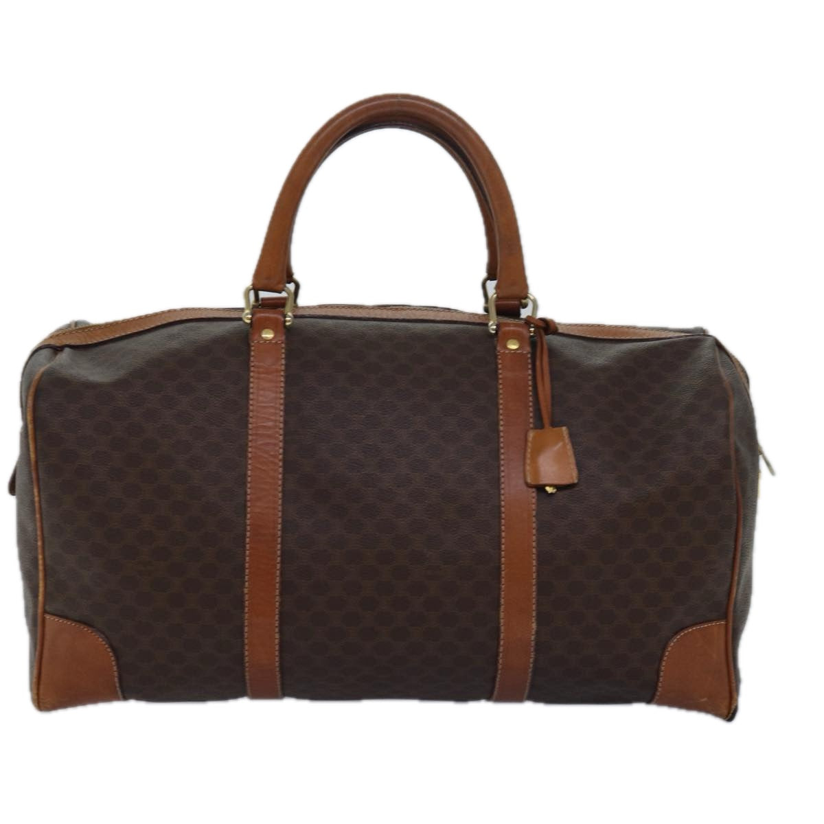 CELINE Macadam Canvas Boston Bag PVC Leather Brown Auth bs15633
