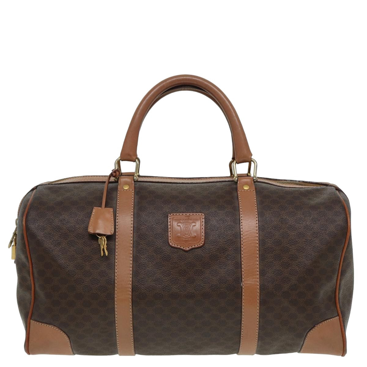 CELINE Macadam Canvas Boston Bag PVC Leather Brown Auth bs15893