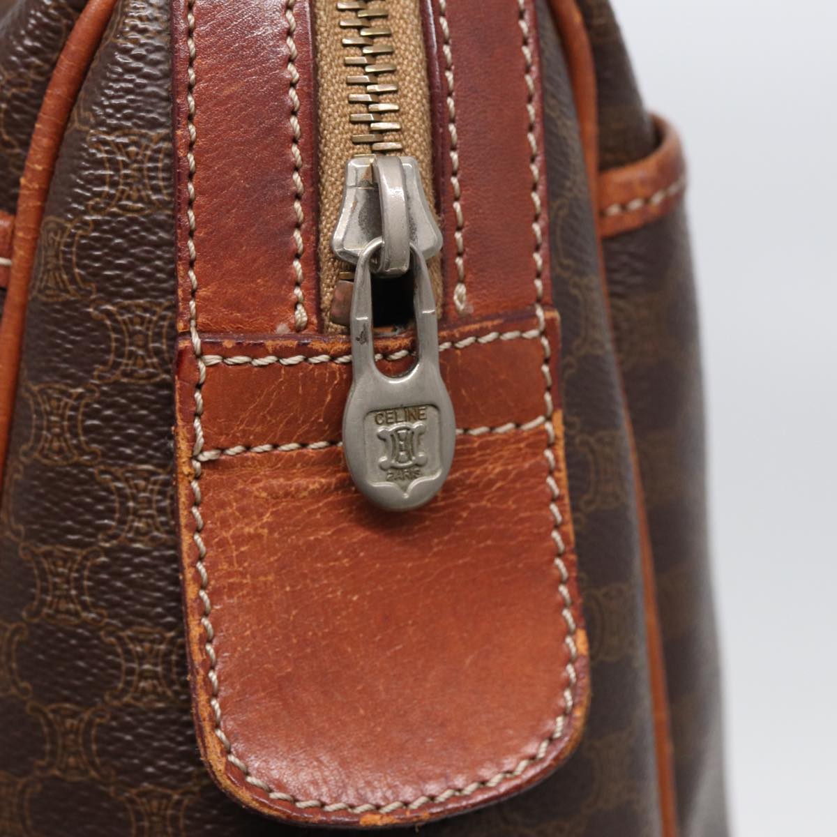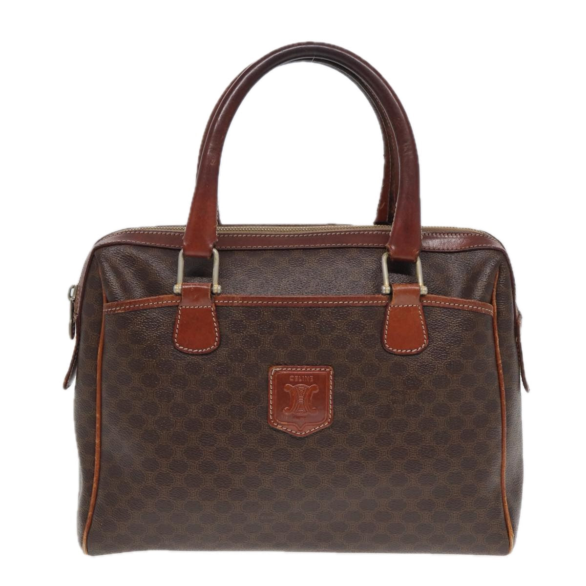 CELINE Macadam Canvas Boston Bag PVC Leather Brown Auth fm3647