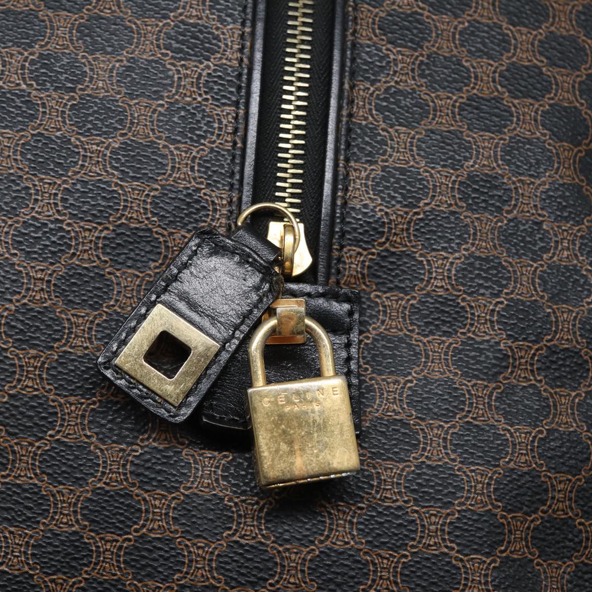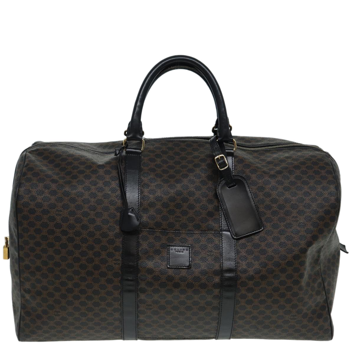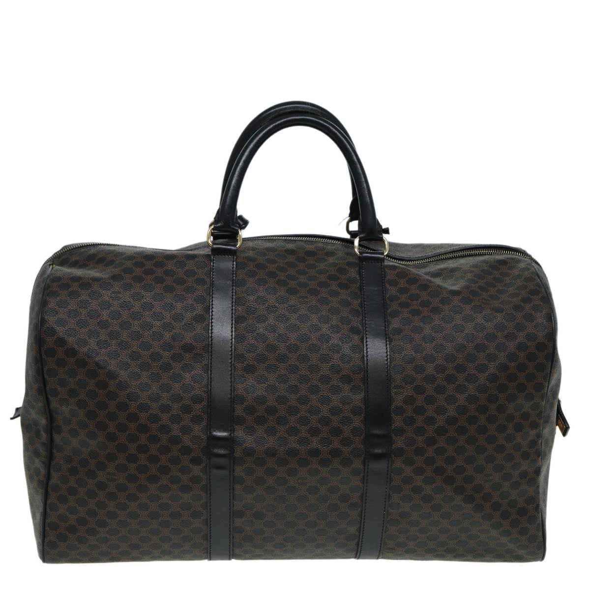 CELINE Macadam Canvas Boston Bag PVC Leather Brown Auth yk13827