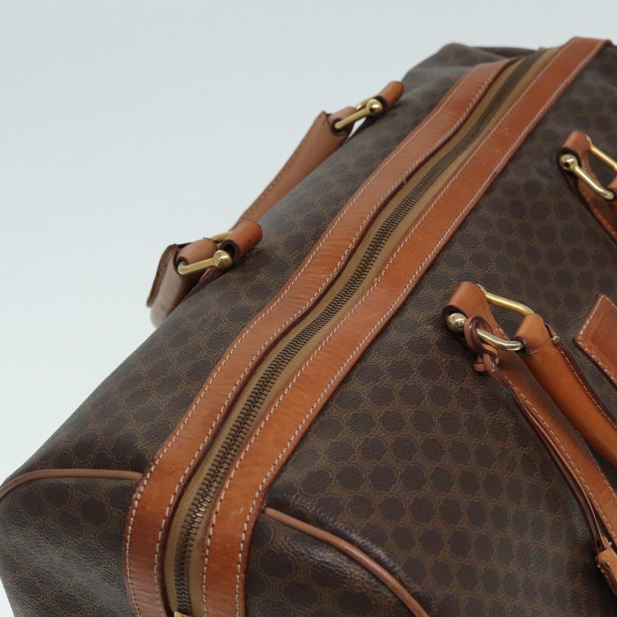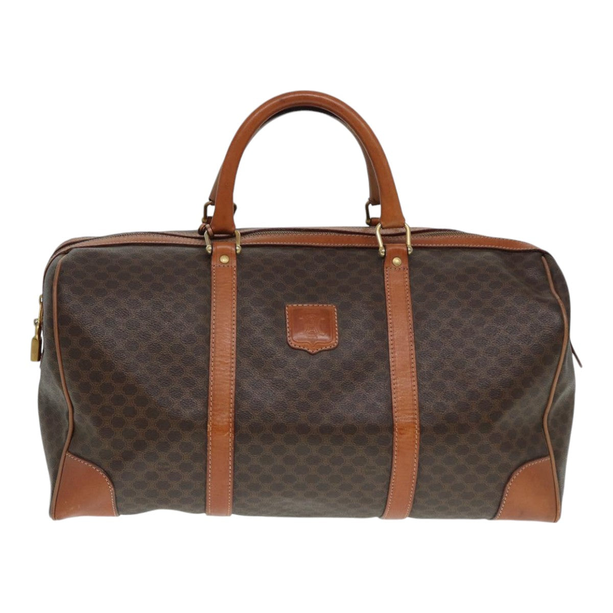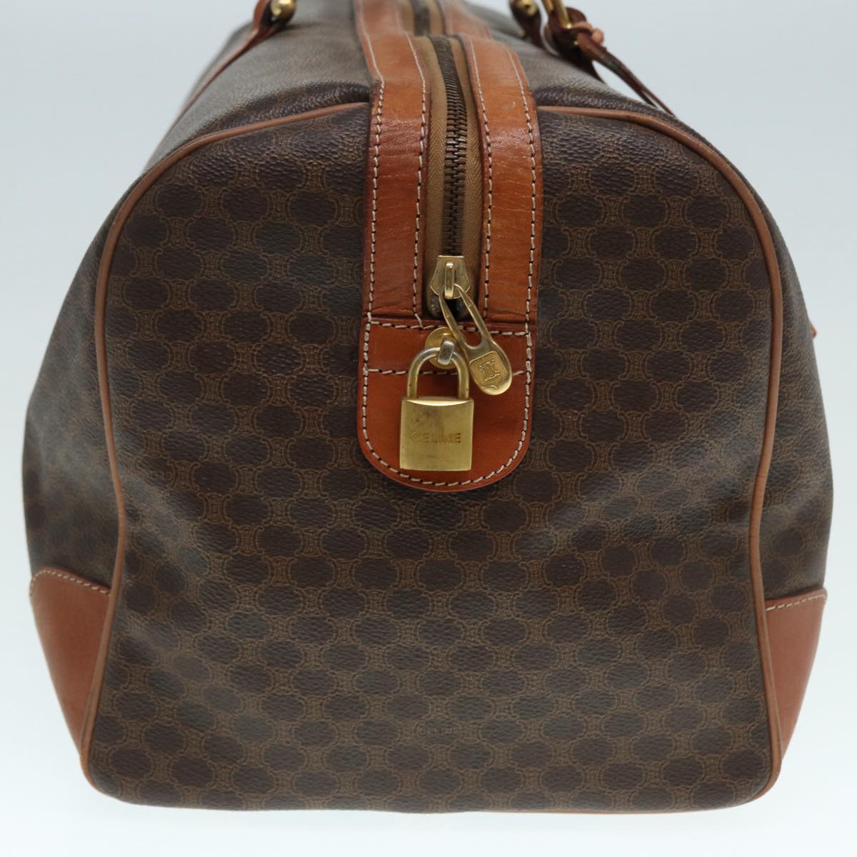 CELINE Macadam Canvas Boston Bag PVC Leather Brown Gold Auth ar12512