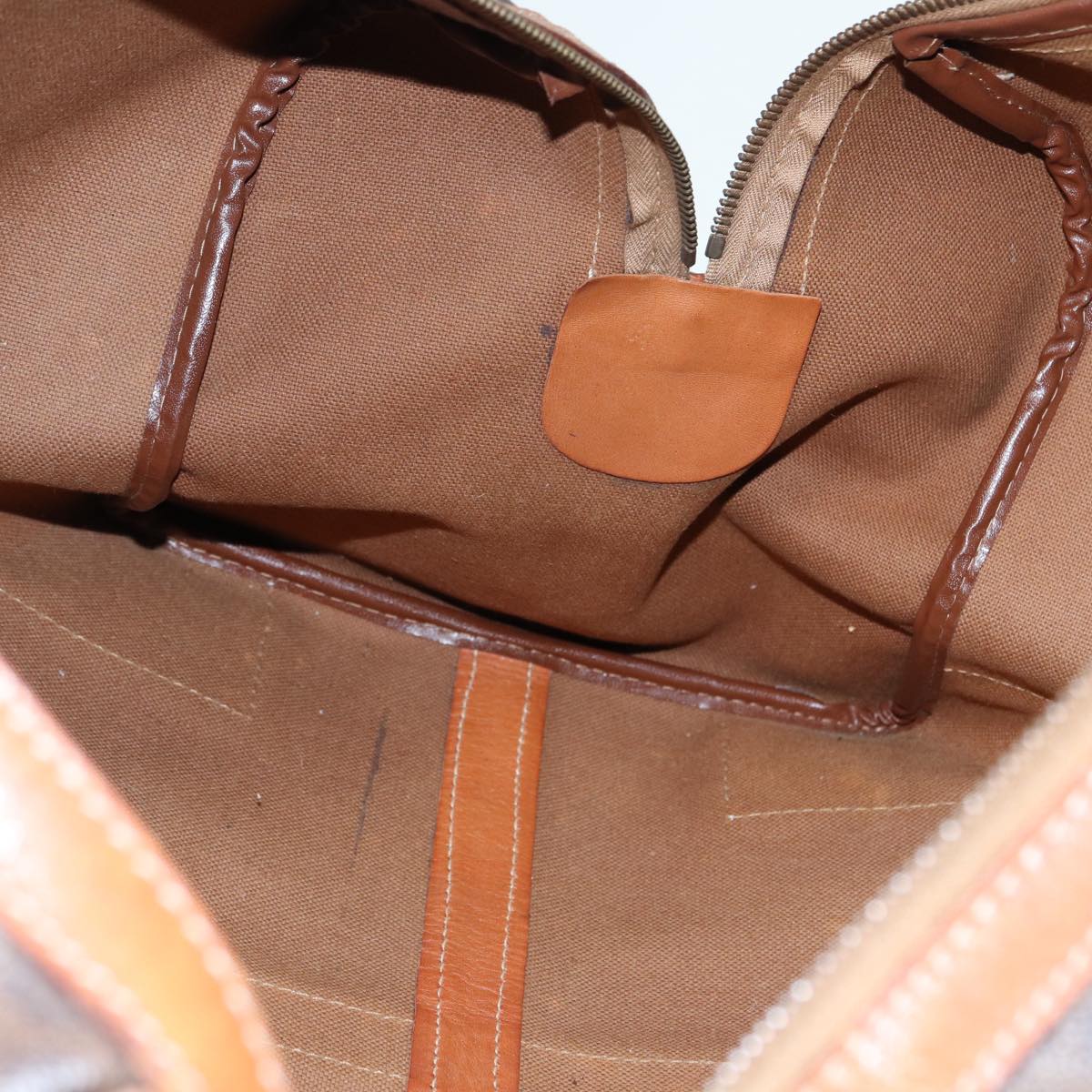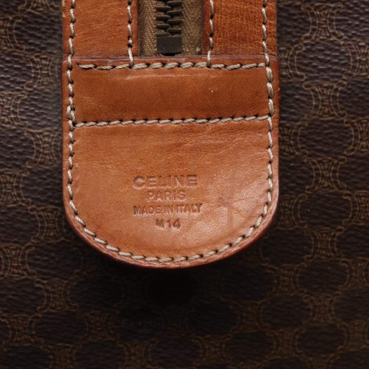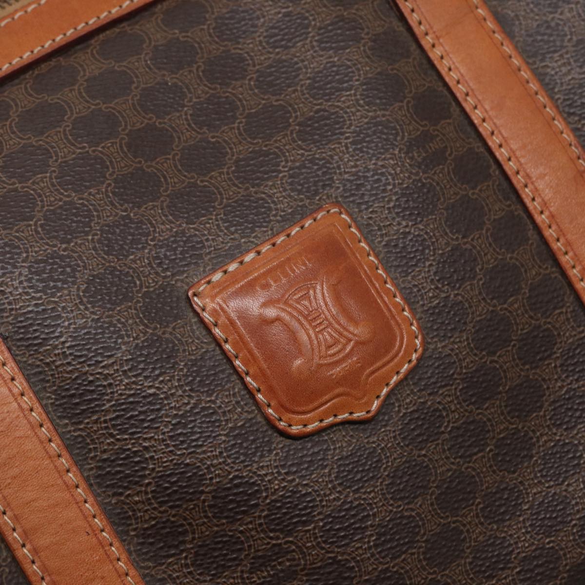 CELINE Macadam Canvas Boston Bag PVC Leather Brown Gold Auth ar12512