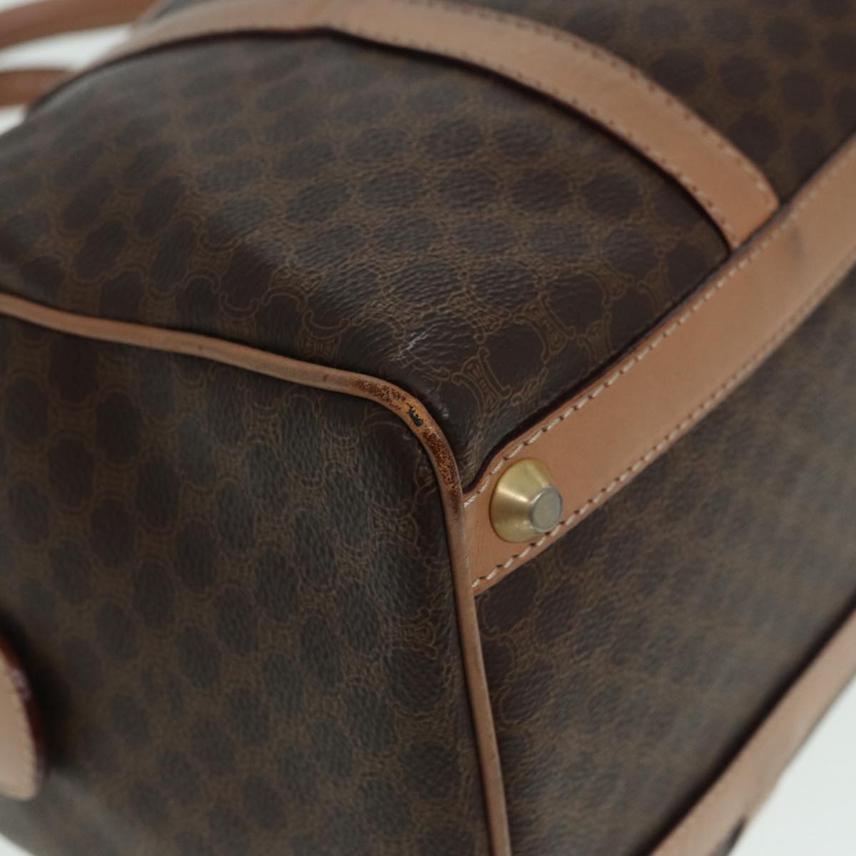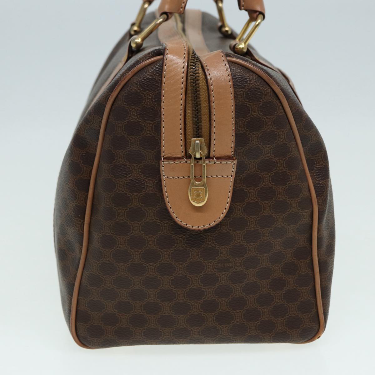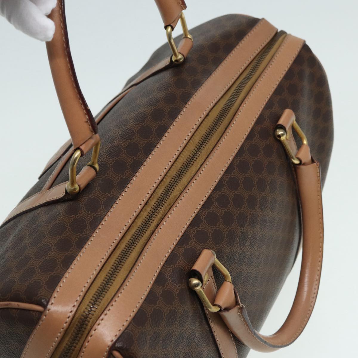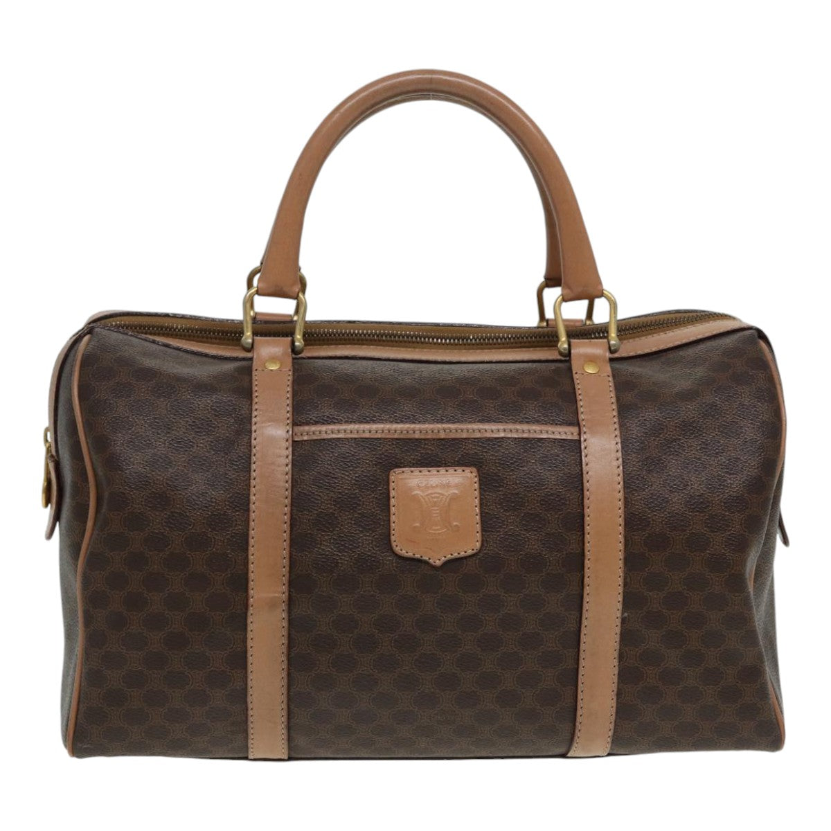 CELINE Macadam Canvas Boston Bag PVC Leather Brown Gold Auth ki4701
