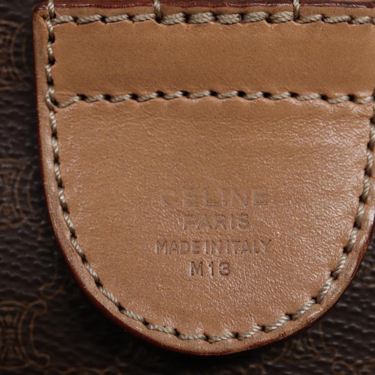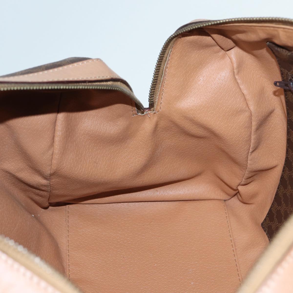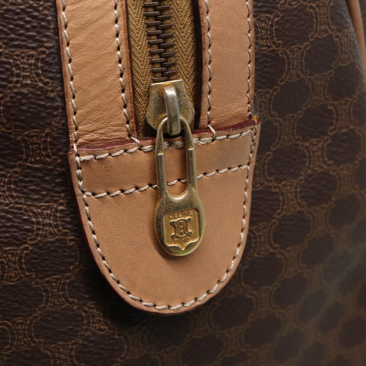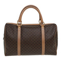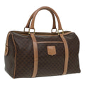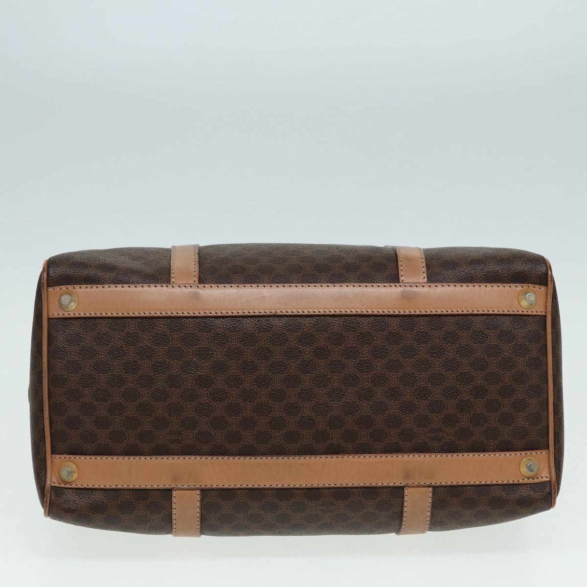 CELINE Macadam Canvas Boston Bag PVC Leather Brown Gold Auth ki4701