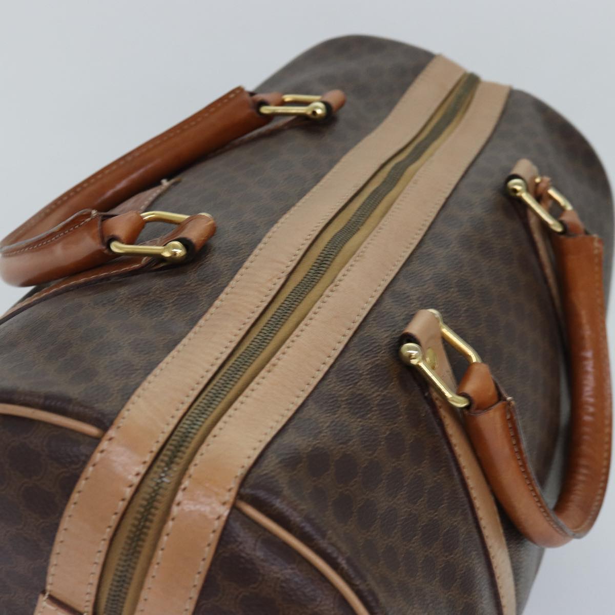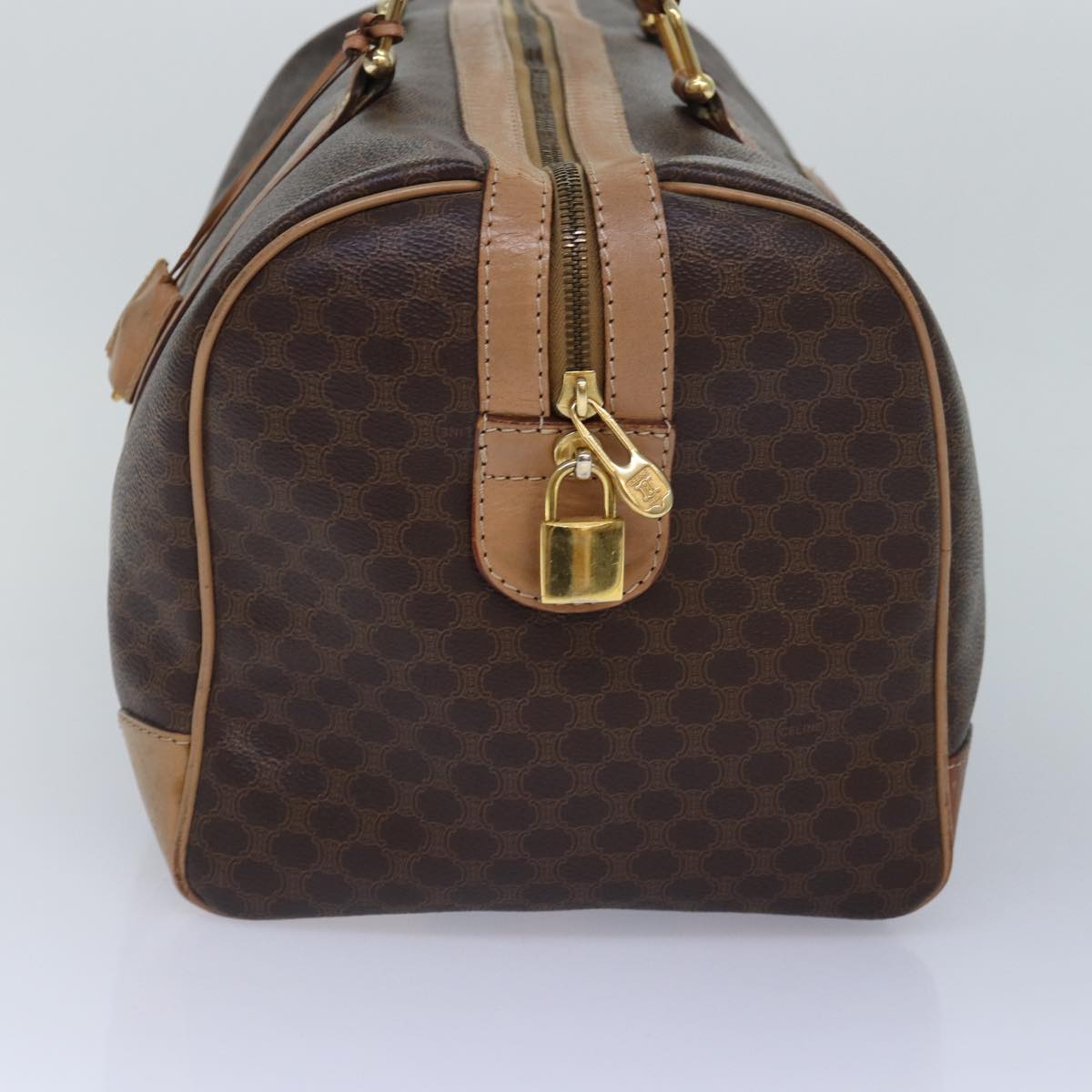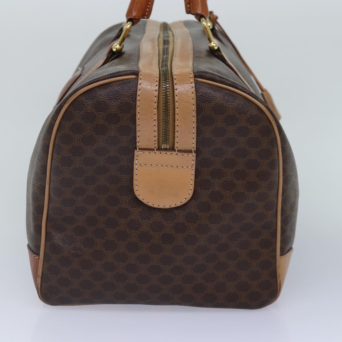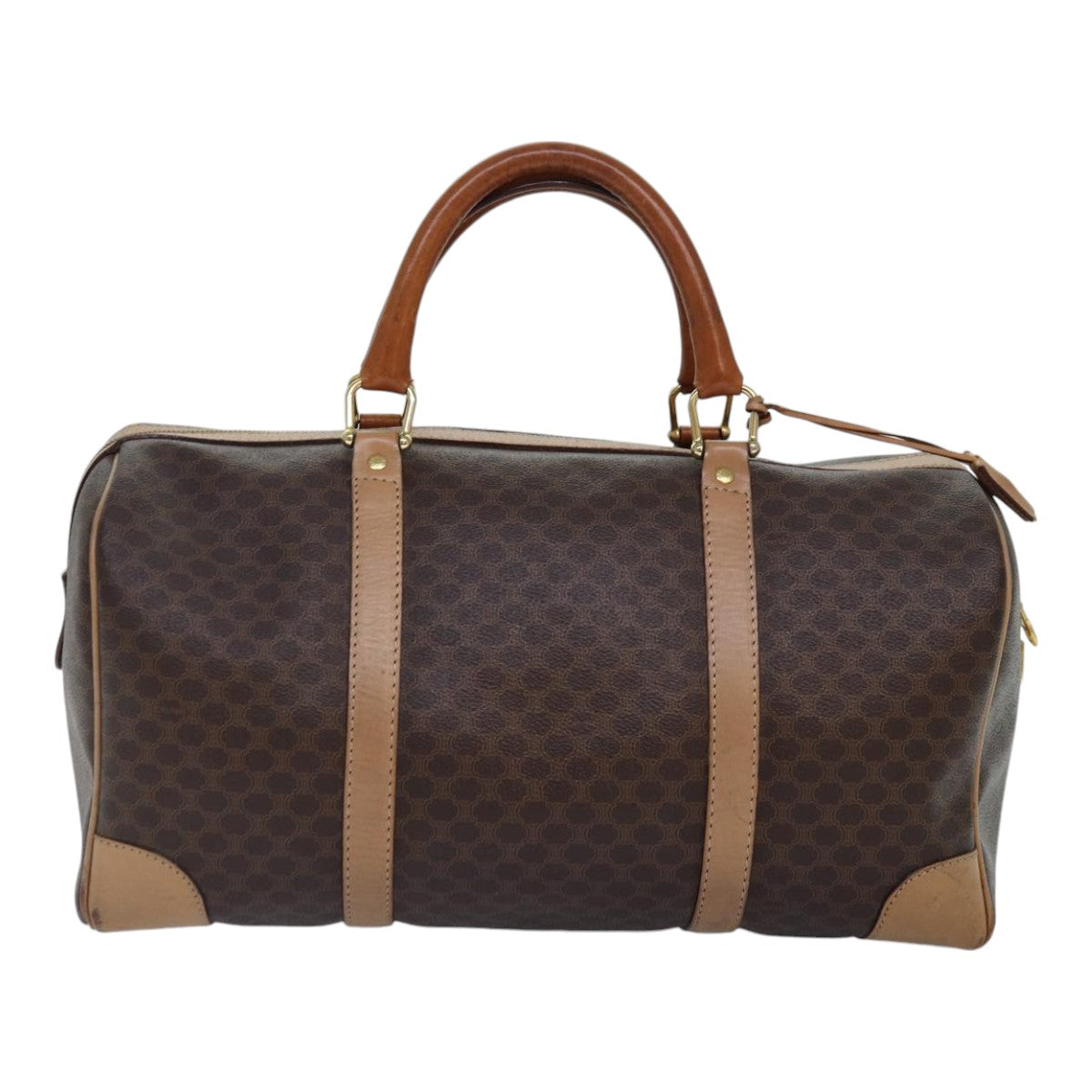 CELINE Macadam Canvas Boston Bag PVC Leather Brown Gold Auth ki4891