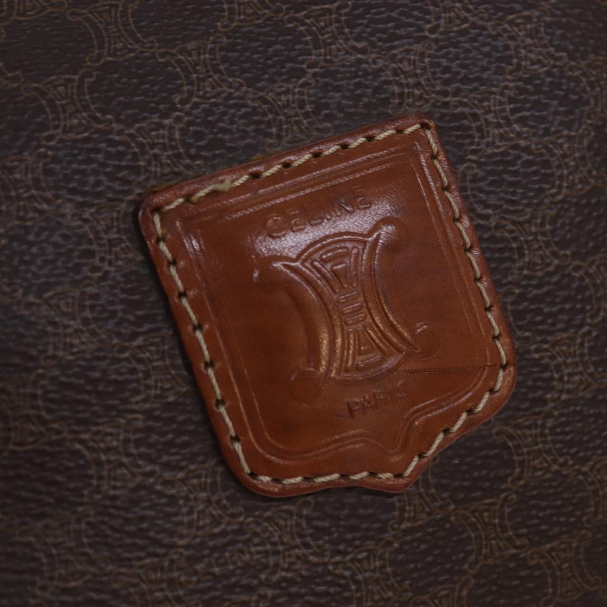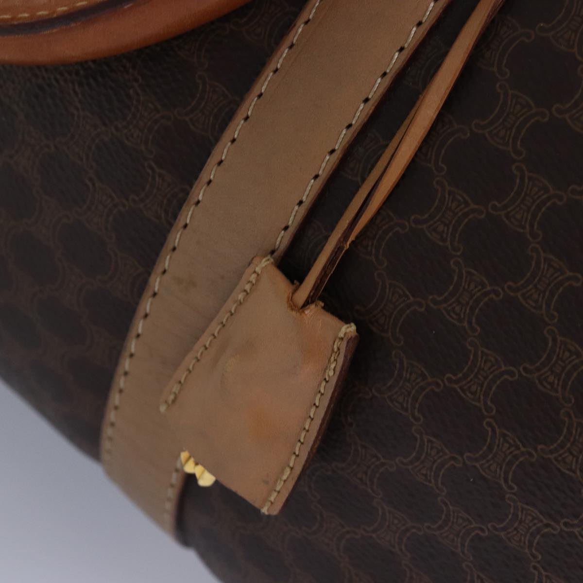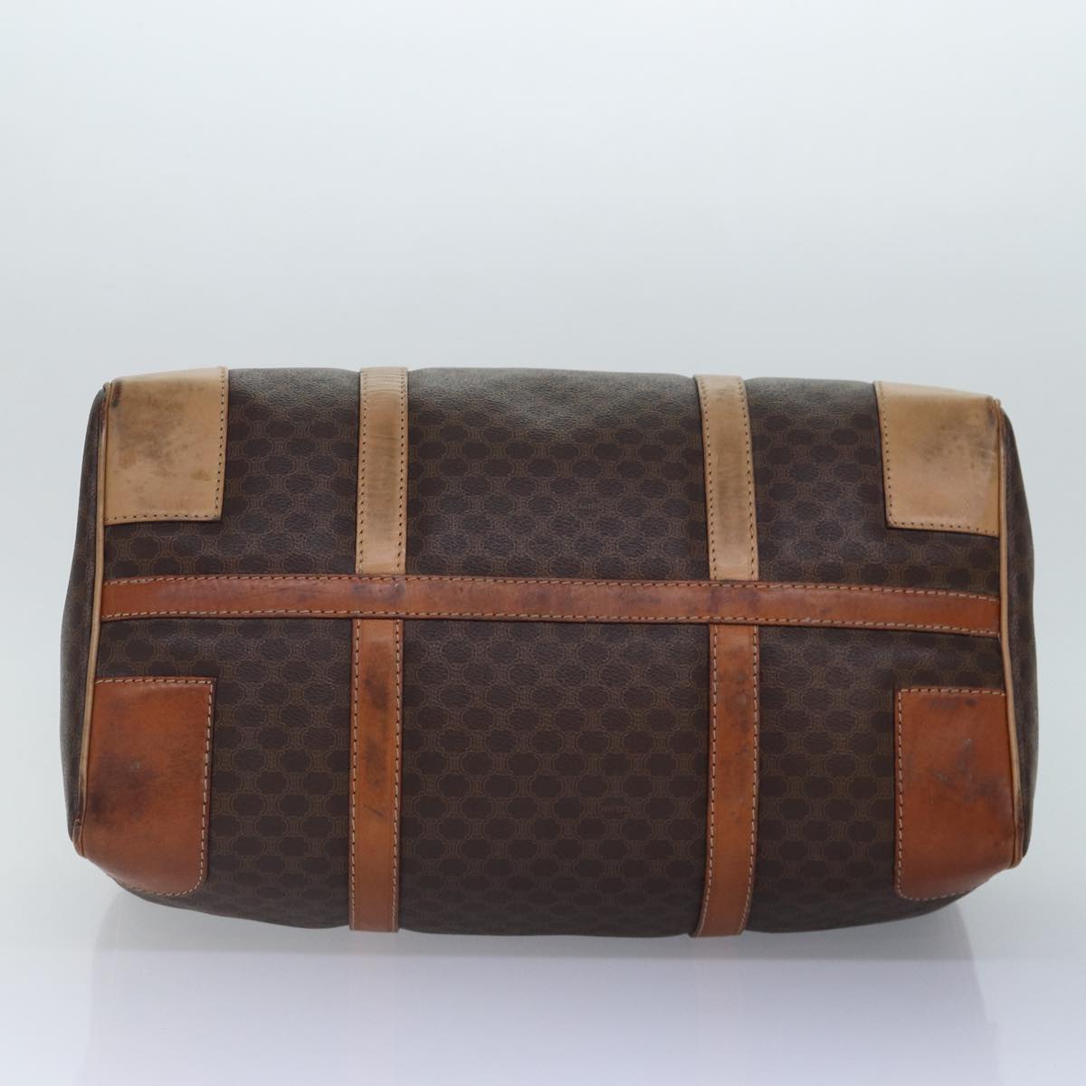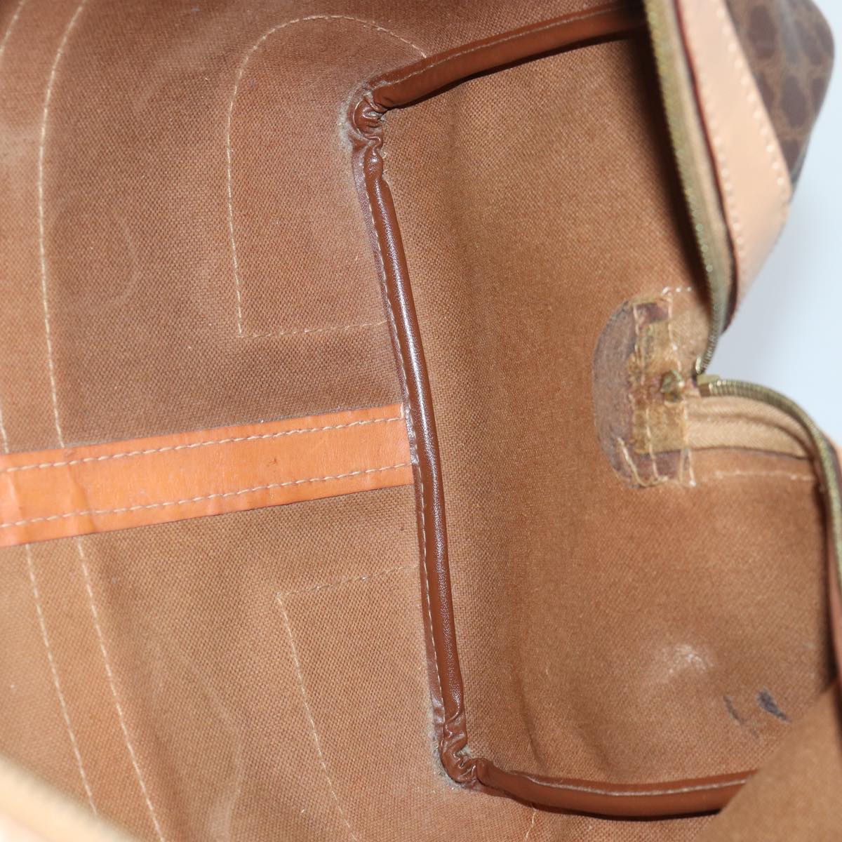 CELINE Macadam Canvas Boston Bag PVC Leather Brown Gold Auth ki4891