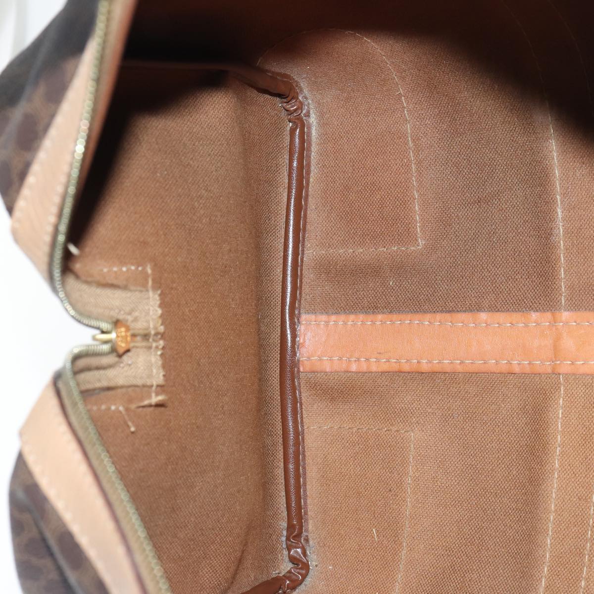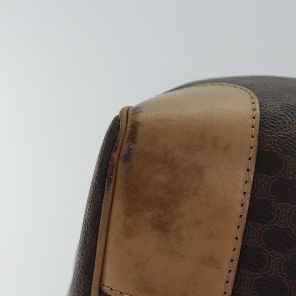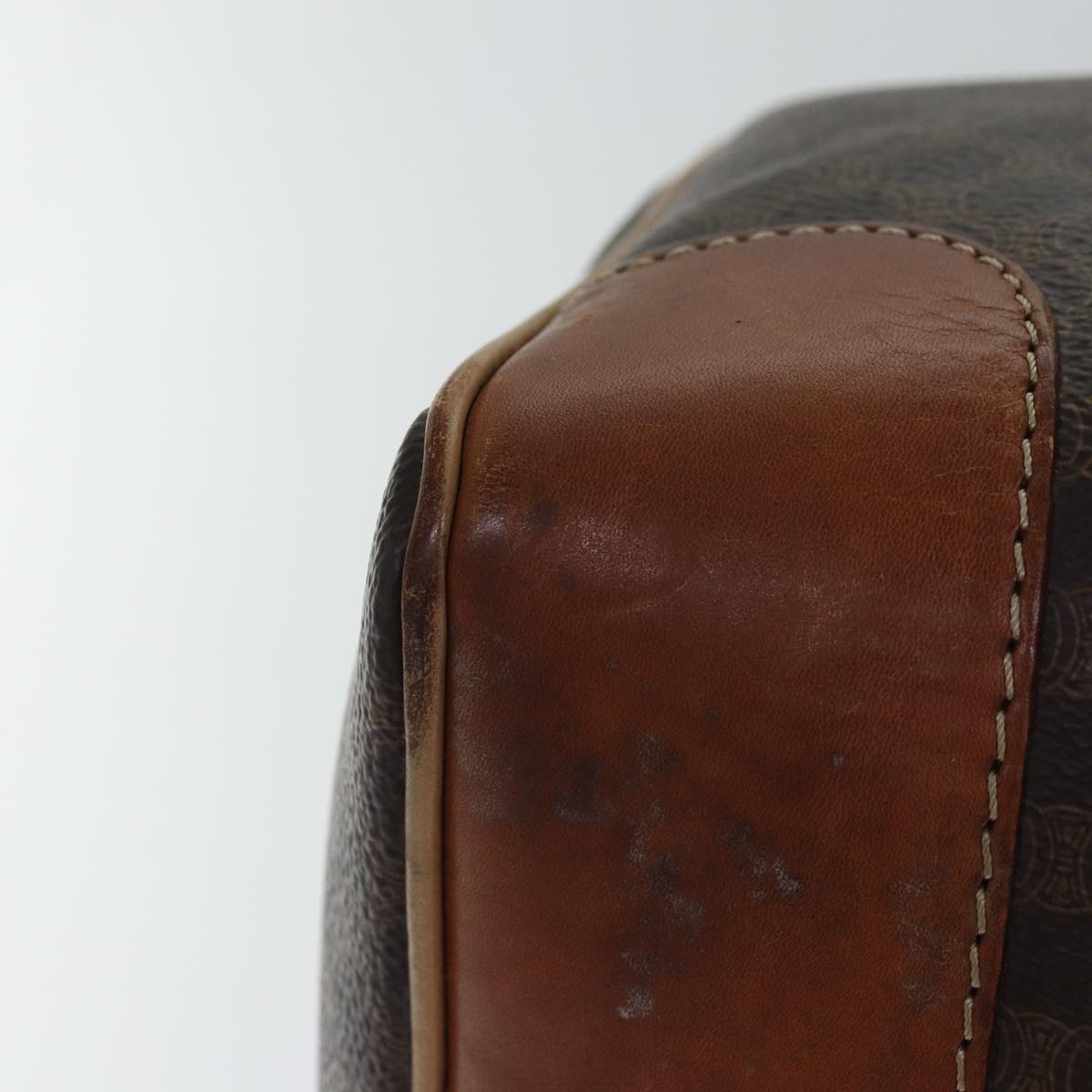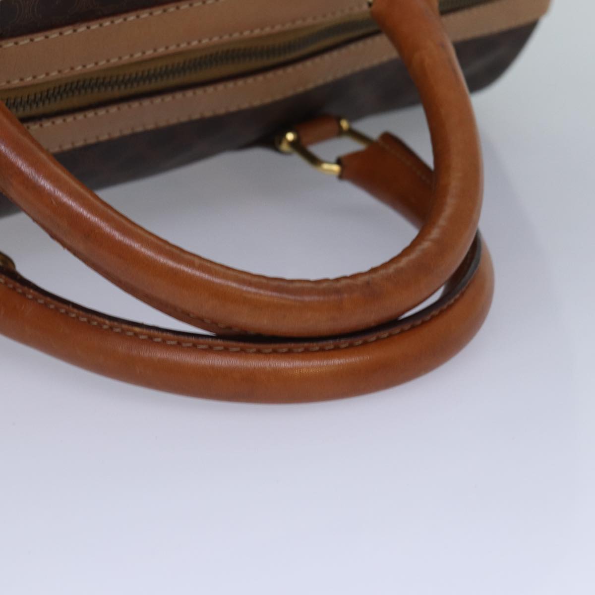 CELINE Macadam Canvas Boston Bag PVC Leather Brown Gold Auth ki4891