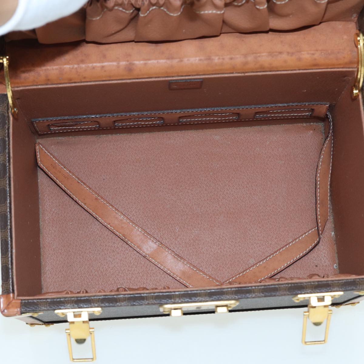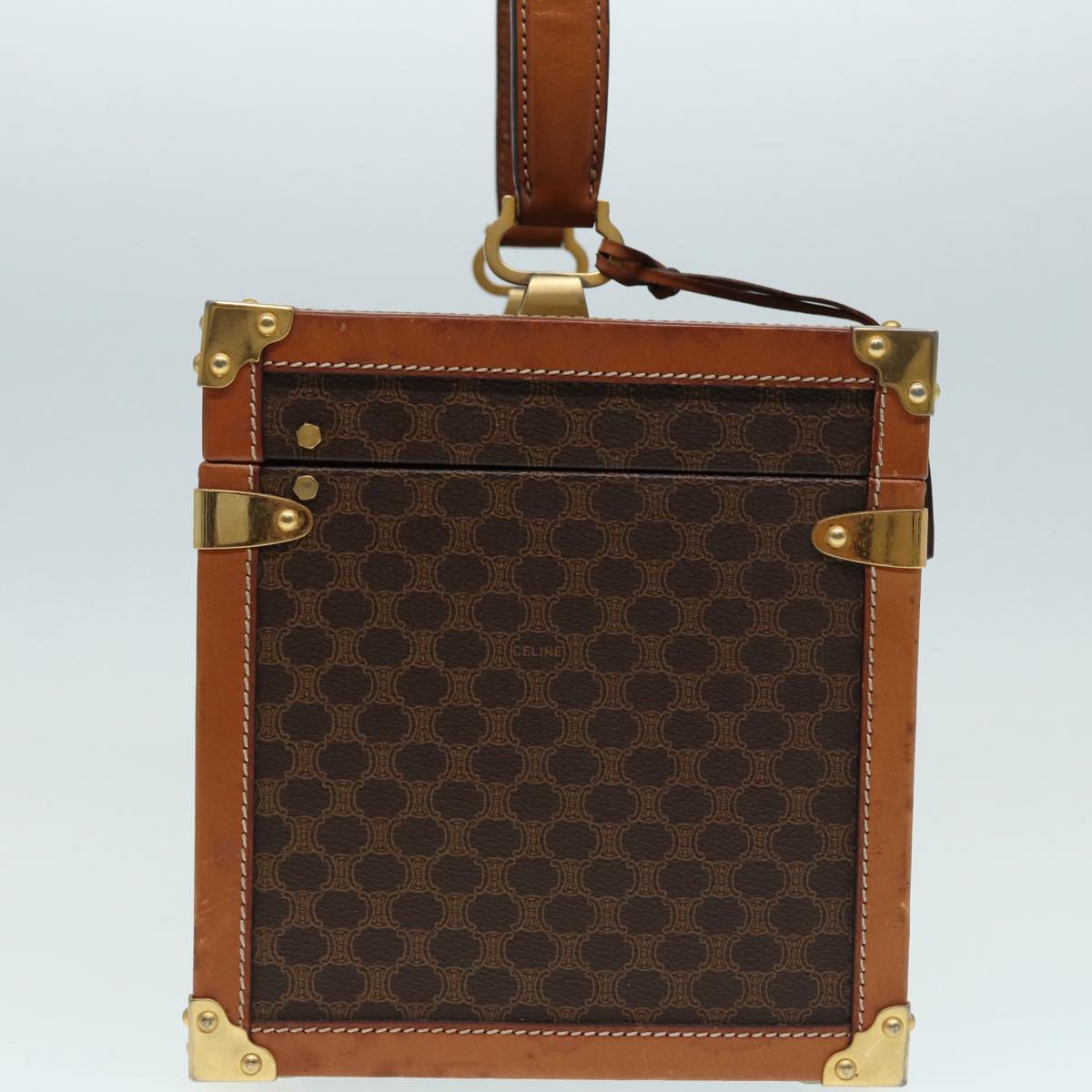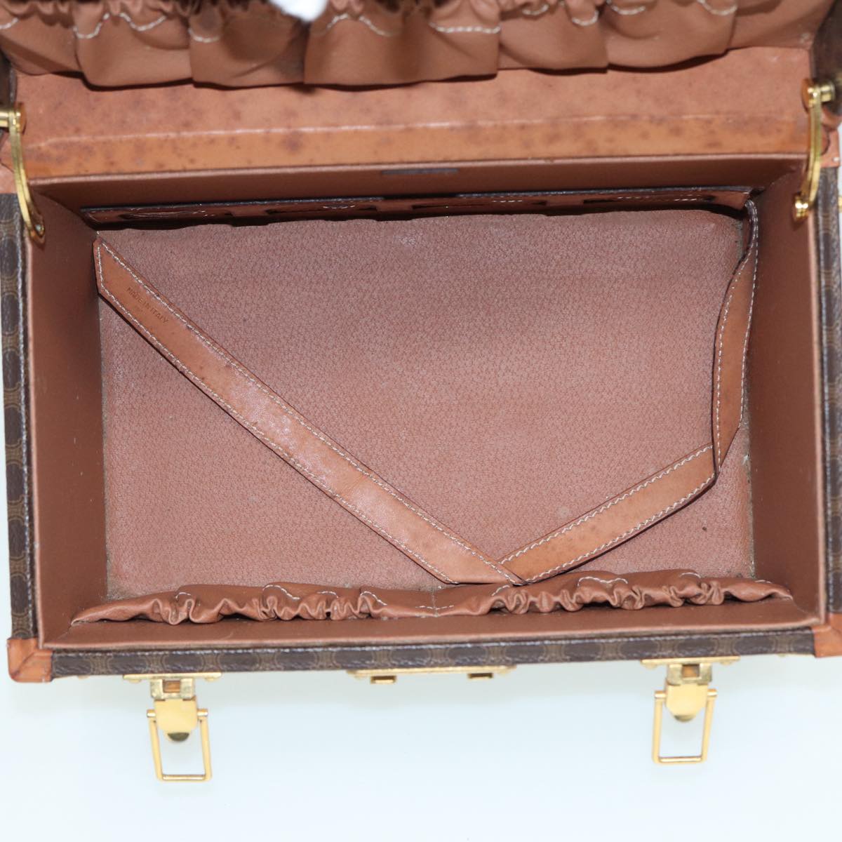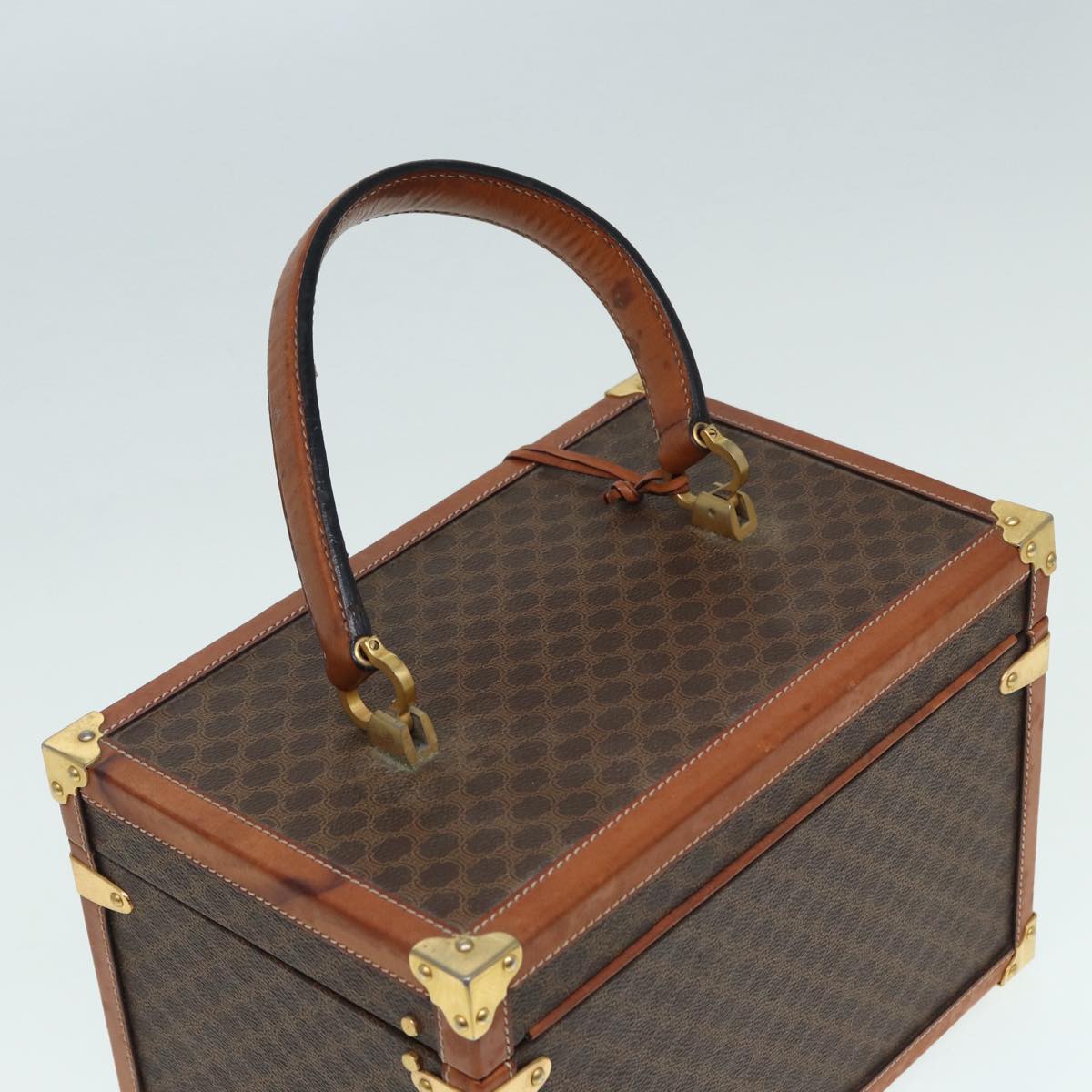 CELINE Macadam Canvas Box Case Hand Bag PVC Brown Gold Auth 86542