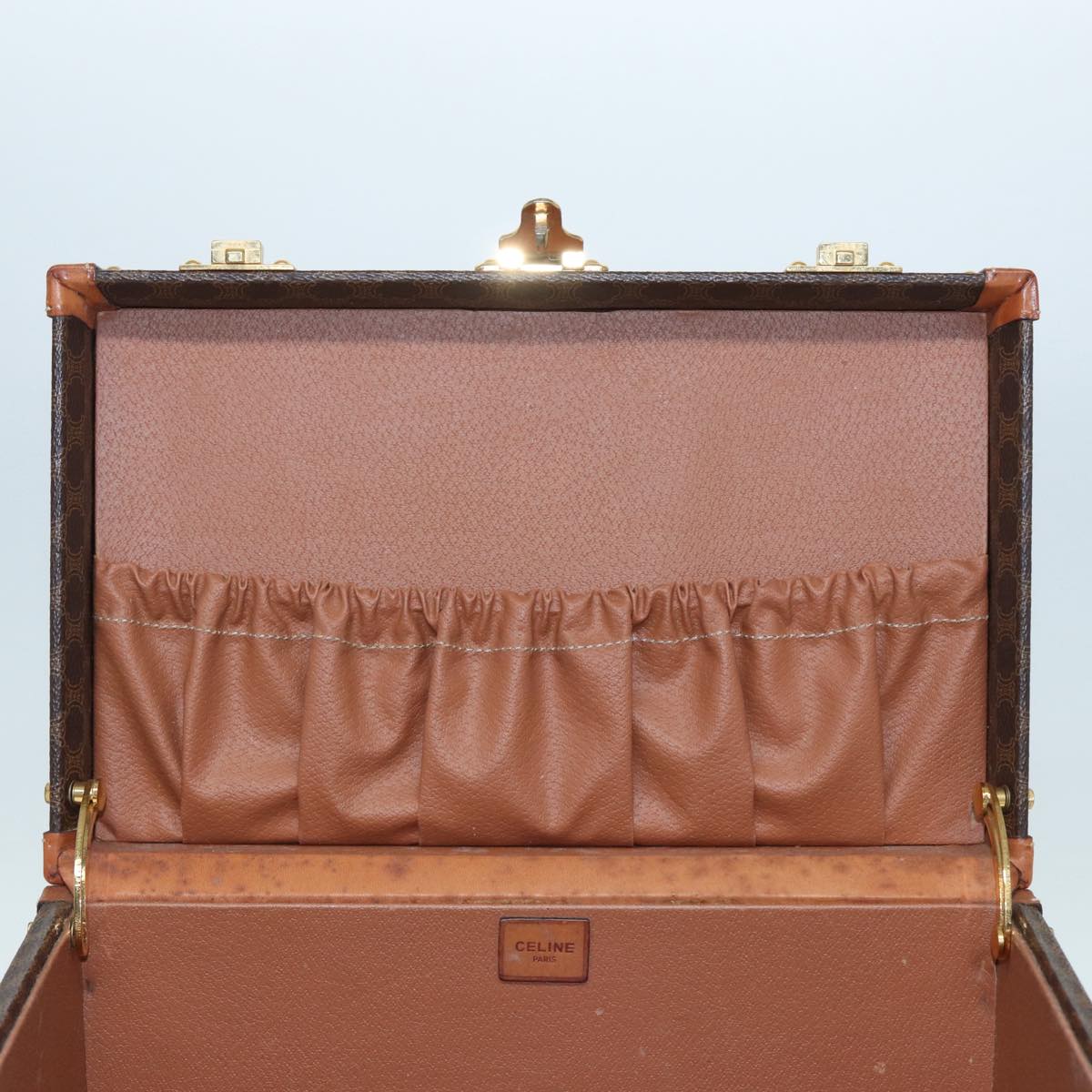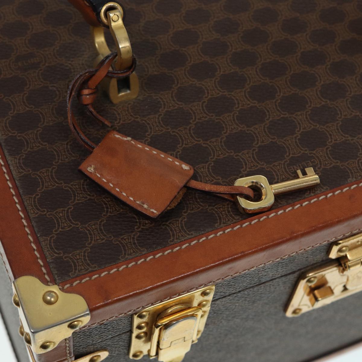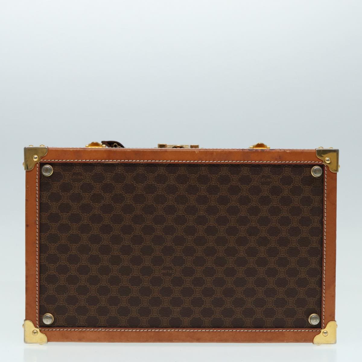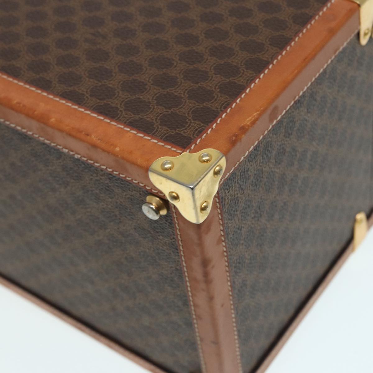 CELINE Macadam Canvas Box Case Hand Bag PVC Brown Gold Auth 86542