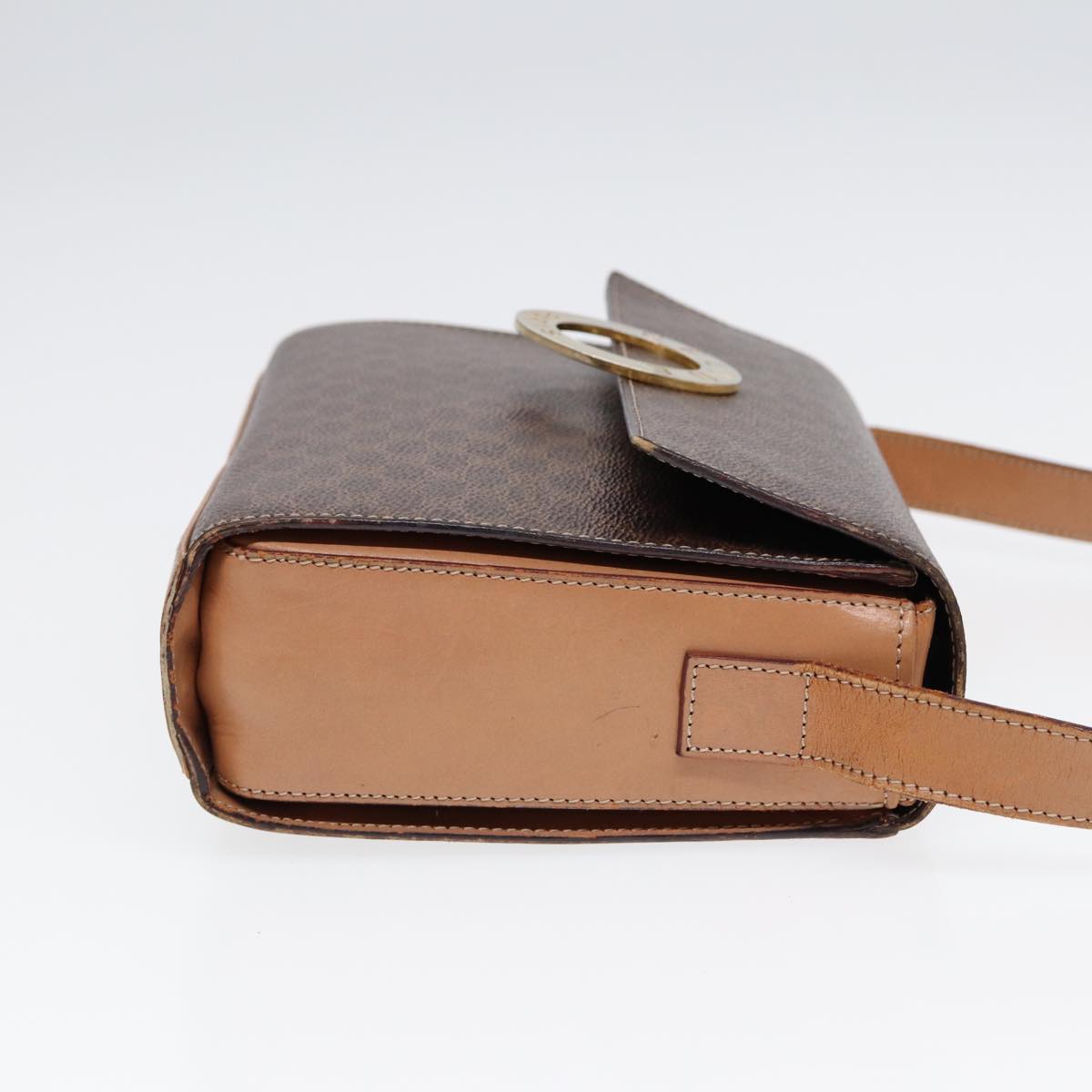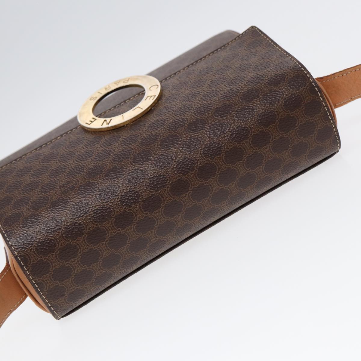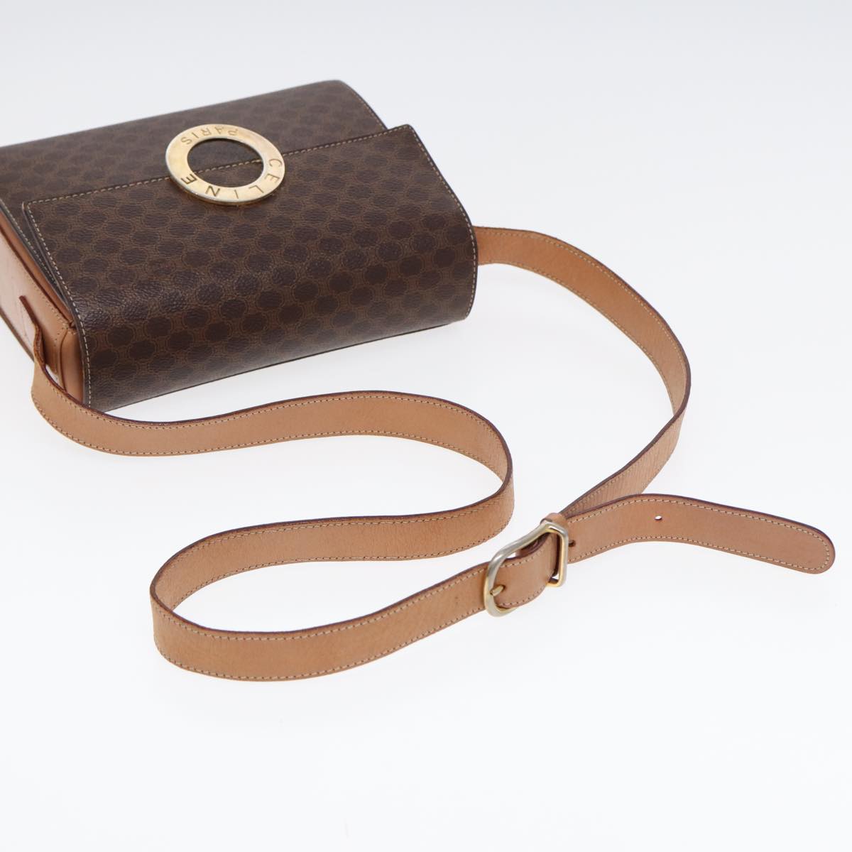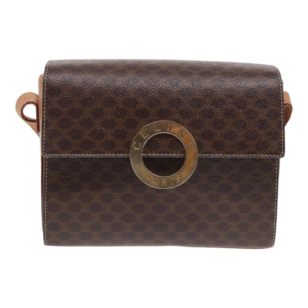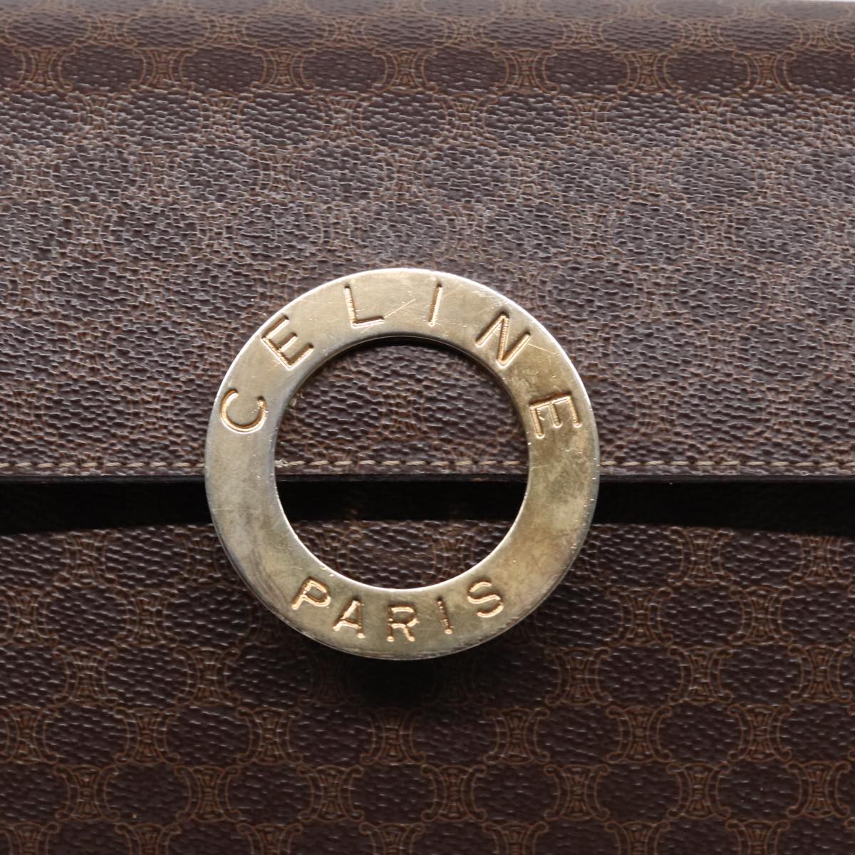 CELINE Macadam Canvas Circle Shoulder Bag PVC Leather Gold Brown Auth 86835