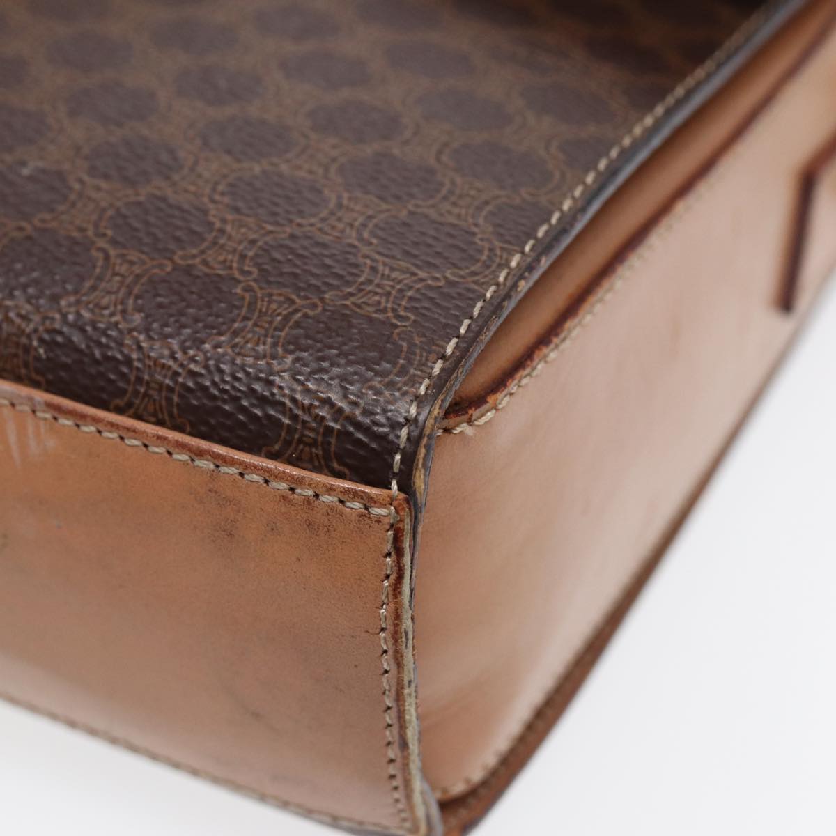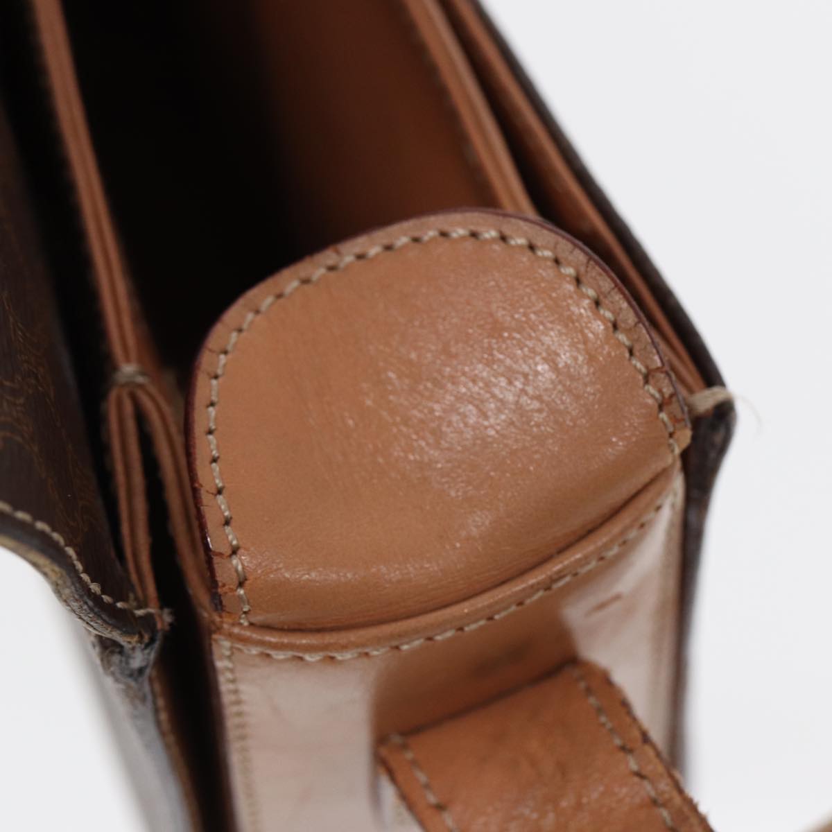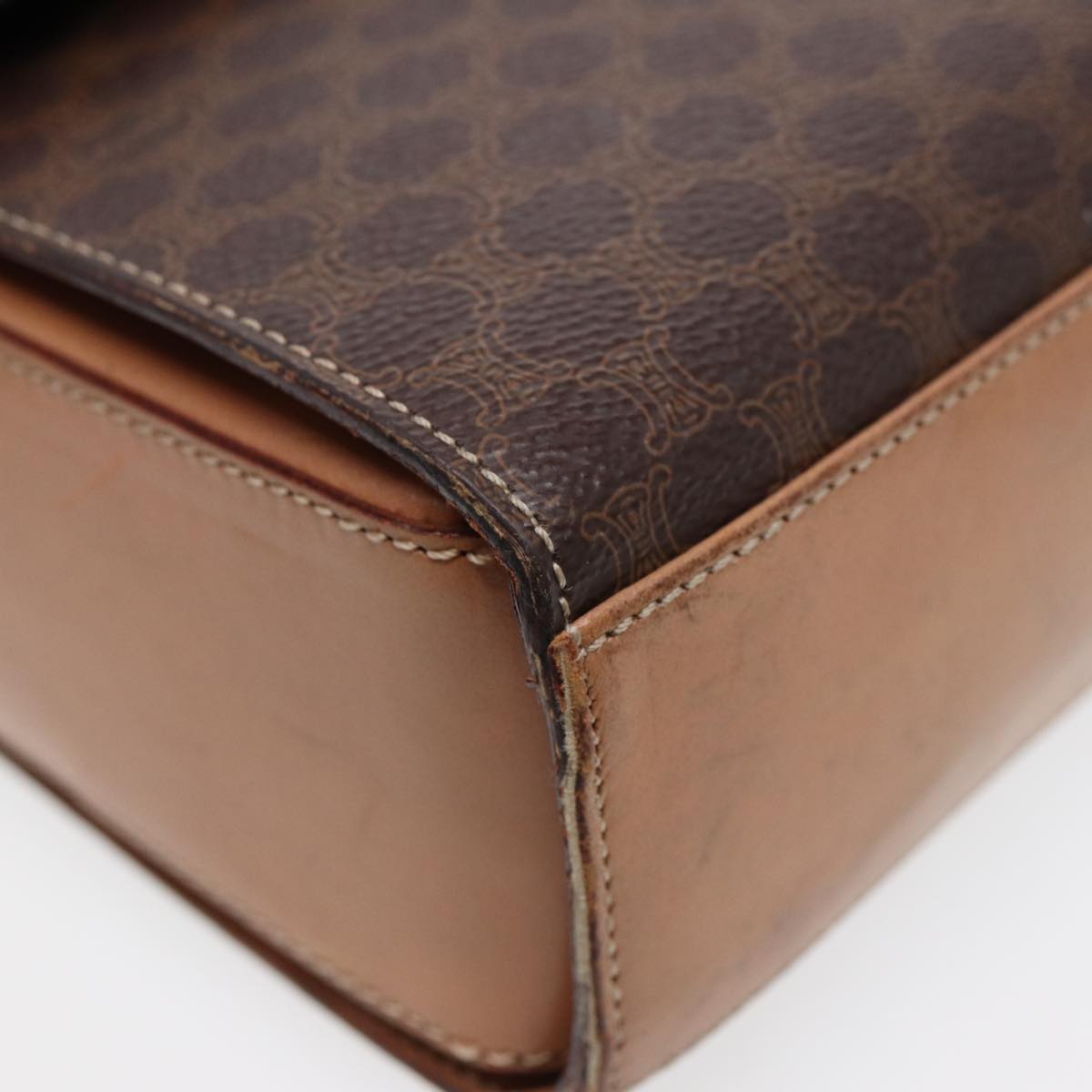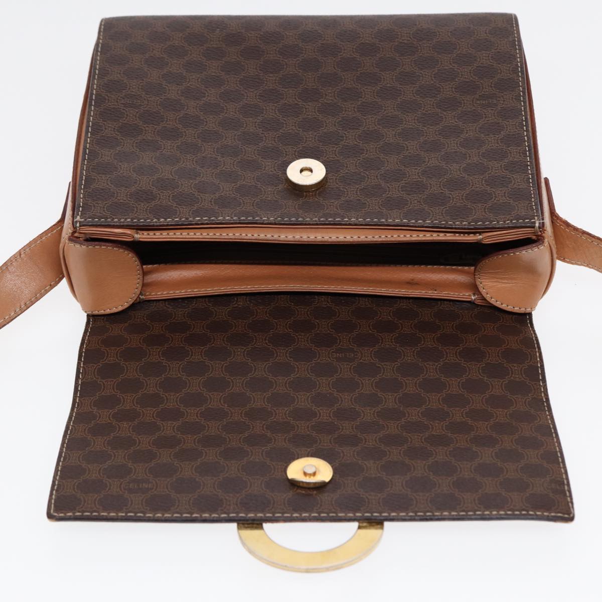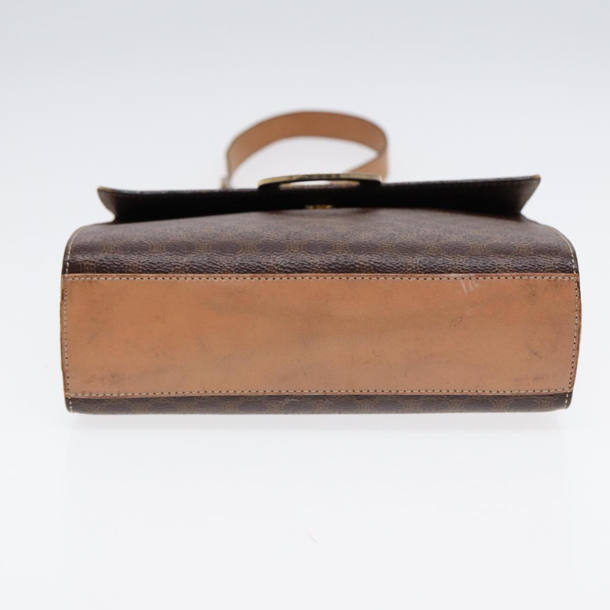 CELINE Macadam Canvas Circle Shoulder Bag PVC Leather Gold Brown Auth 86835