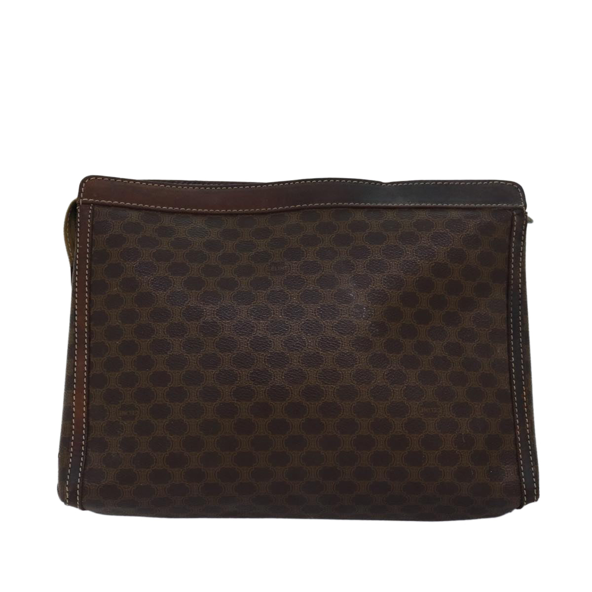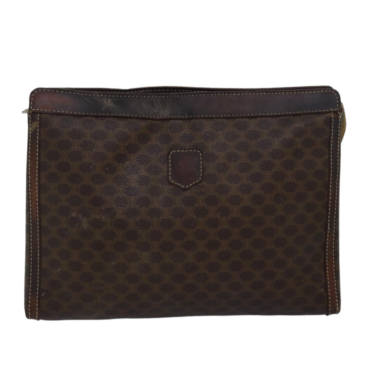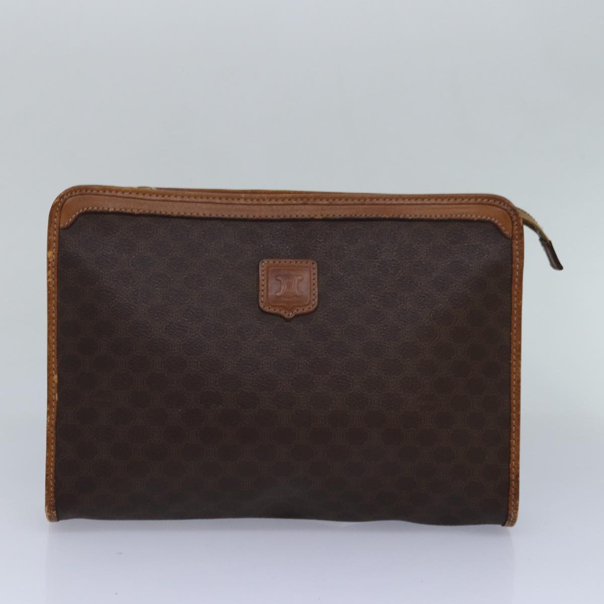 CELINE Macadam Canvas Clutch Bag PVC Leather 2Set Brown Auth bs15845